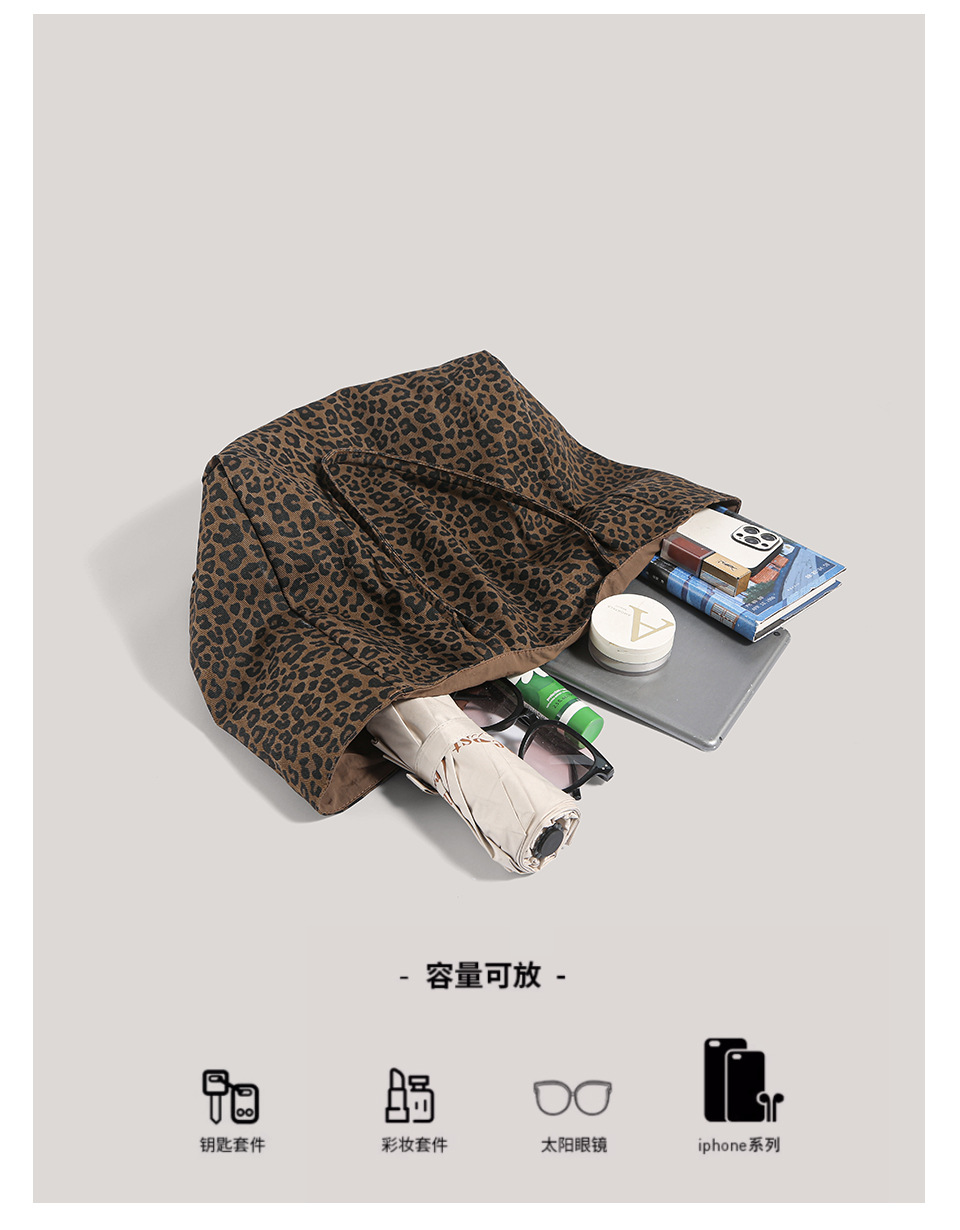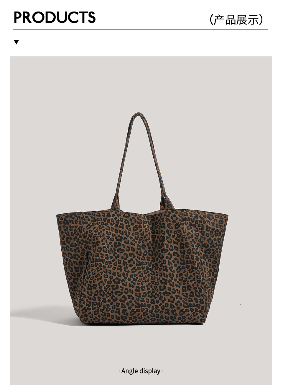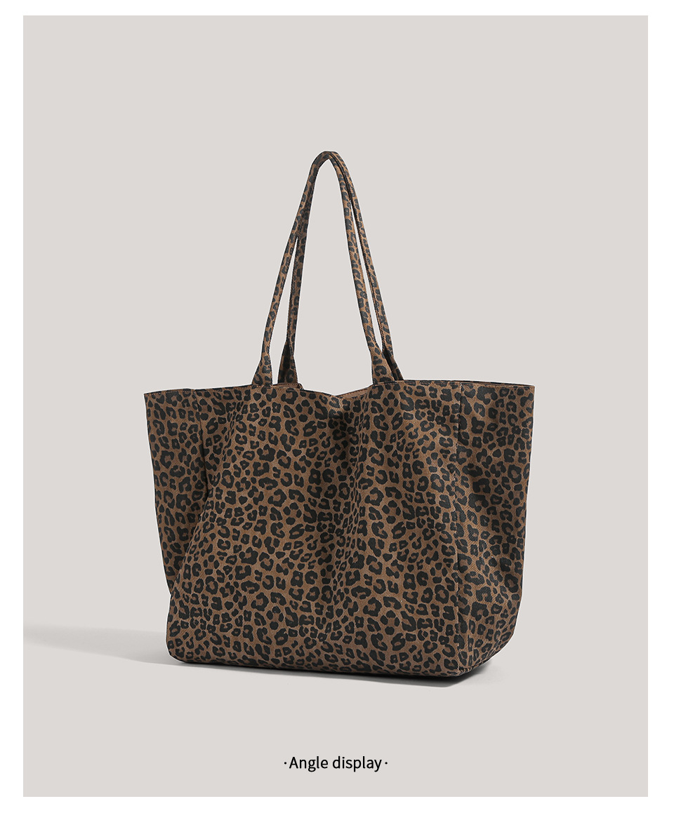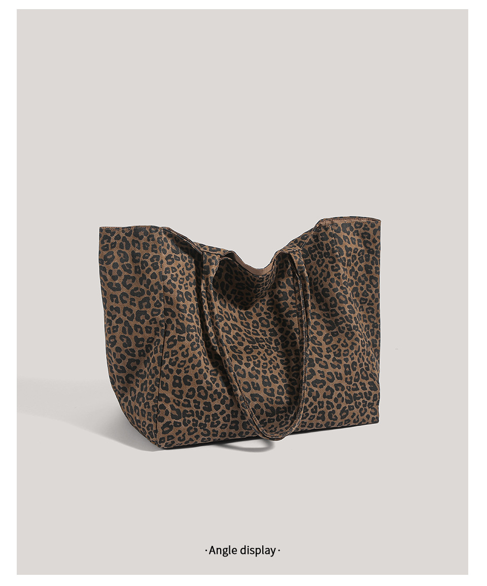 빈티지 레오파드 무늬 어깨 가방 여성의 새로운 한국 스타일 패셔너블 게으른 돛 헝겊 가방 대용량 캐주얼 통근 토트 백