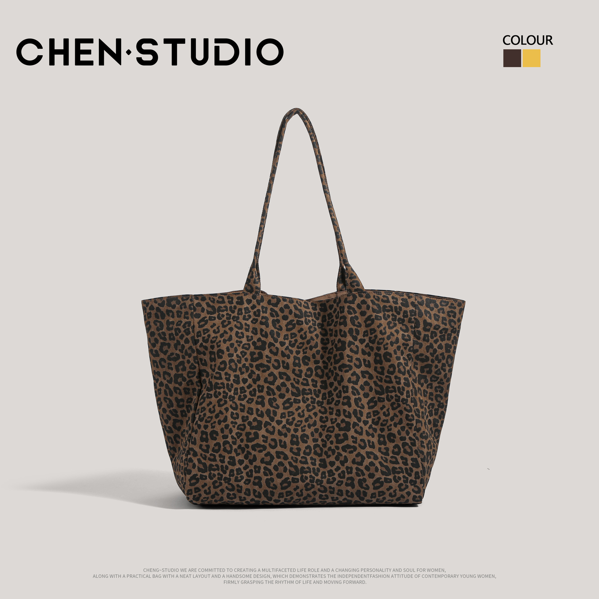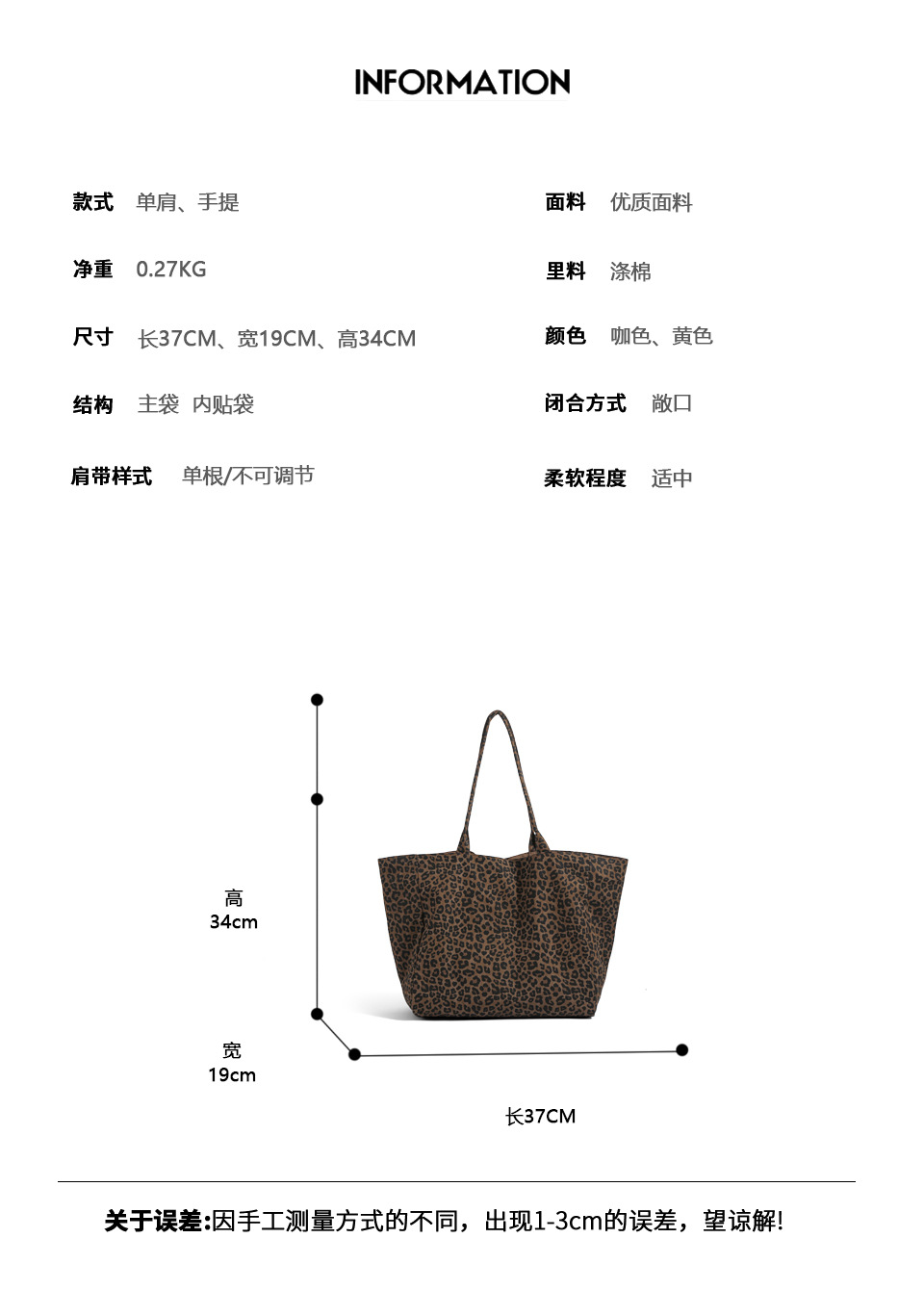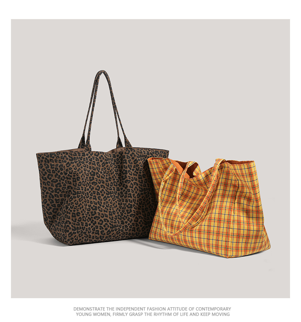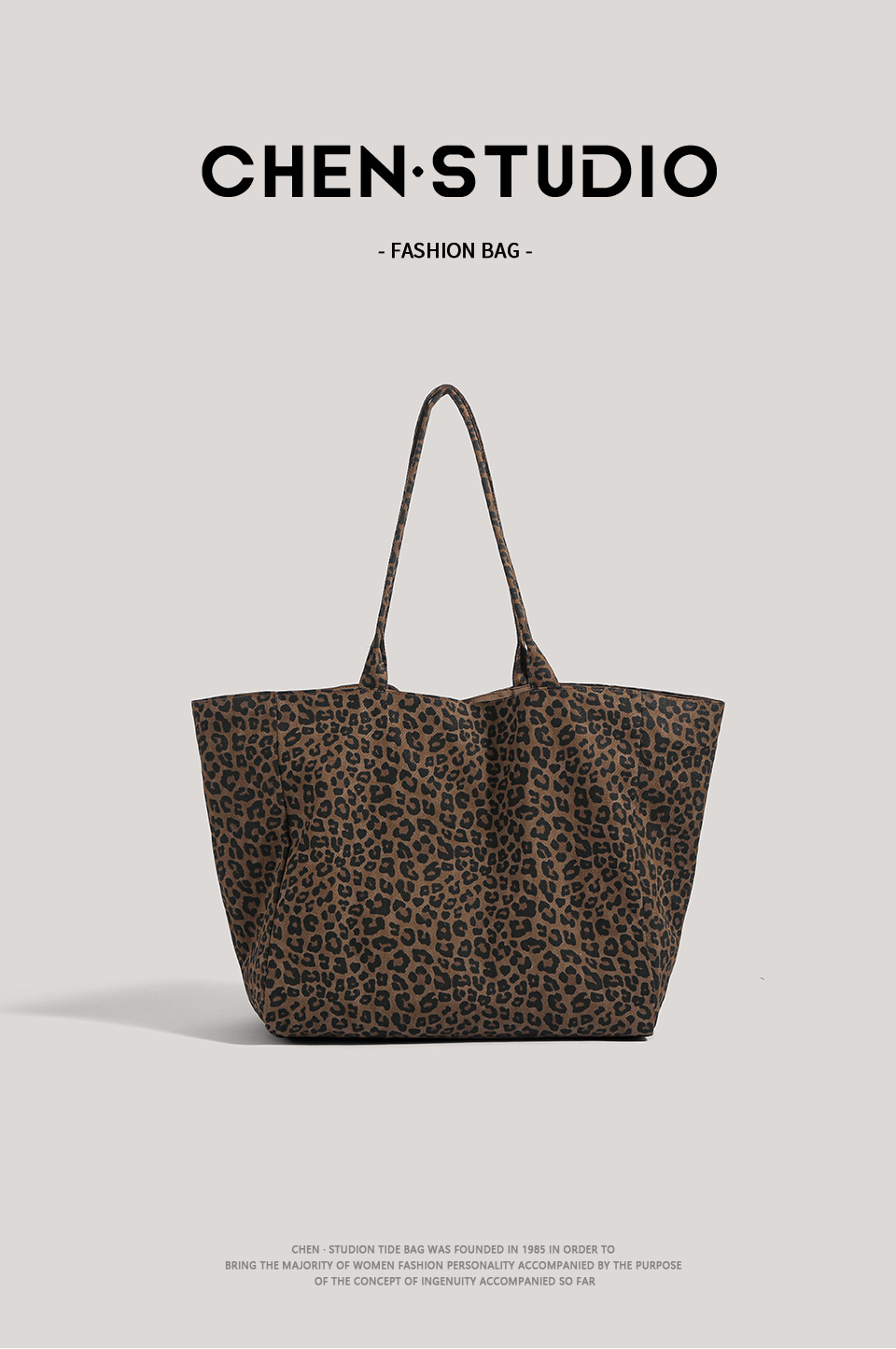 빈티지 레오파드 무늬 어깨 가방 여성의 새로운 한국 스타일 패셔너블 게으른 돛 헝겊 가방 대용량 캐주얼 통근 토트 백