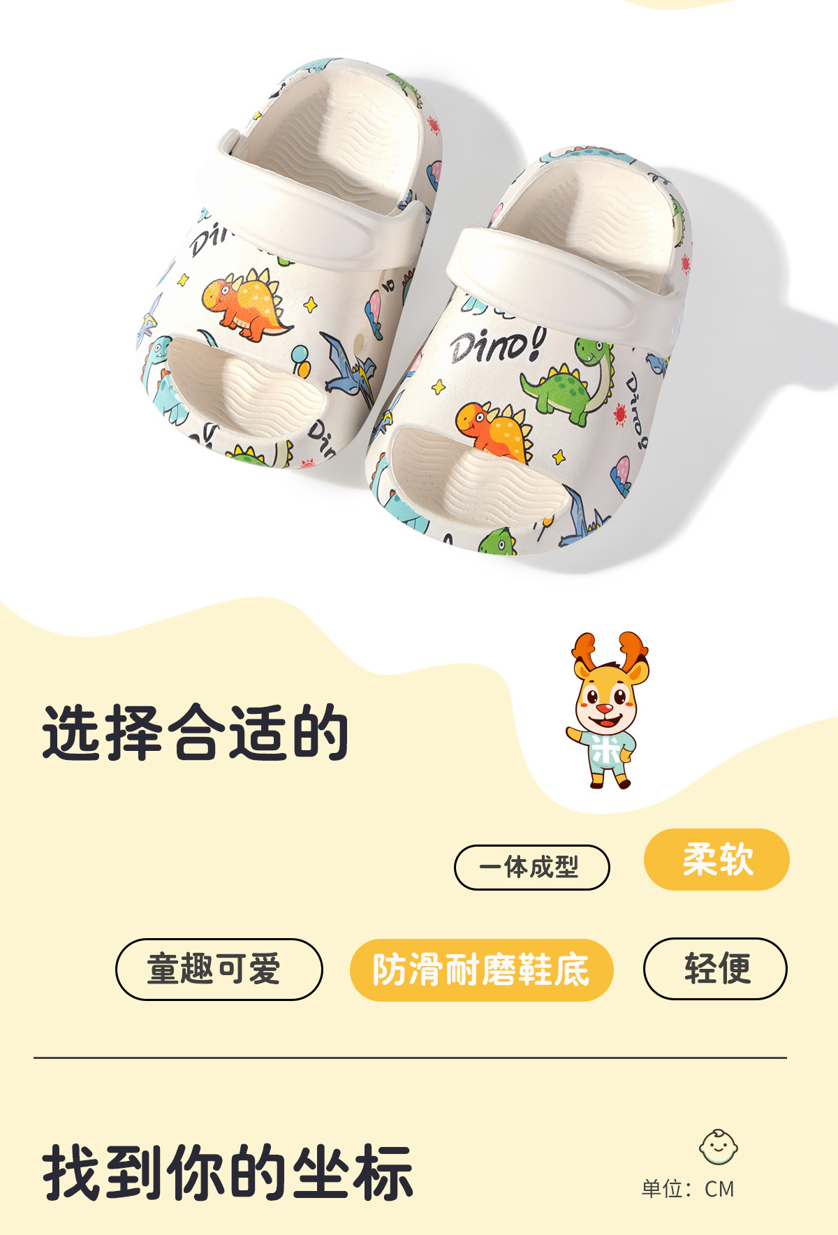 어린이 샌들 도매 소년과 소녀 아기 만화 공룡 인쇄 미끄럼 방지 내마 모성 샌들 나막신 여름 슬리퍼