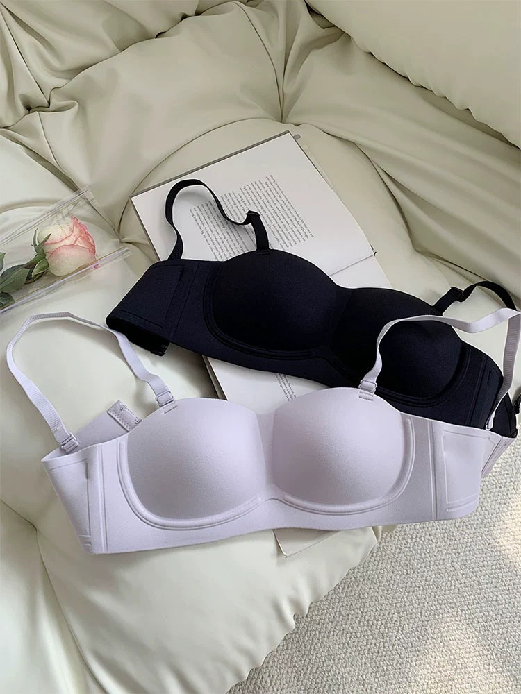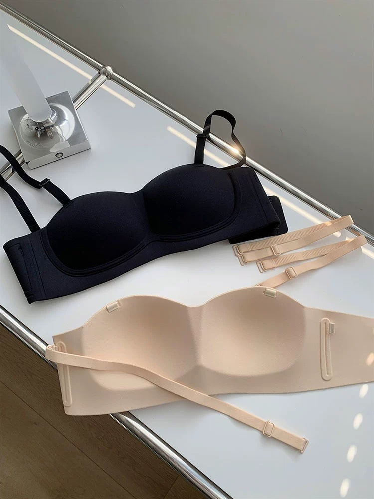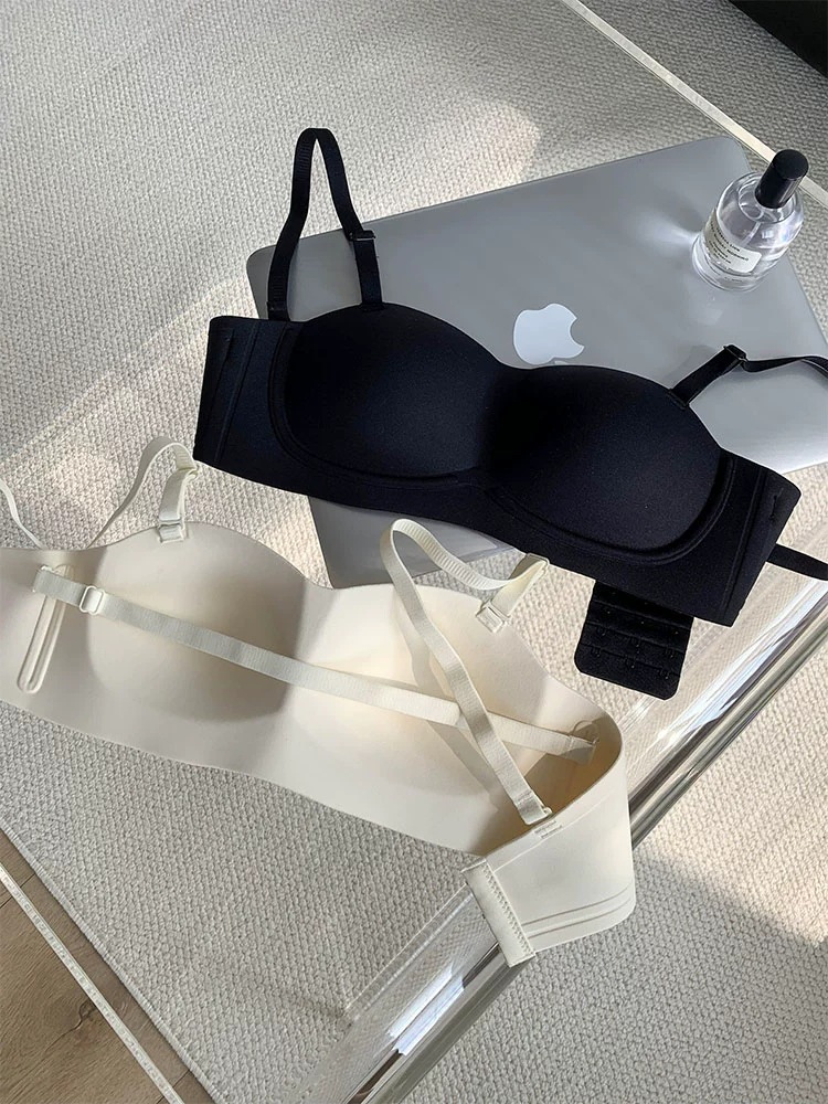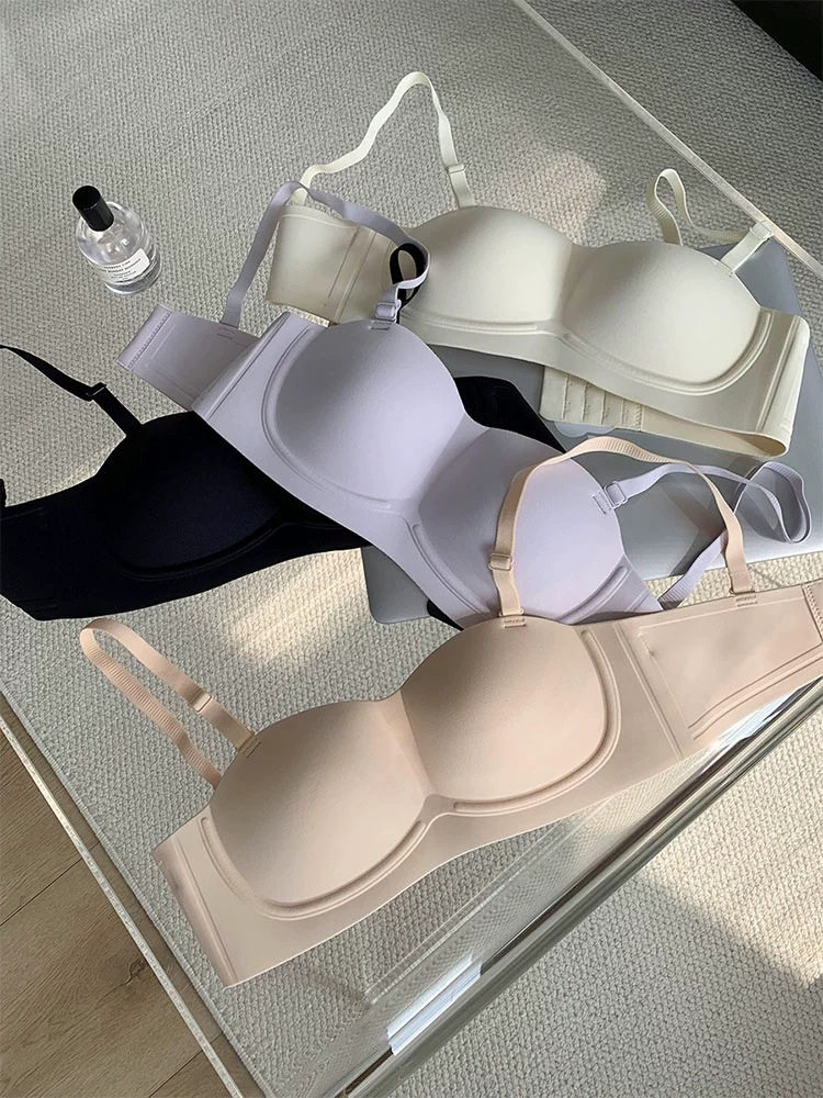 신형 스트랩리스 투웨어 여성용 스트랩리스 소프트 지원 미끄럼 방지 처짐 작은 가슴 푸시 업 브래지어 세트스토어 가기