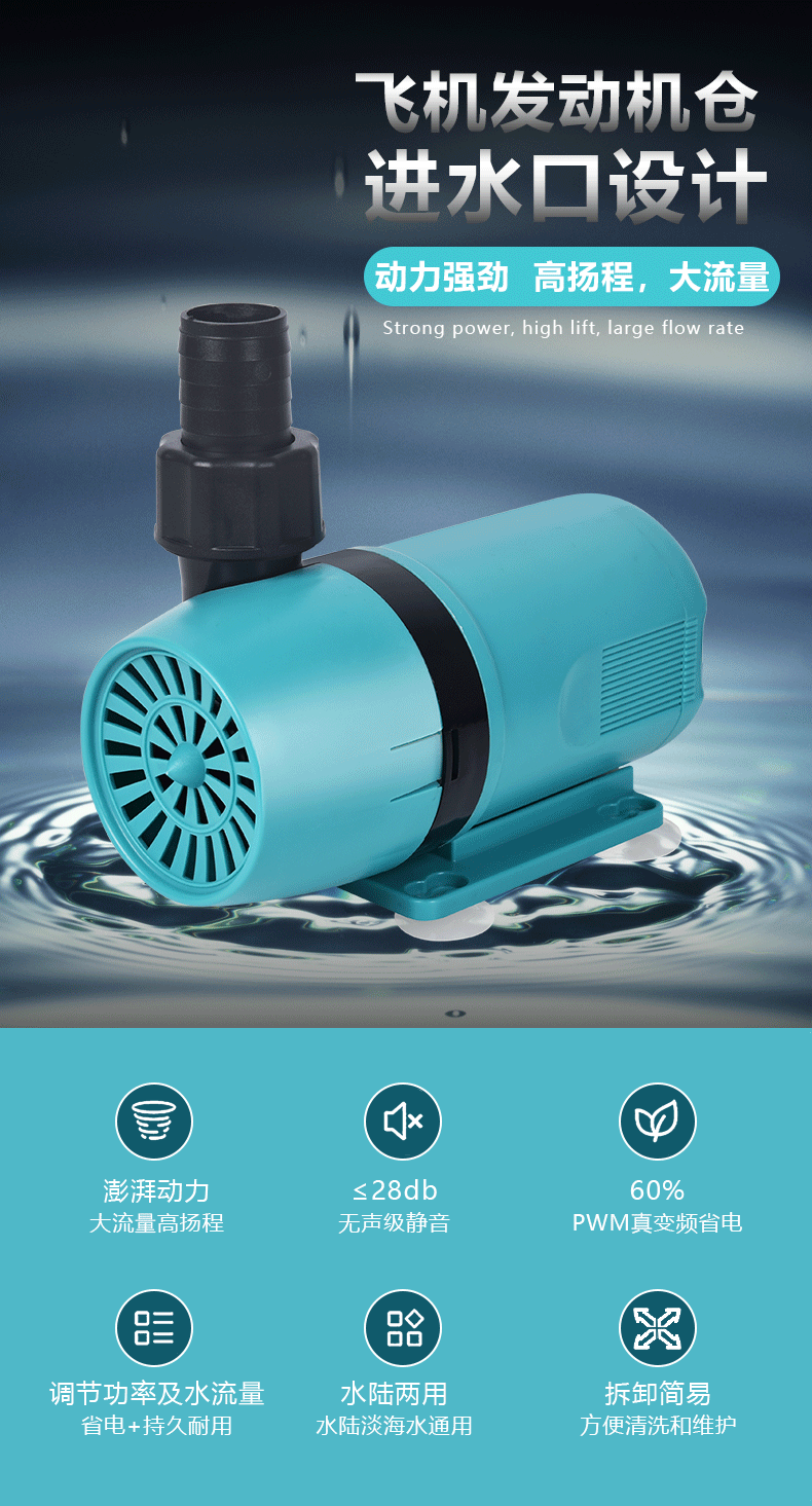 어항 가변 주파수 워터 펌프 매우 조용한 어항 펌프 펌핑 여과 순환 잠수정 펌프 워터 커튼 워터 커튼 벽 풍경 흐르는 물