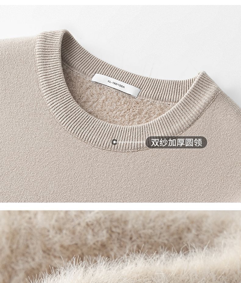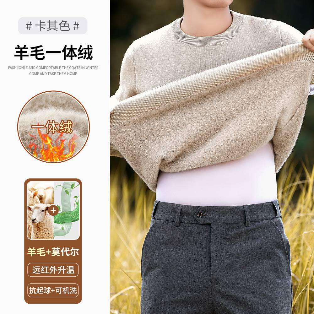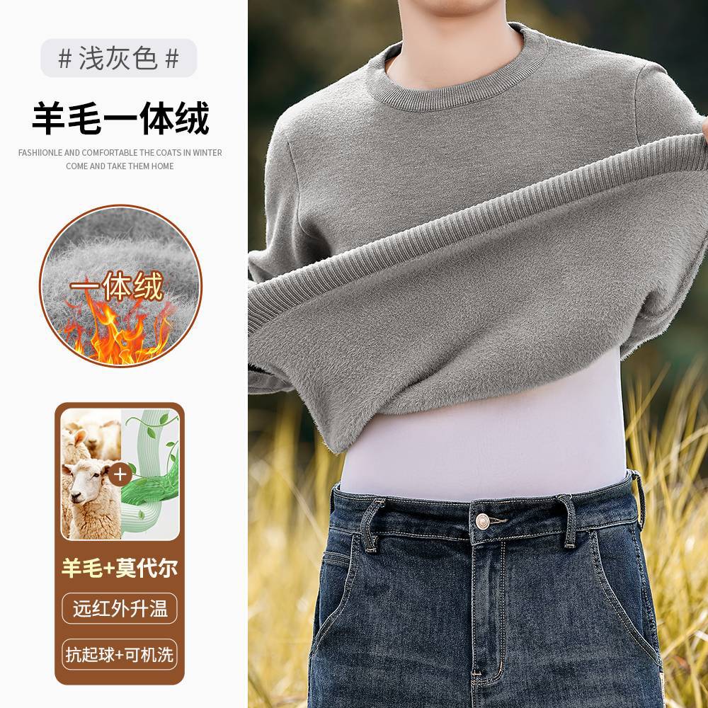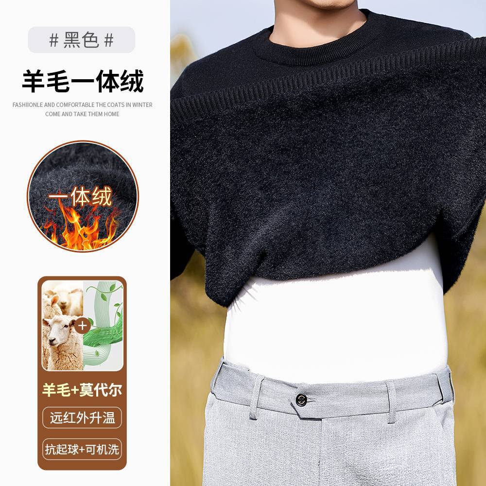 고급 울 모달 원피스 벨벳 라운드넥 남성용 가을 겨울용 두꺼운 보온 니트 스웨터