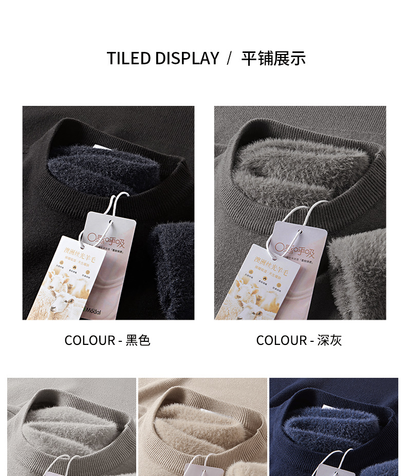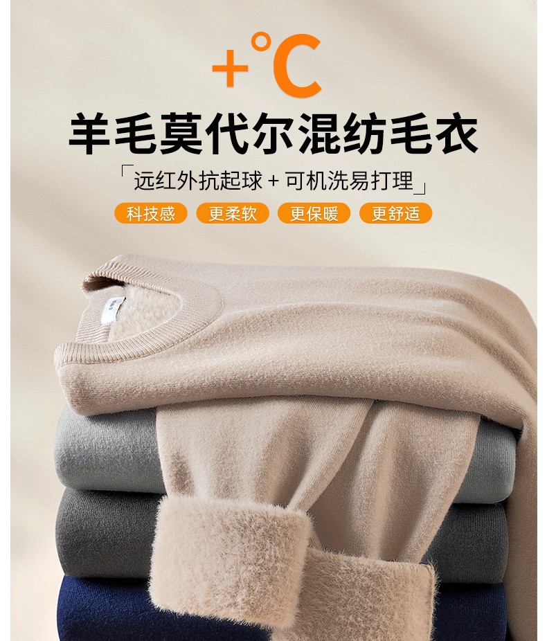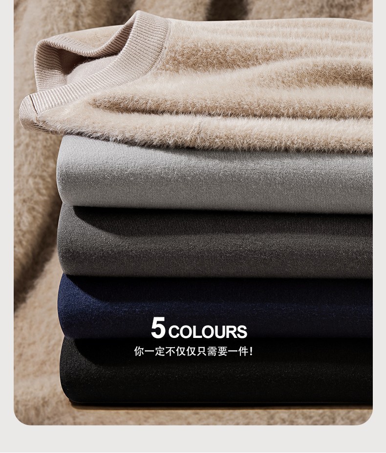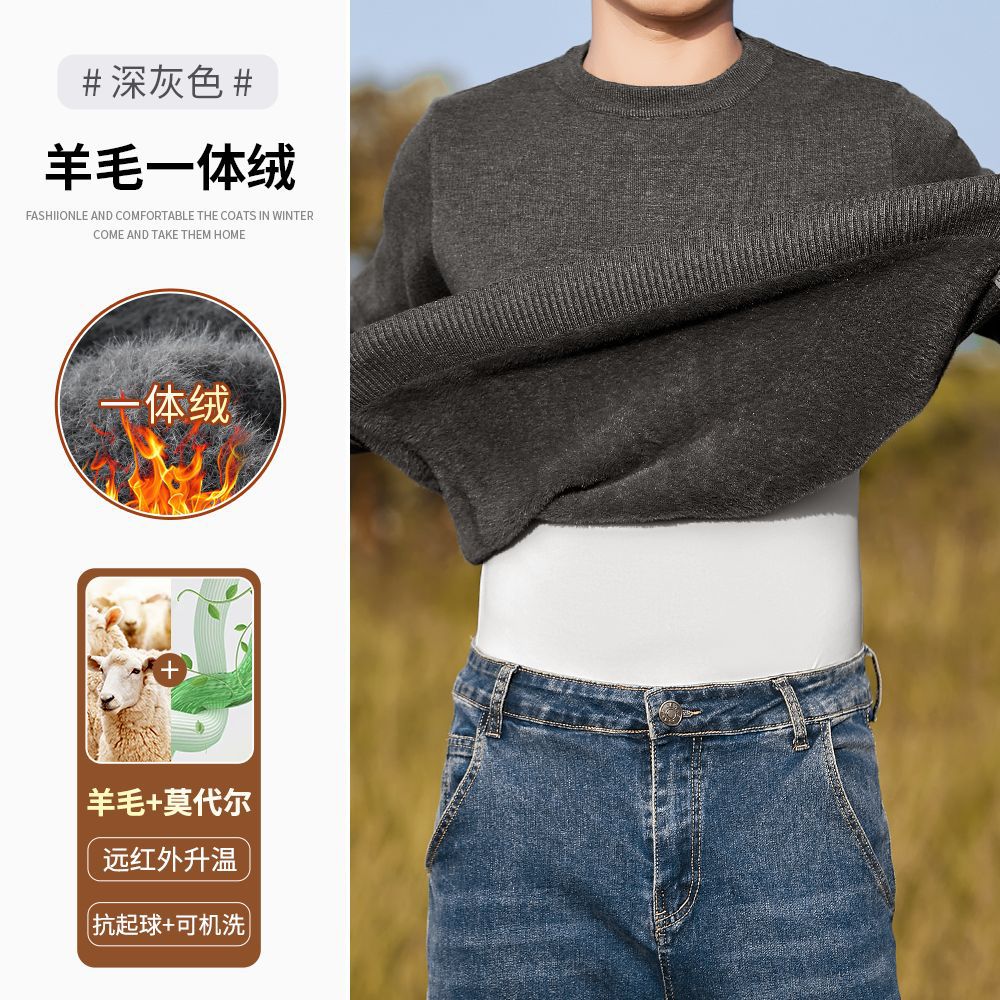 고급 울 모달 원피스 벨벳 라운드넥 남성용 가을 겨울용 두꺼운 보온 니트 스웨터