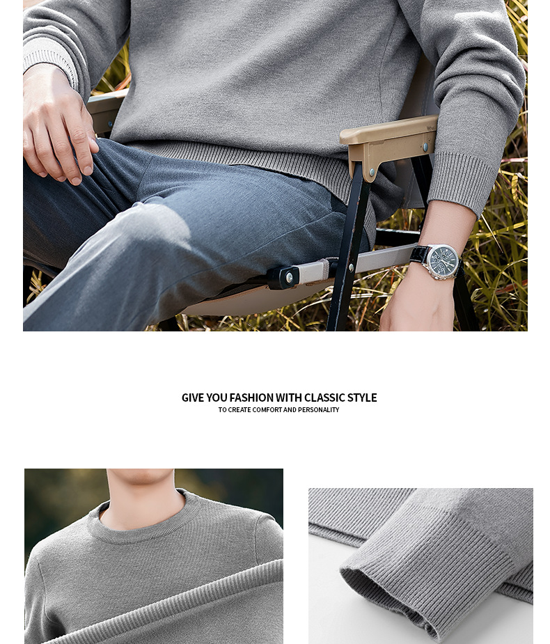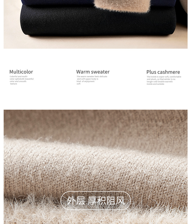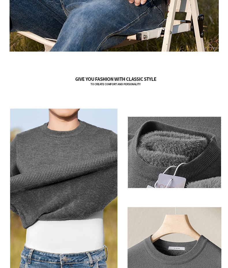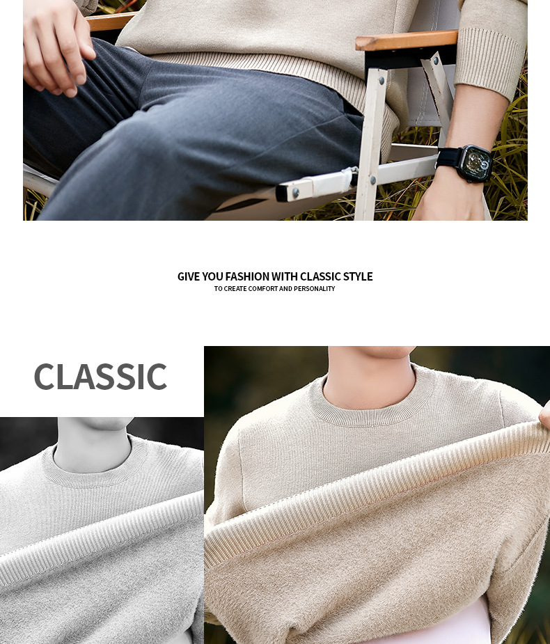 고급 울 모달 원피스 벨벳 라운드넥 남성용 가을 겨울용 두꺼운 보온 니트 스웨터스토어 가기