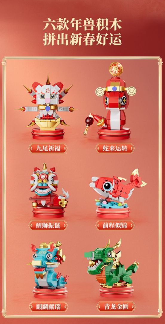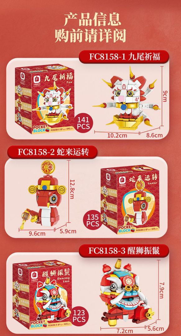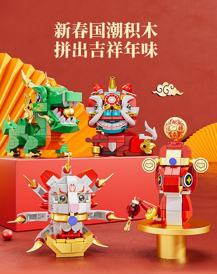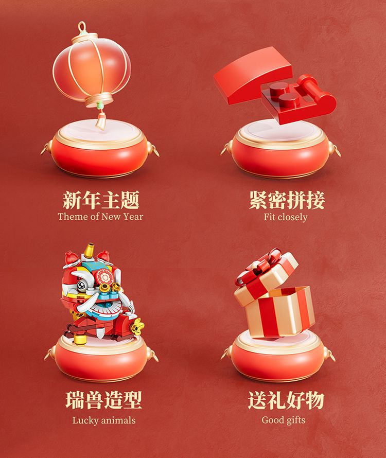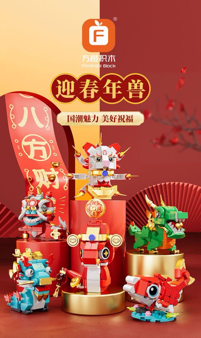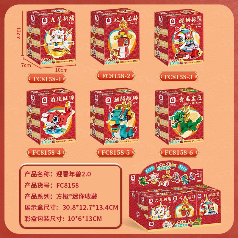 팡 오렌지 FC8158 봄 축제 전국 조수 야수 기린 코이 사자 댄스 어린이 조립 새해 선물 장식 빌딩 블록스토어 가기