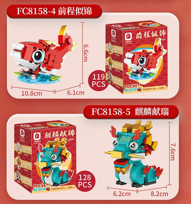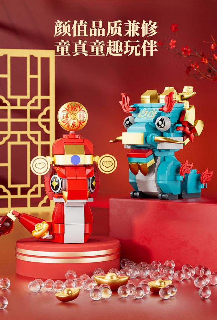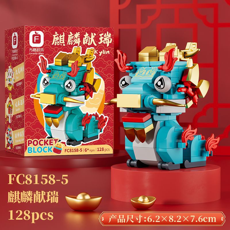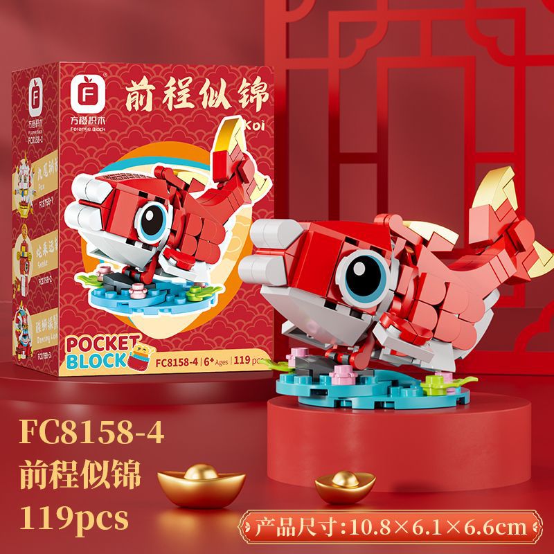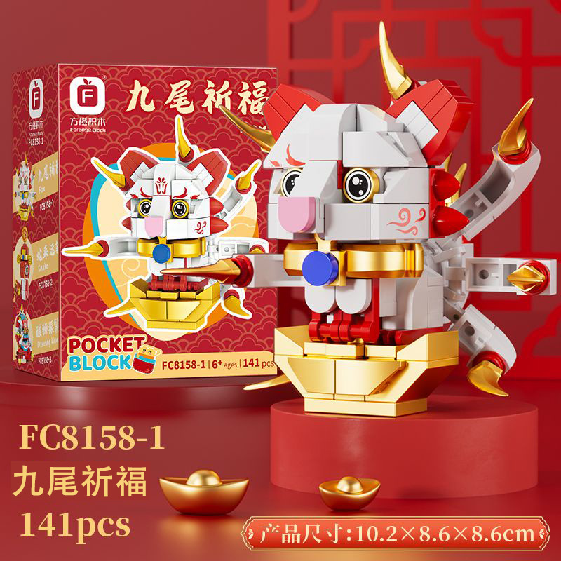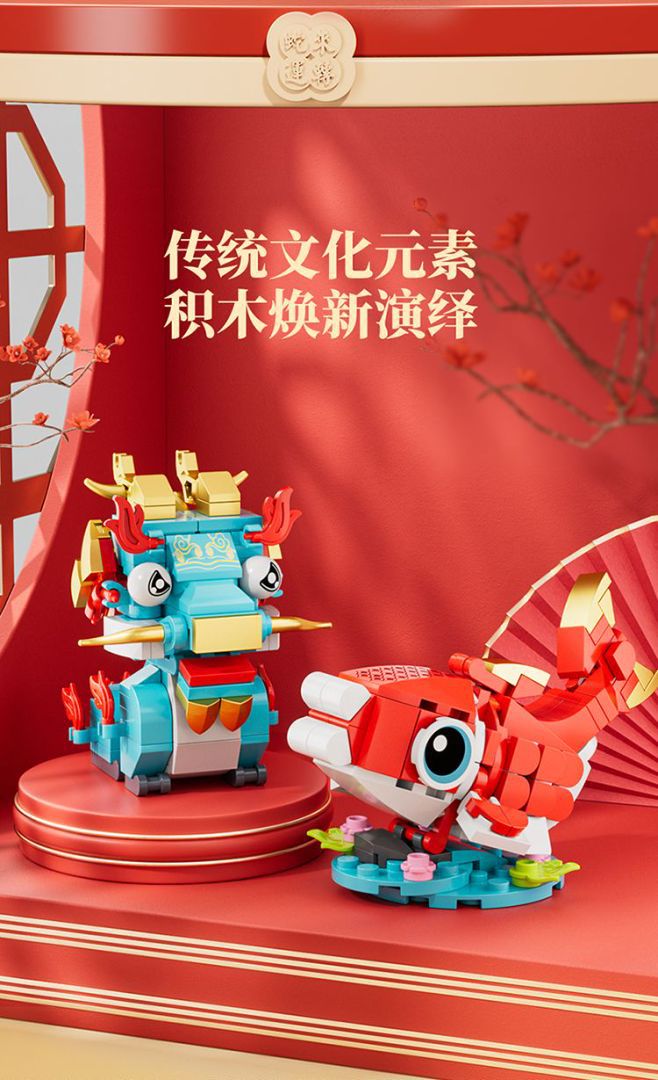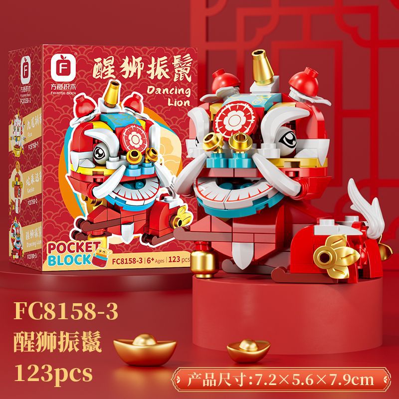 팡 오렌지 FC8158 봄 축제 전국 조수 야수 기린 코이 사자 댄스 어린이 조립 새해 선물 장식 빌딩 블록