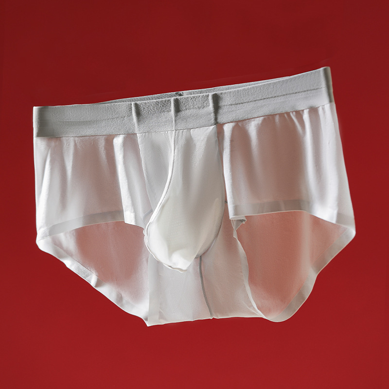 남성용 브리프 경량 통기성 별도의 포커 초박형 트레이스 아이스 실크 벗은 피부 친화적 인 편안한 반투명 속옷