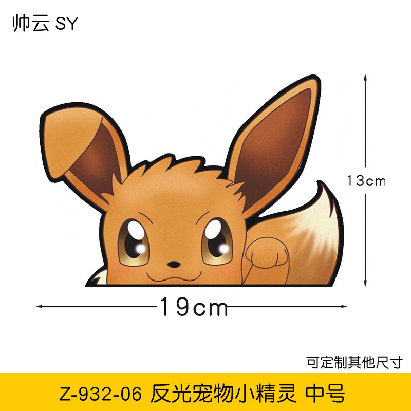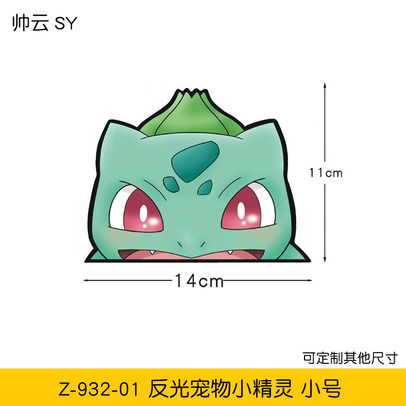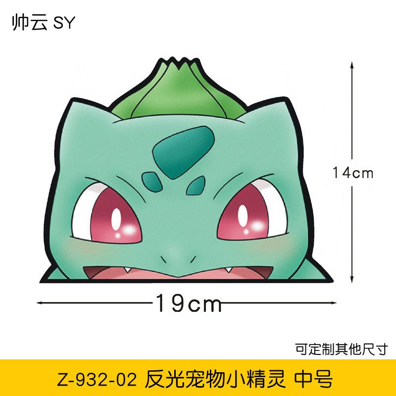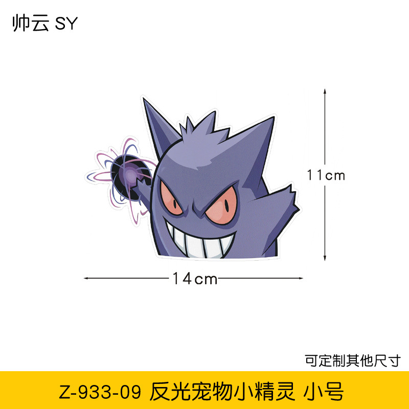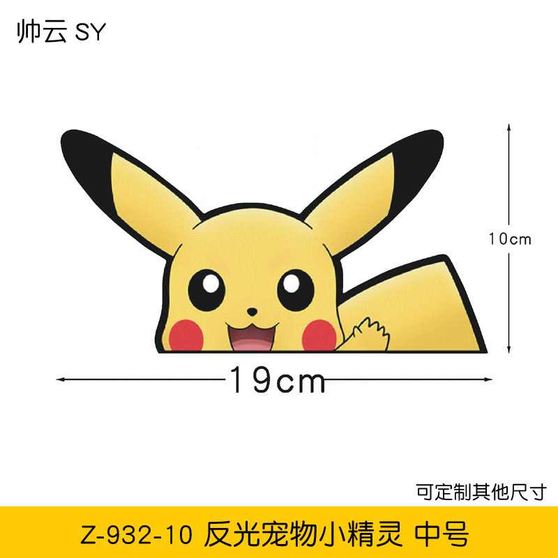 포켓몬 만화 삼각형 후면 창 반사 자동차 스티커 자동차 도어 바디 스티커