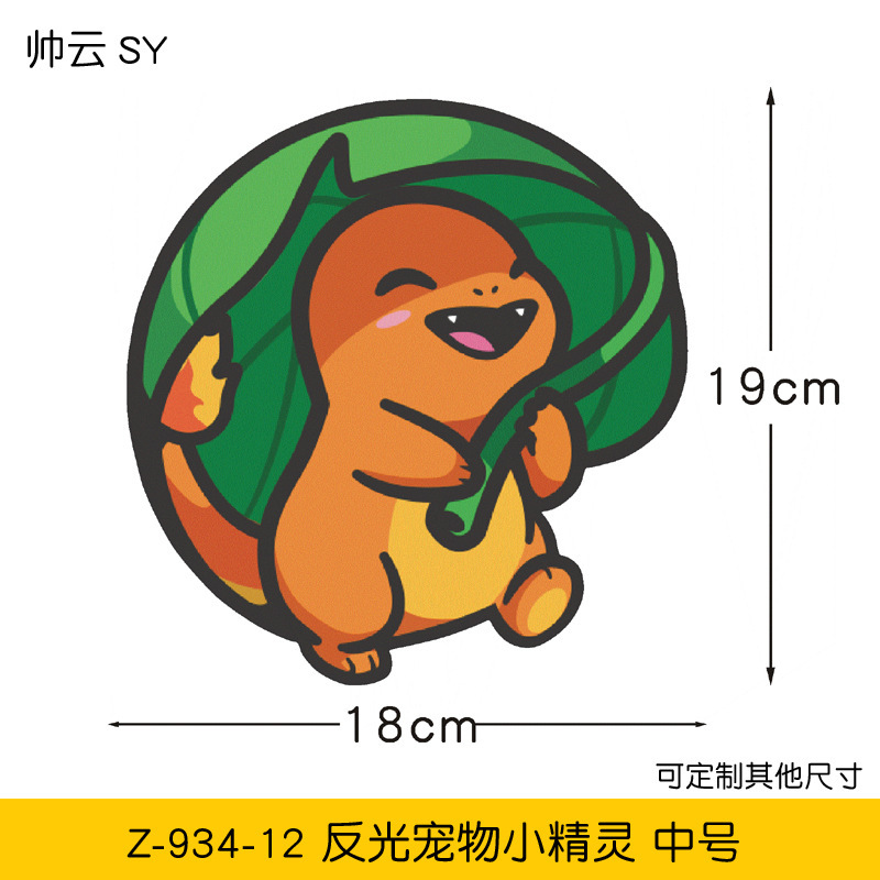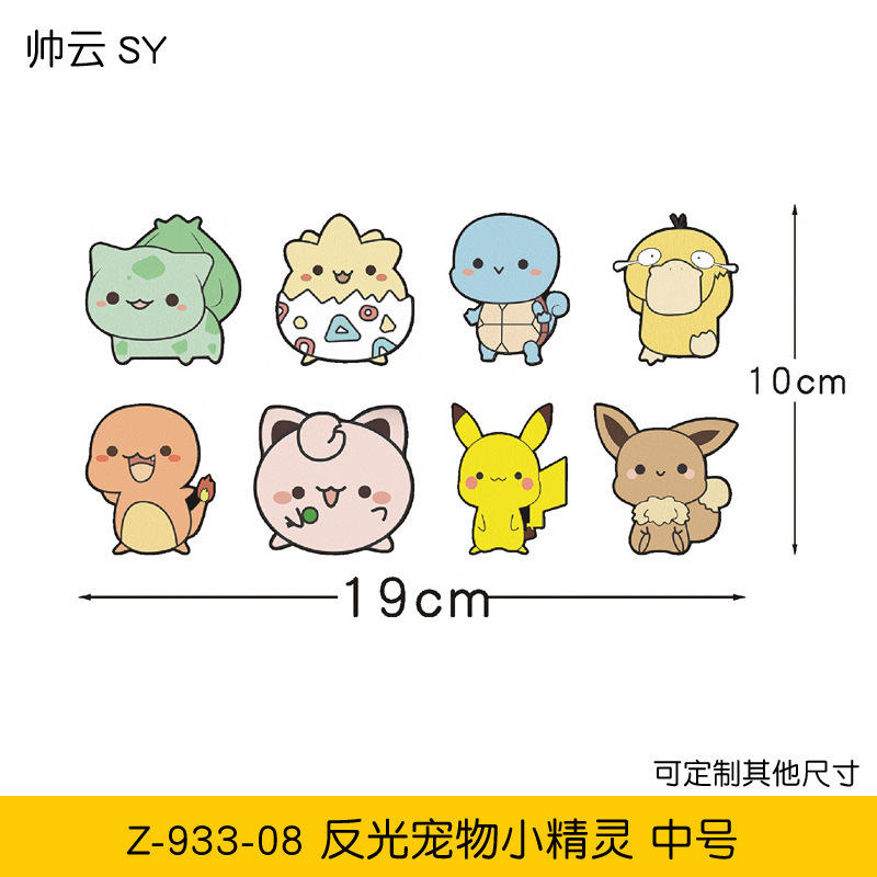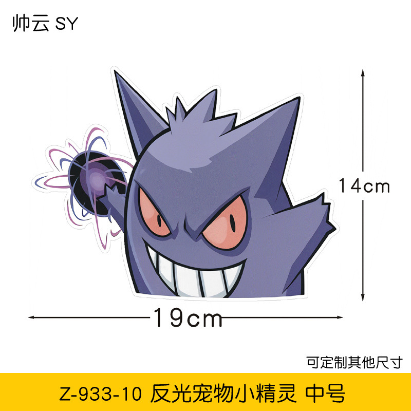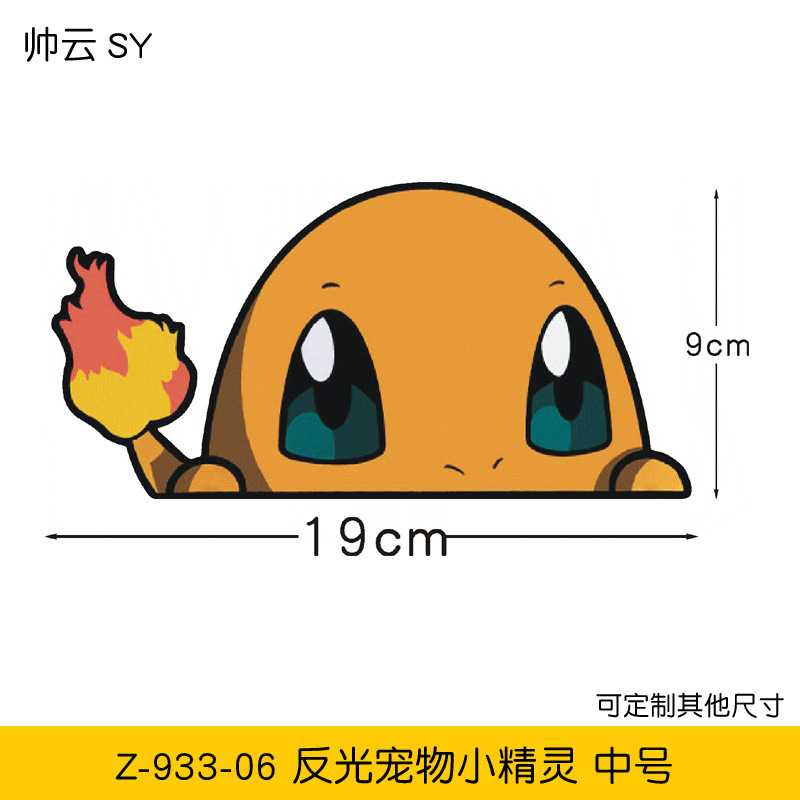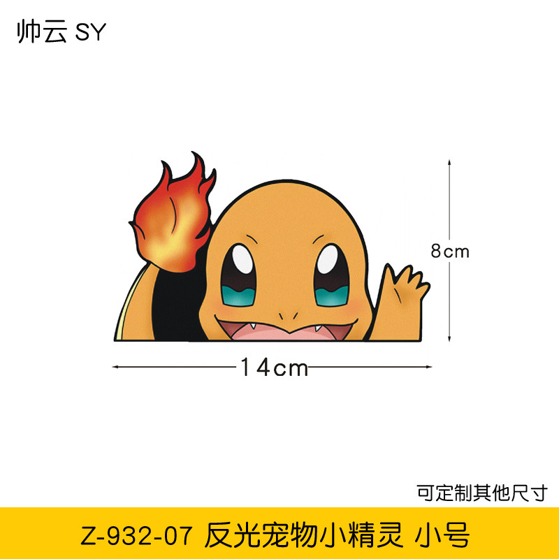 포켓몬 만화 삼각형 후면 창 반사 자동차 스티커 자동차 도어 바디 스티커