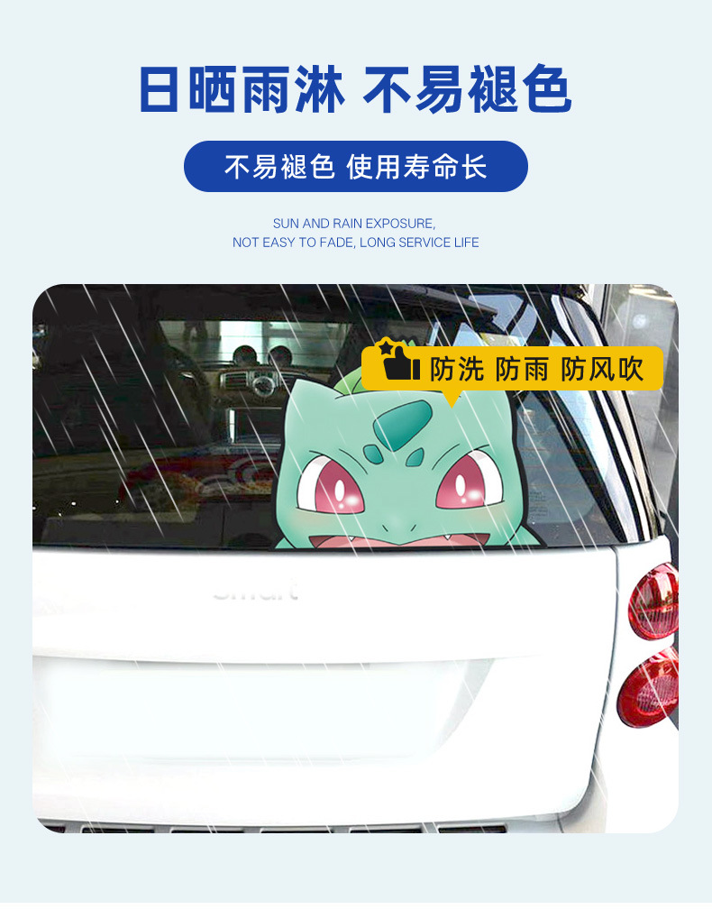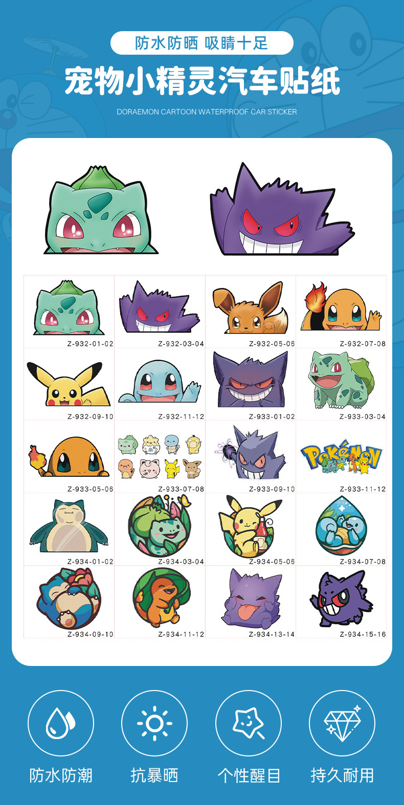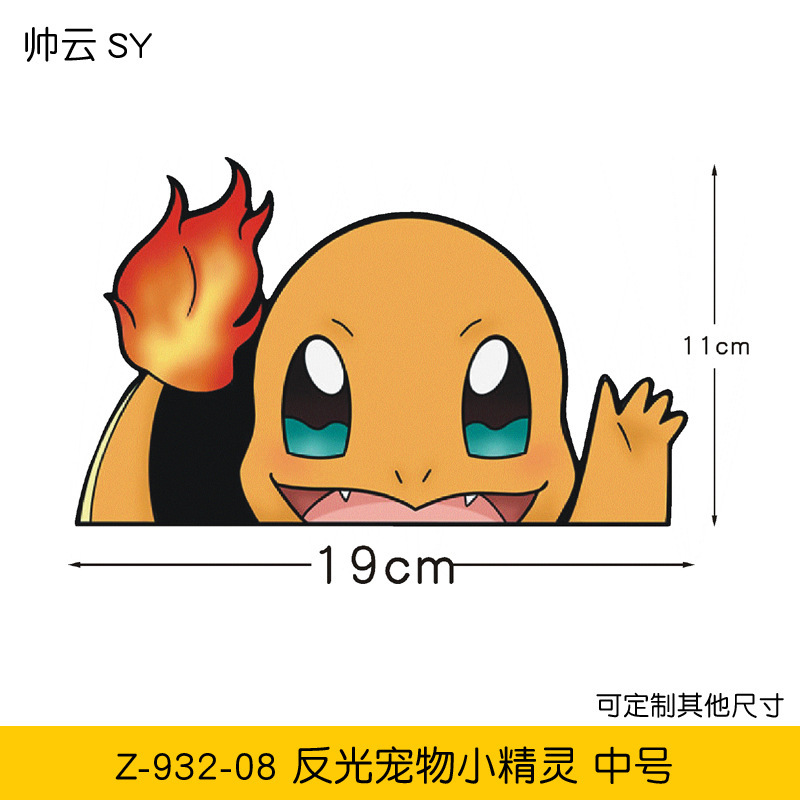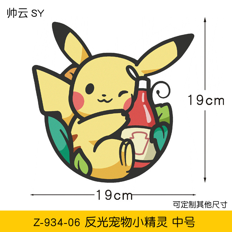 포켓몬 만화 삼각형 후면 창 반사 자동차 스티커 자동차 도어 바디 스티커스토어 가기