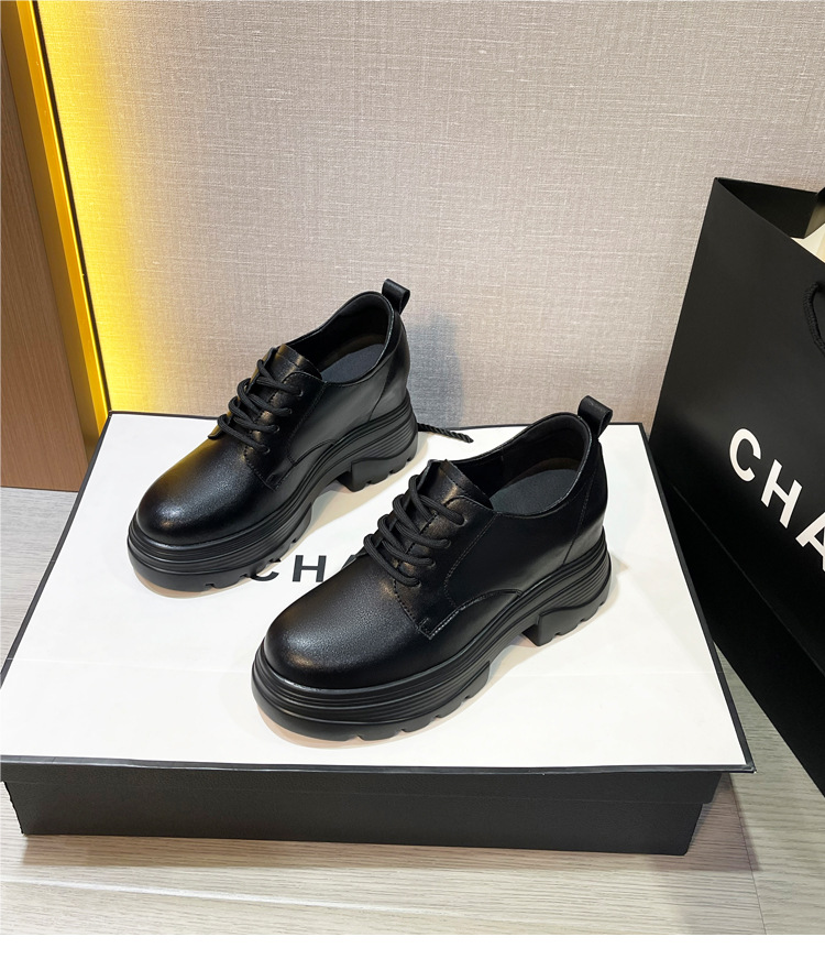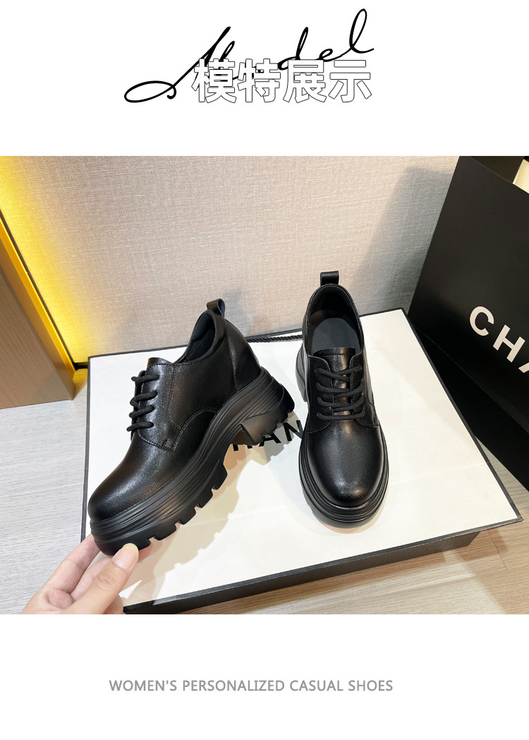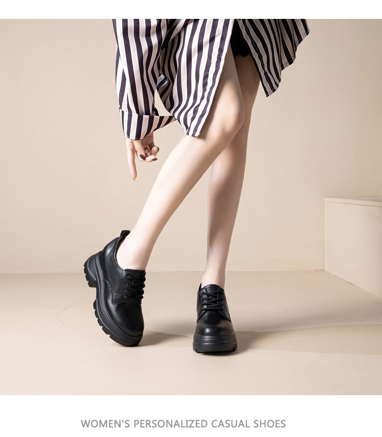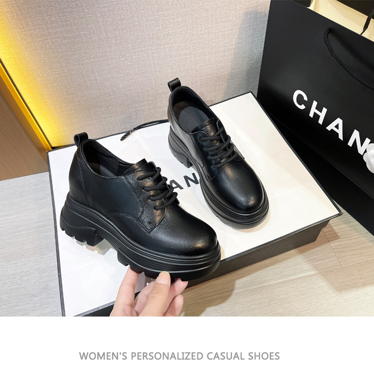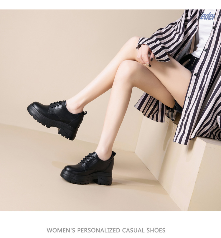 2025 새로운 두꺼운 밑창 영국 플러스 코튼 로퍼 여성 높은 9CM 작은 여성 신발 통근 소프트 Cowhide 신발스토어 가기