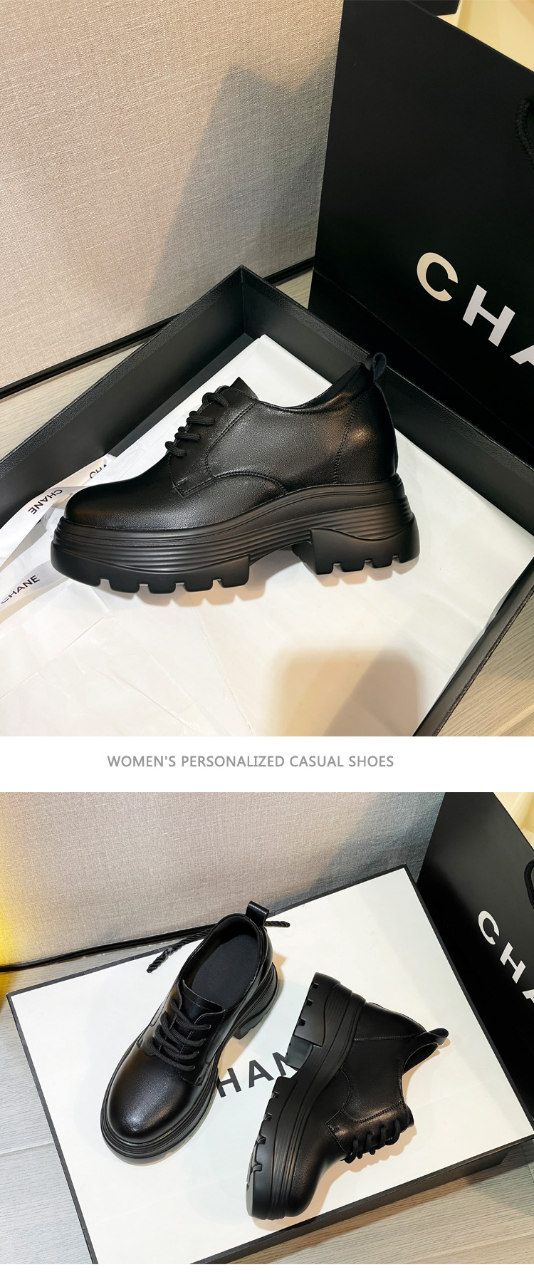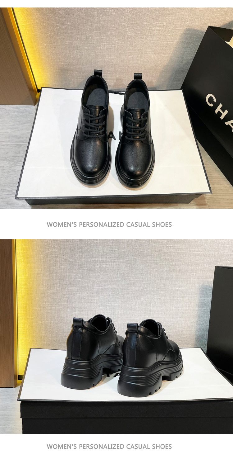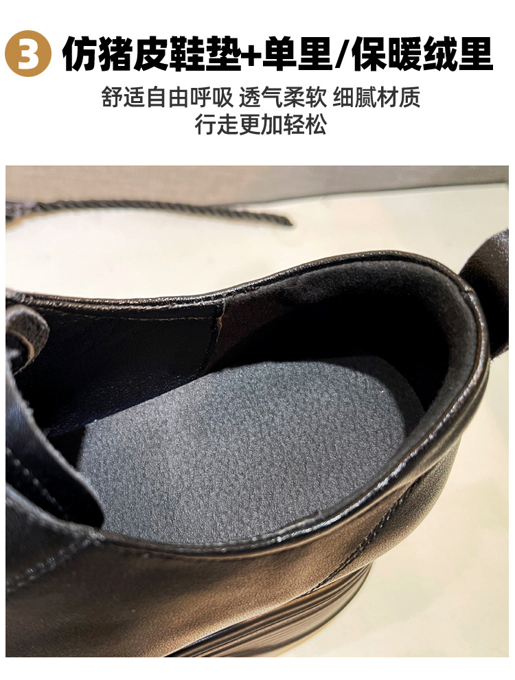 2025 새로운 두꺼운 밑창 영국 플러스 코튼 로퍼 여성 높은 9CM 작은 여성 신발 통근 소프트 Cowhide 신발스토어 가기