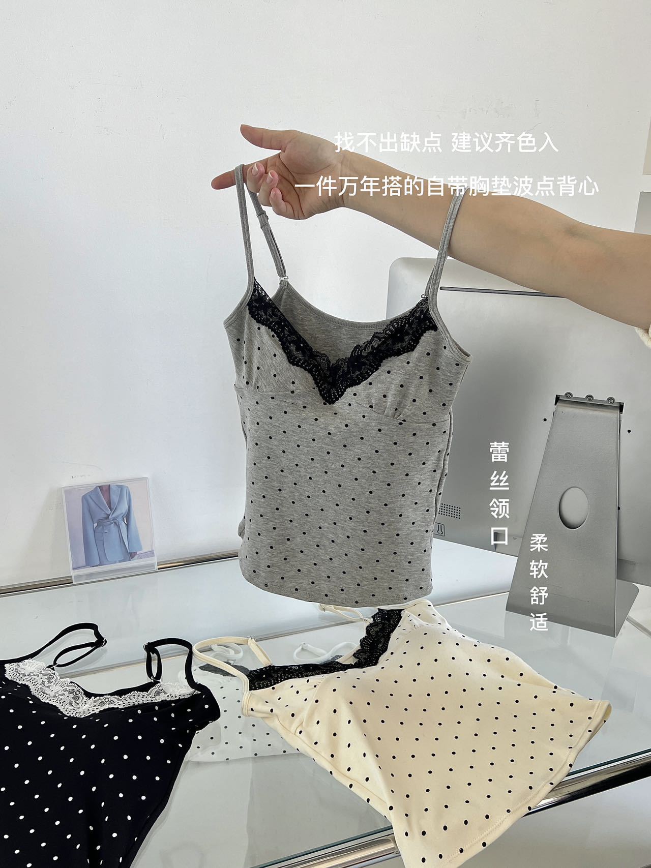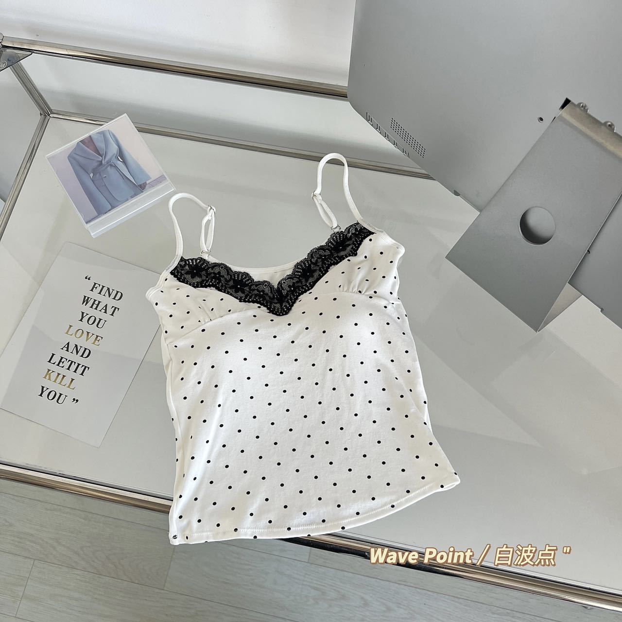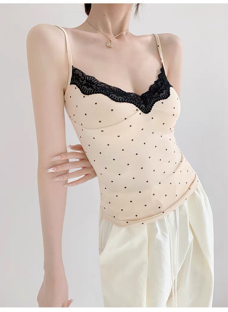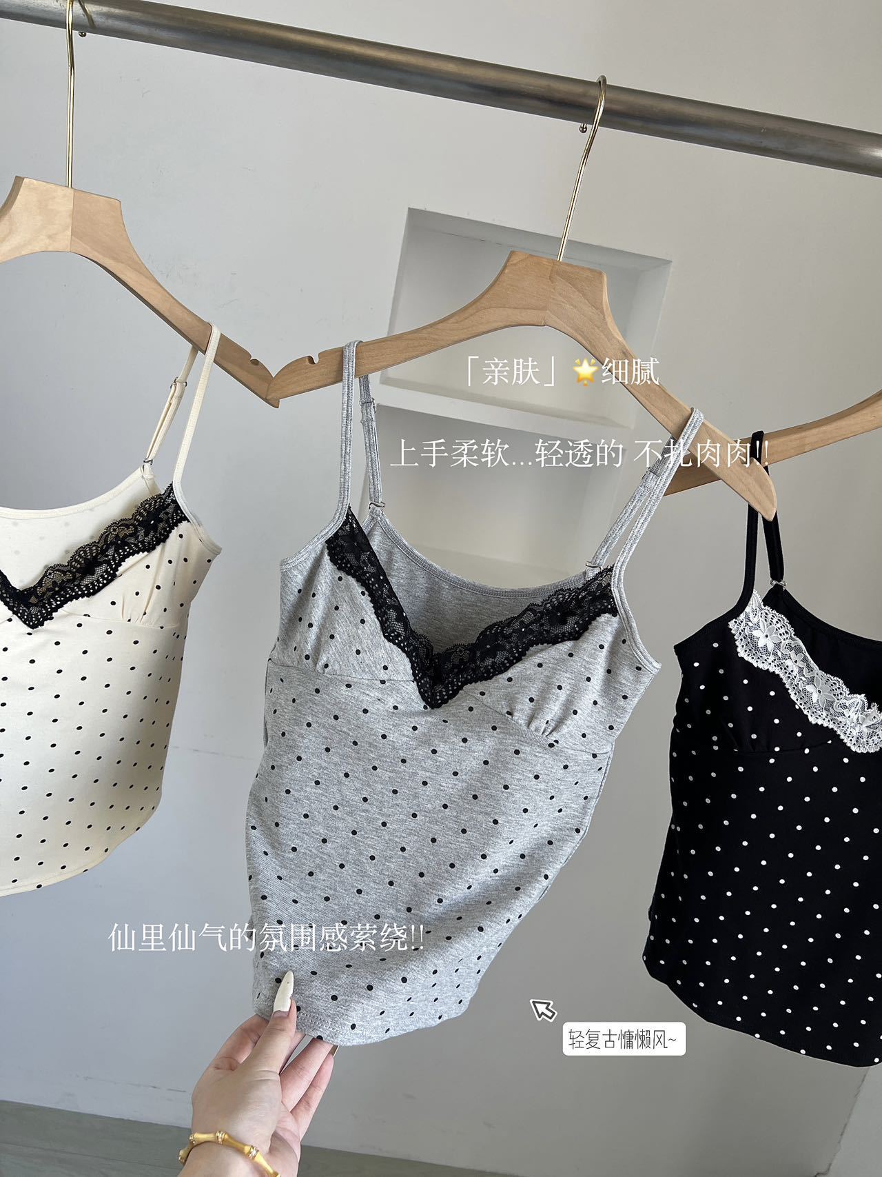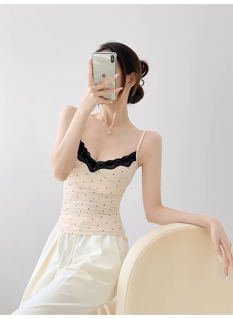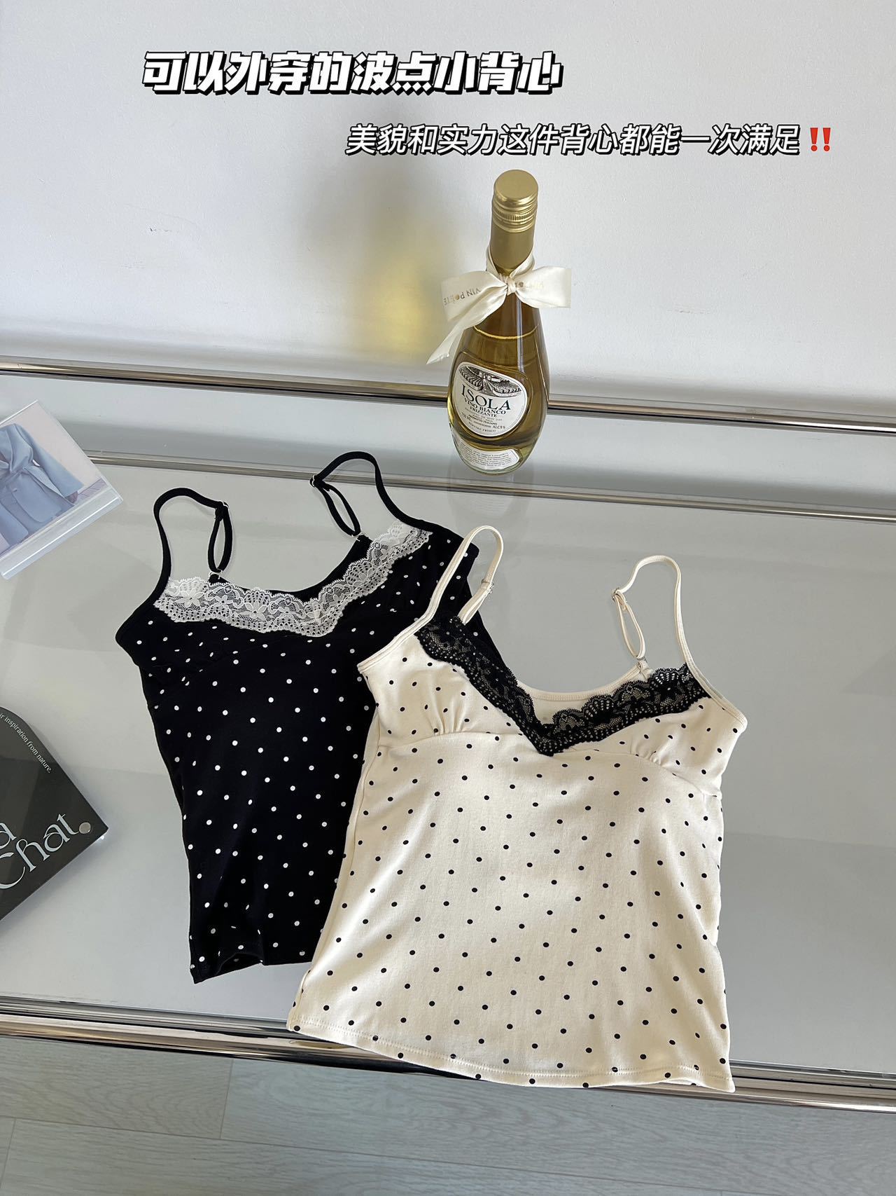 퓨어 프렌치 웨이브 도트 레이스 카미솔 여성용 달콤하고 매운 스티칭 V-넥 슬리밍 탑, 외부 착용 용 가슴 패드 86082스토어 가기