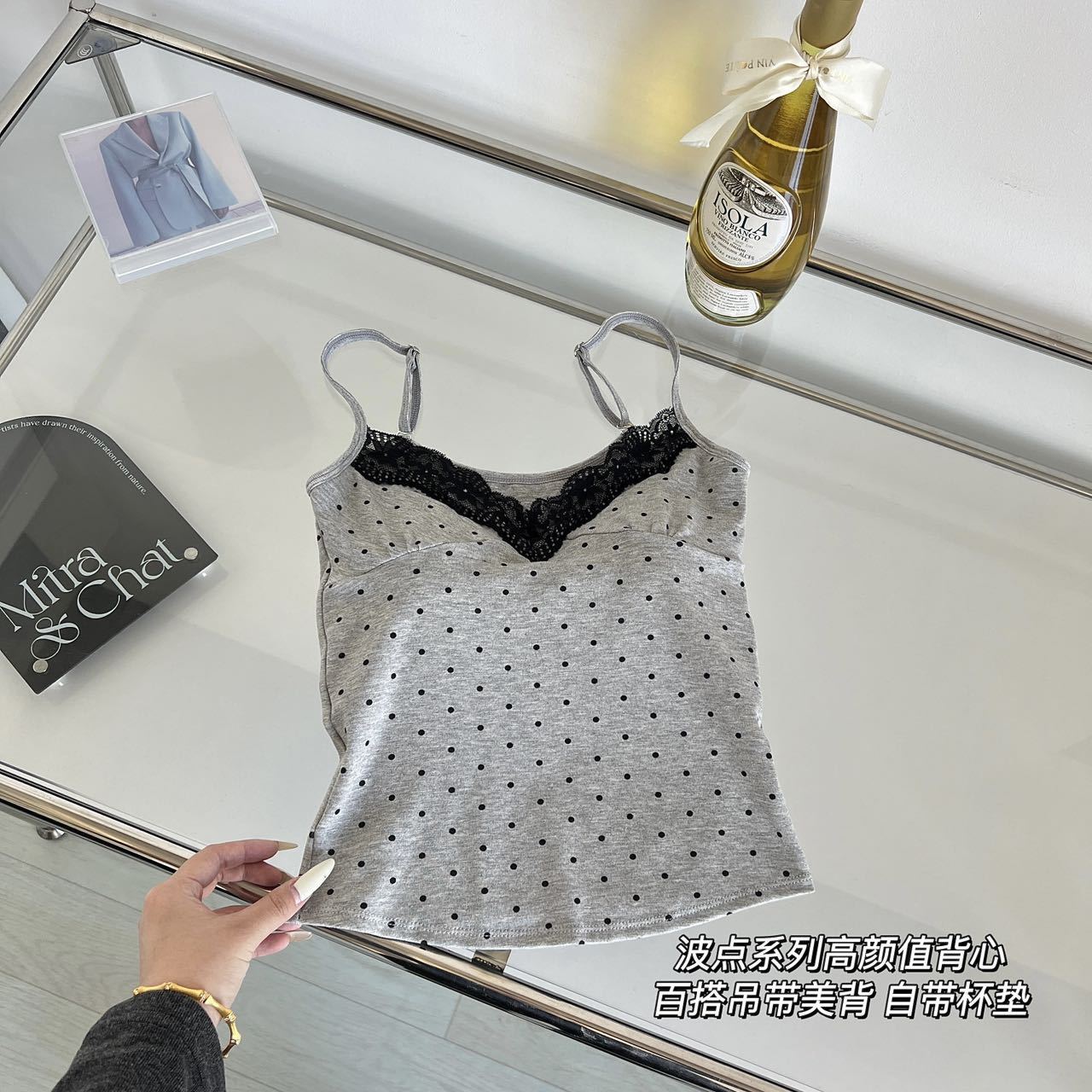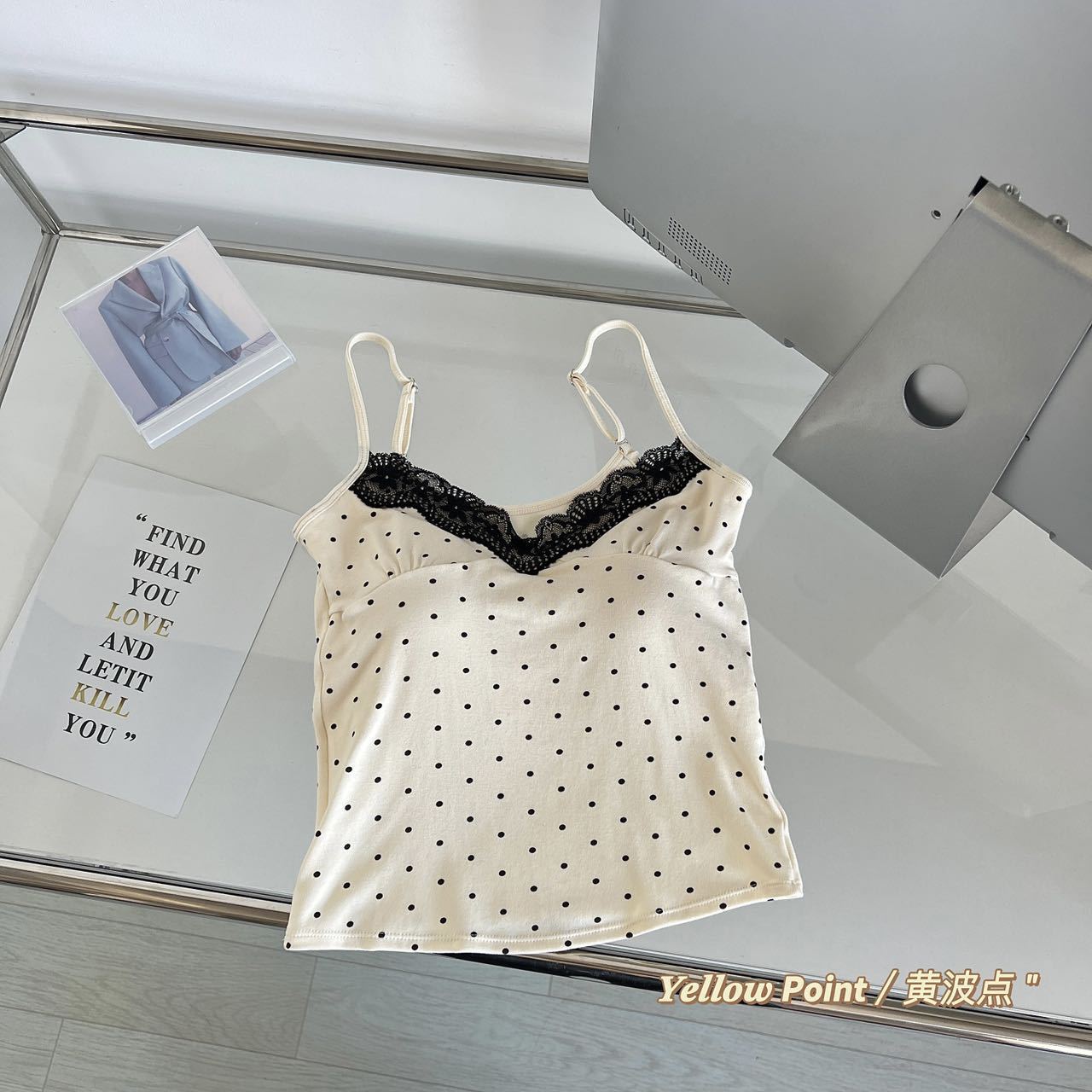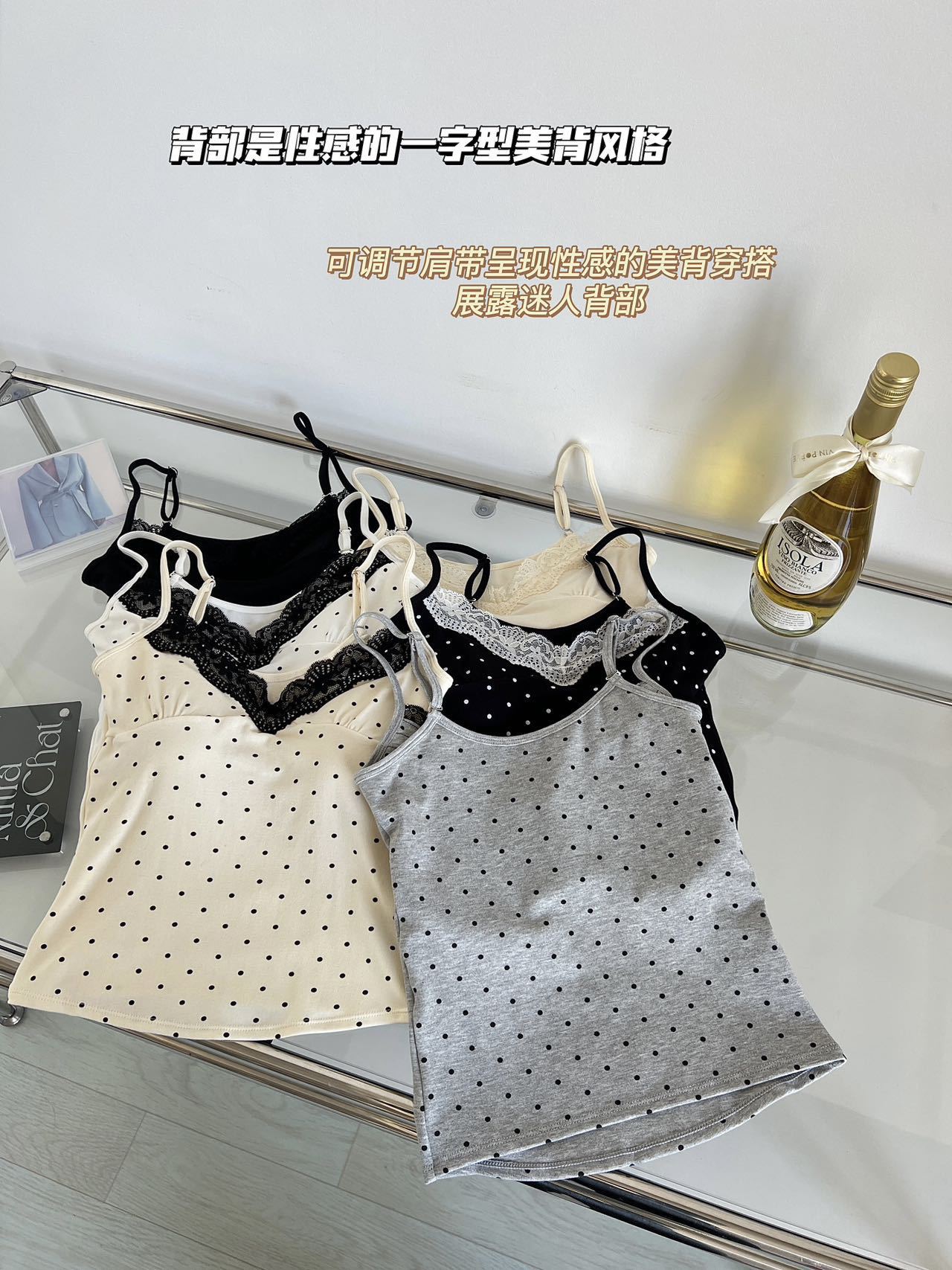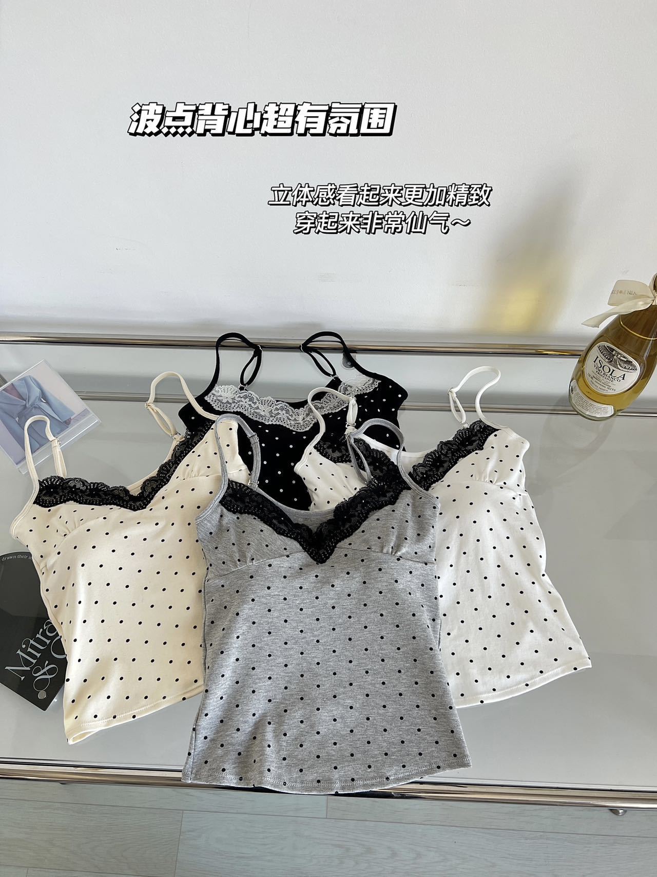 퓨어 프렌치 웨이브 도트 레이스 카미솔 여성용 달콤하고 매운 스티칭 V-넥 슬리밍 탑, 외부 착용 용 가슴 패드 86082스토어 가기