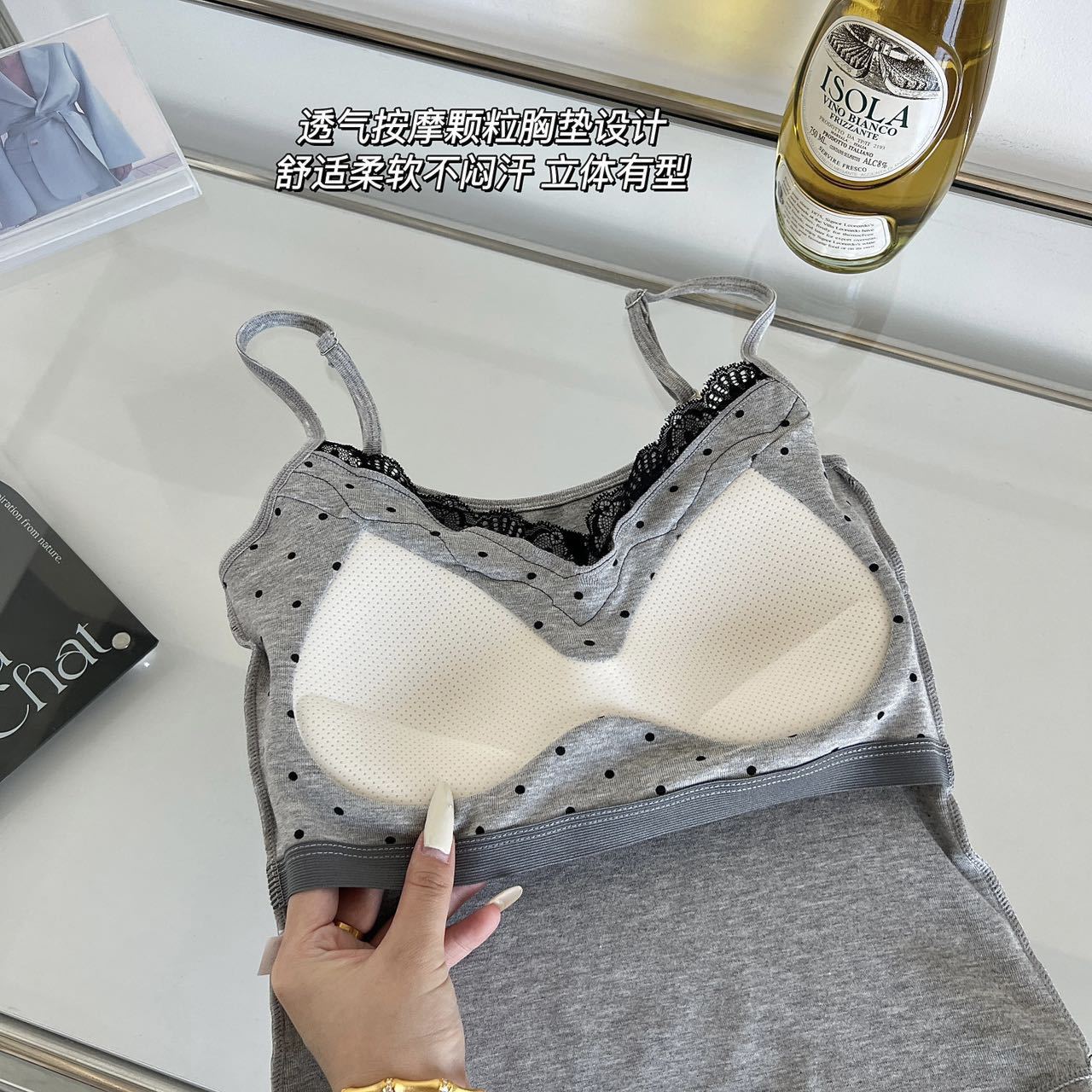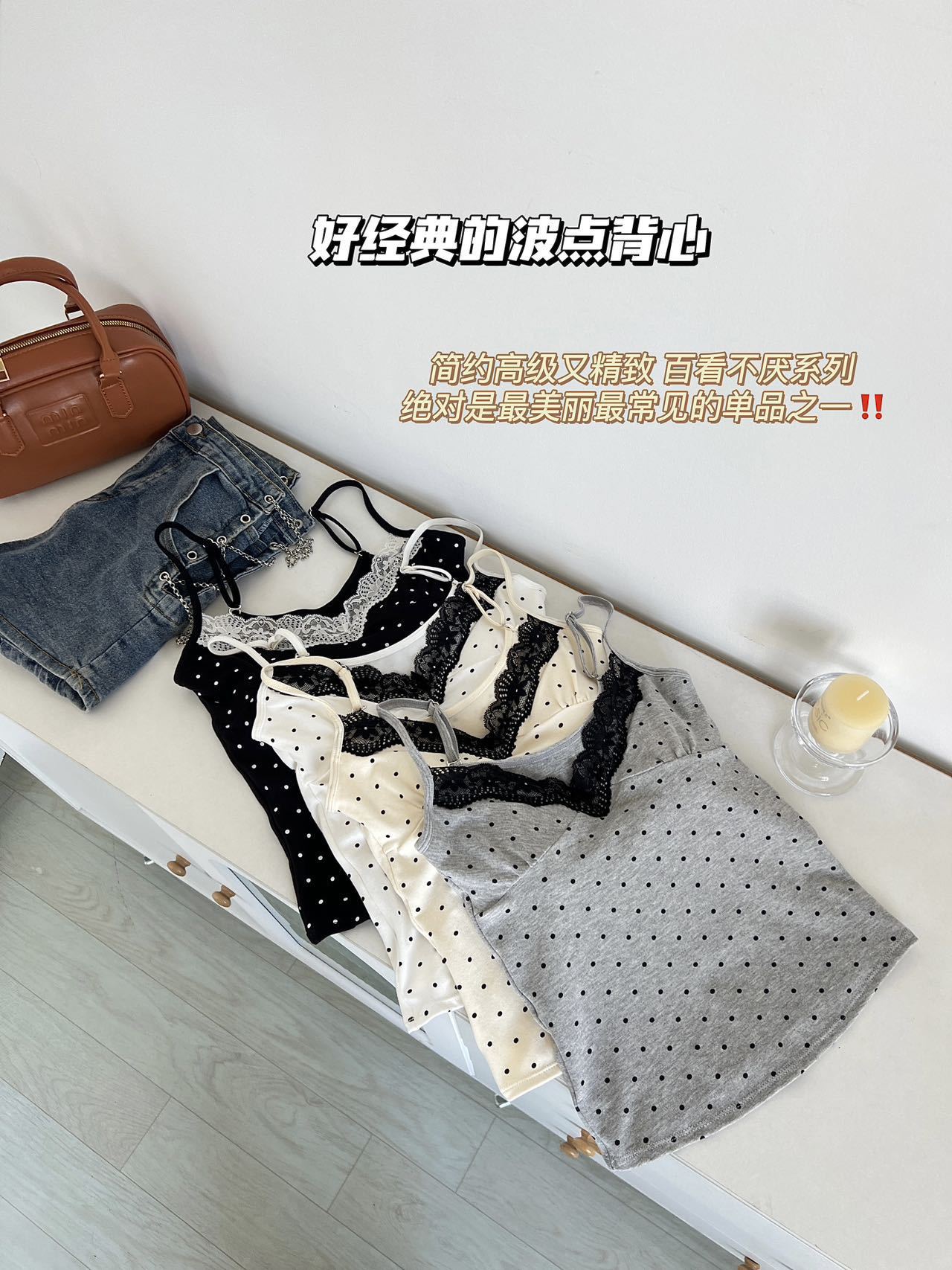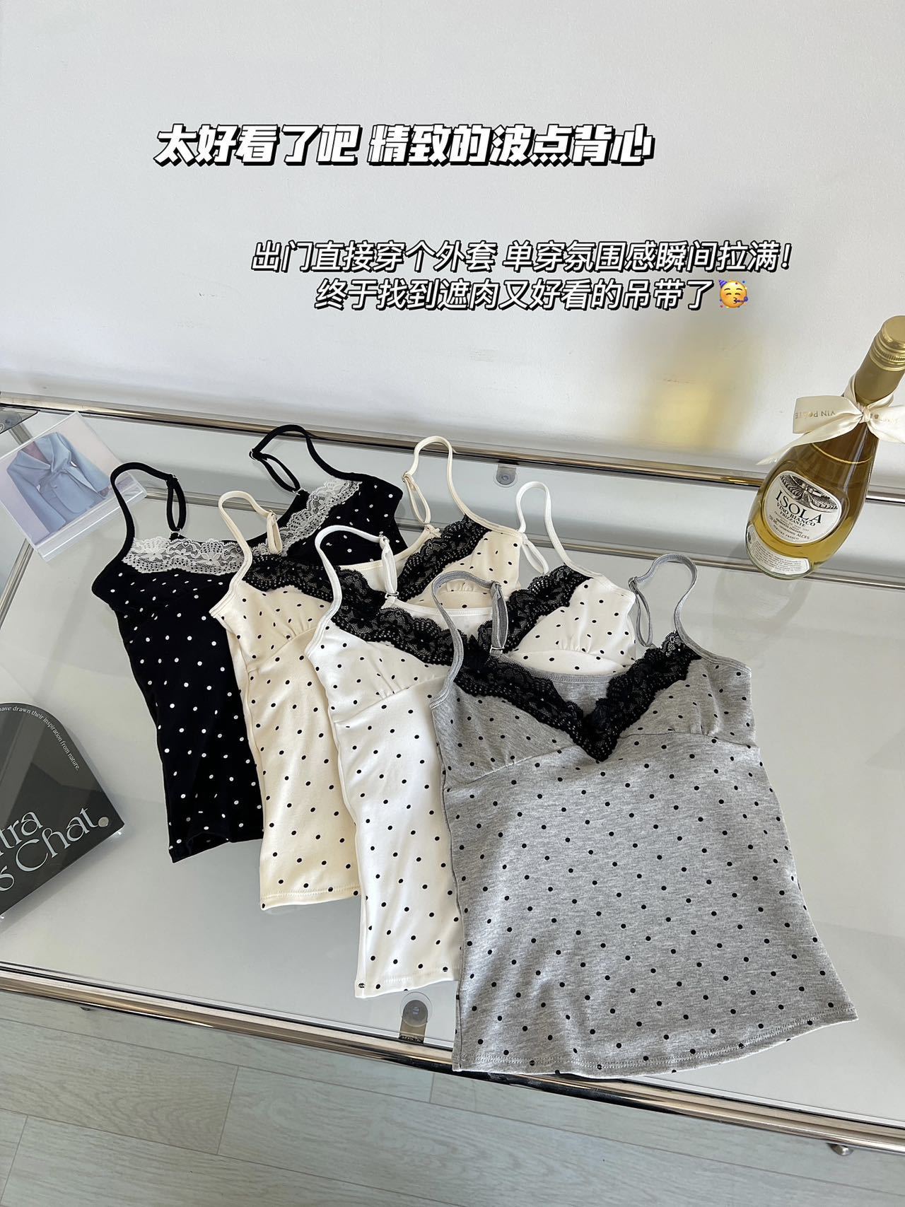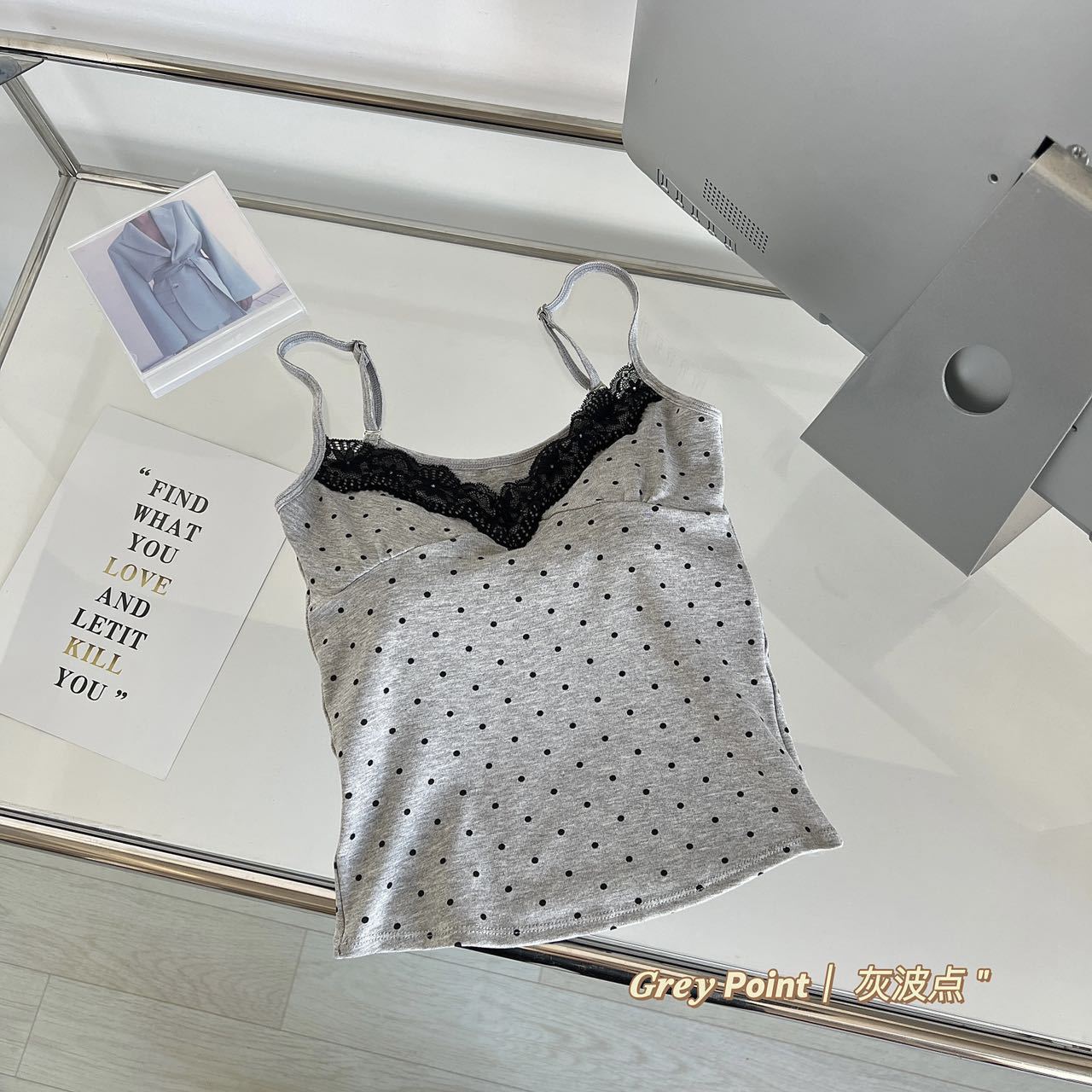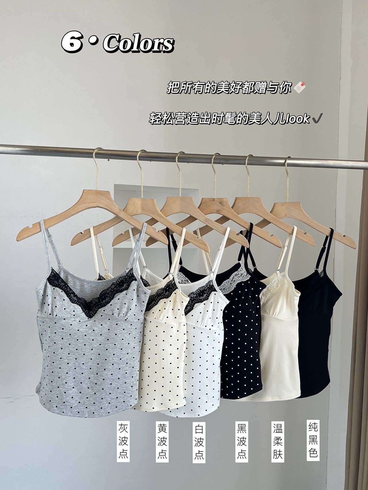 퓨어 프렌치 웨이브 도트 레이스 카미솔 여성용 달콤하고 매운 스티칭 V-넥 슬리밍 탑, 외부 착용 용 가슴 패드 86082스토어 가기