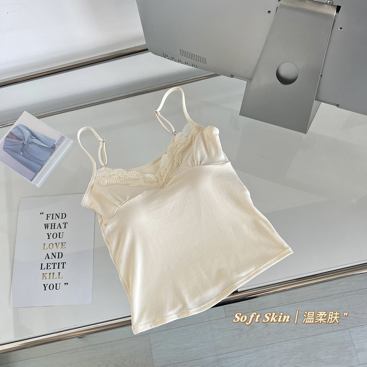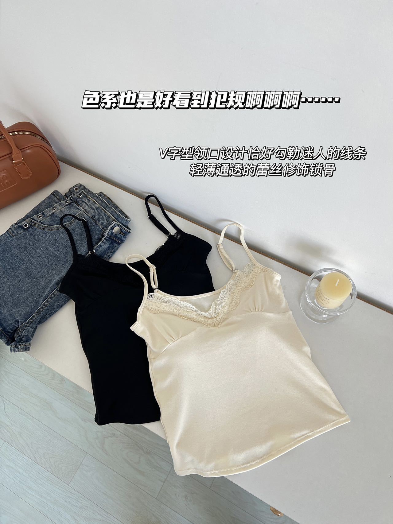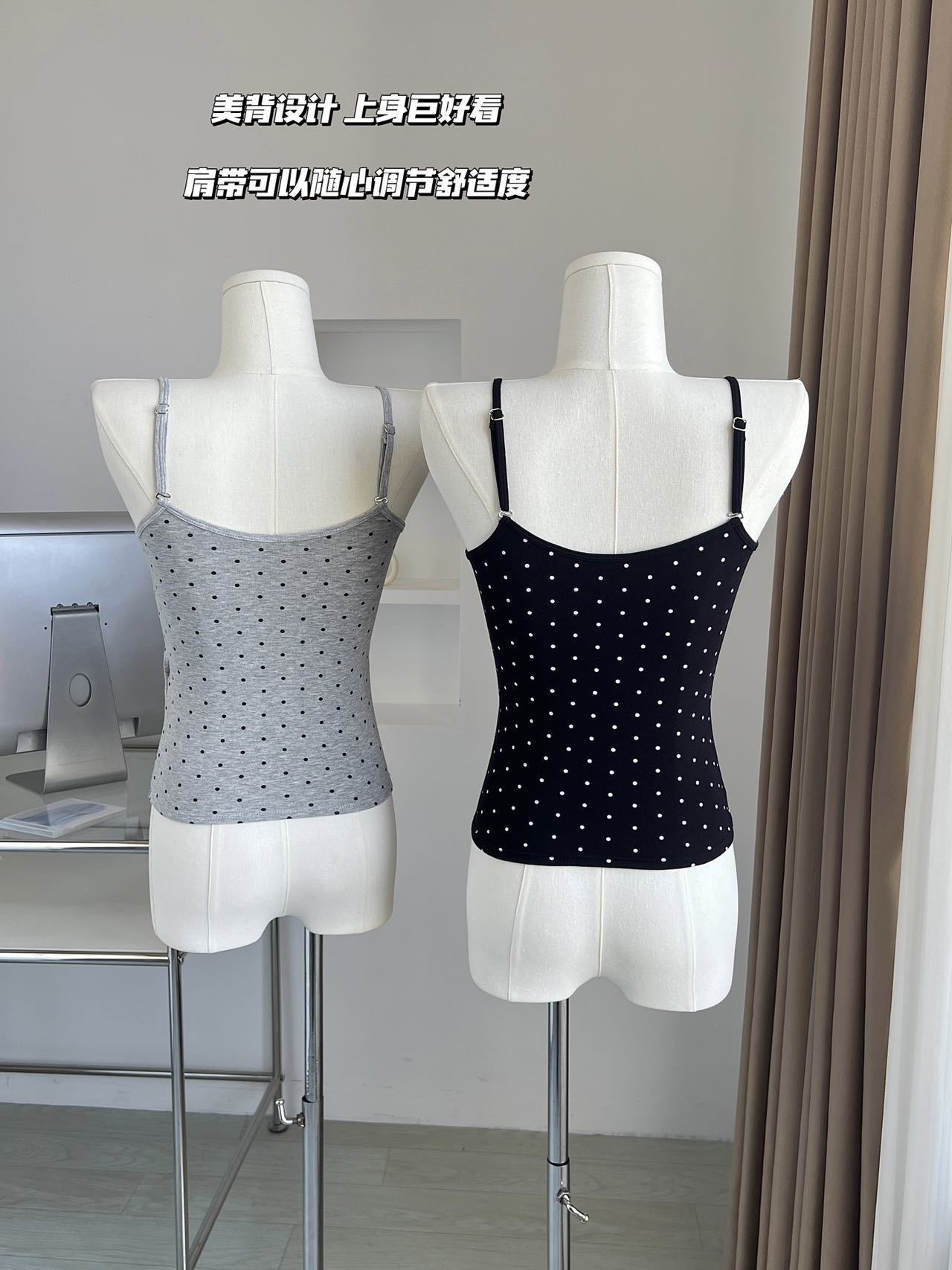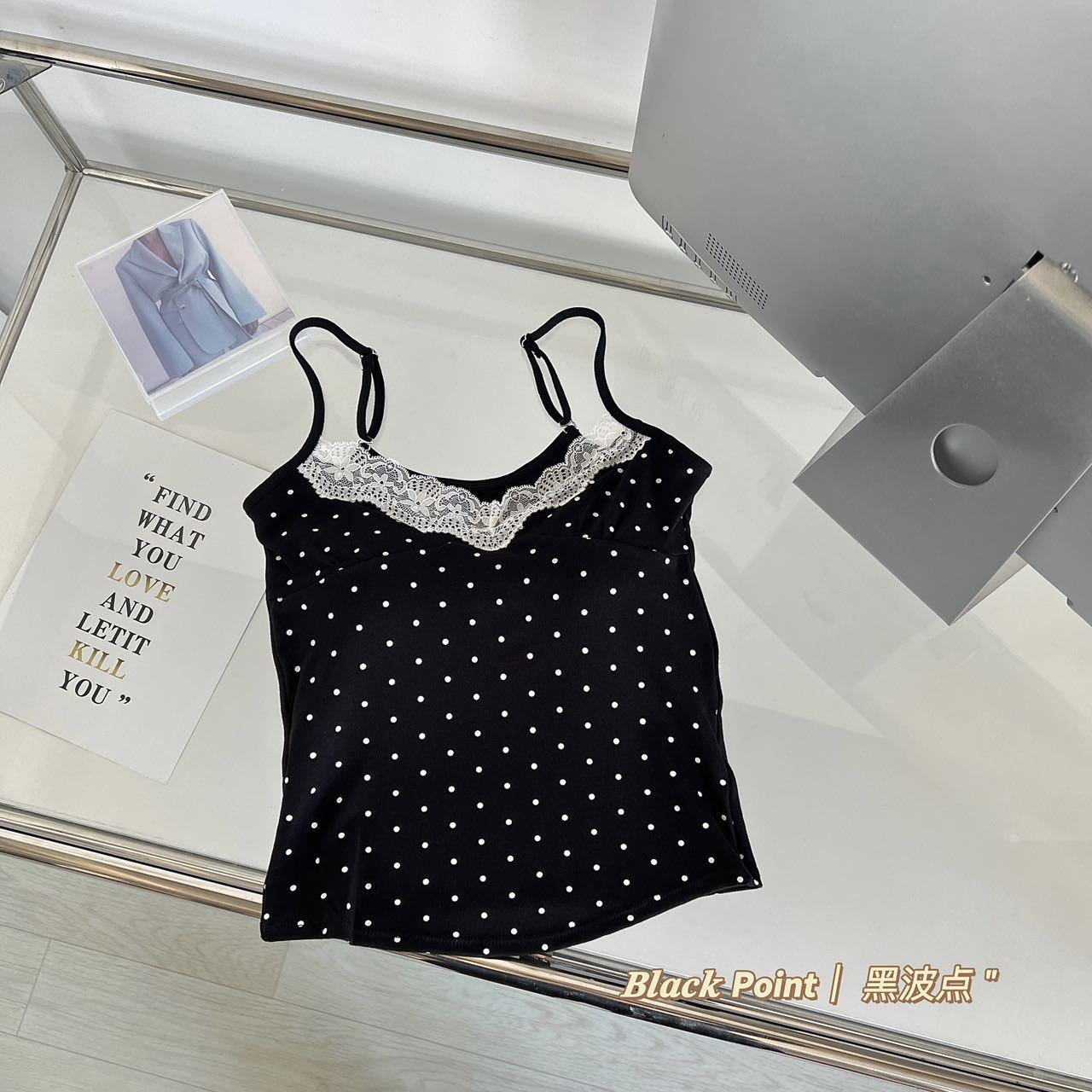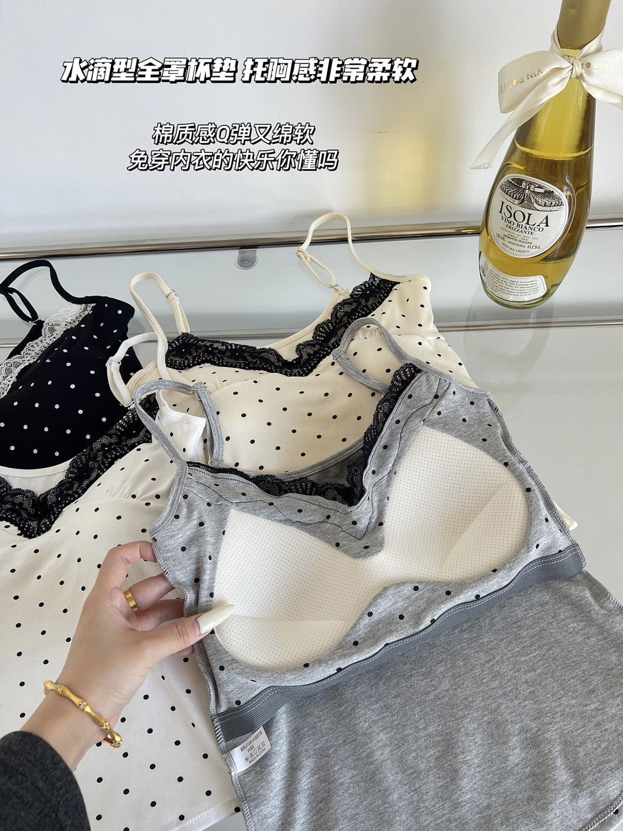 퓨어 프렌치 웨이브 도트 레이스 카미솔 여성용 달콤하고 매운 스티칭 V-넥 슬리밍 탑, 외부 착용 용 가슴 패드 86082스토어 가기