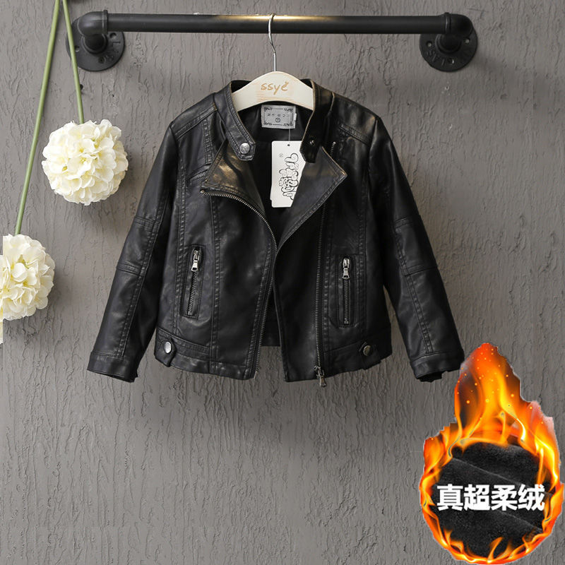 한국판 남녀 아동복 봄과 가을 두꺼운 가죽 의류 한국판 오토바이 소년 소녀 따뜻한 패션 가죽 자켓 코트