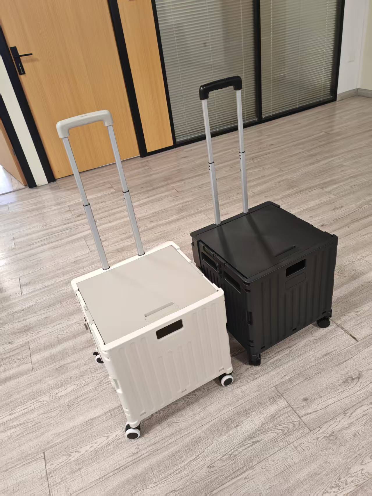 대형 새 플라스틱 가정용 쇼핑 카트, 뚜껑이 있는 휴대용 접이식 트롤리, 슈퍼마켓 쇼핑 카트를 기울일 수 있음