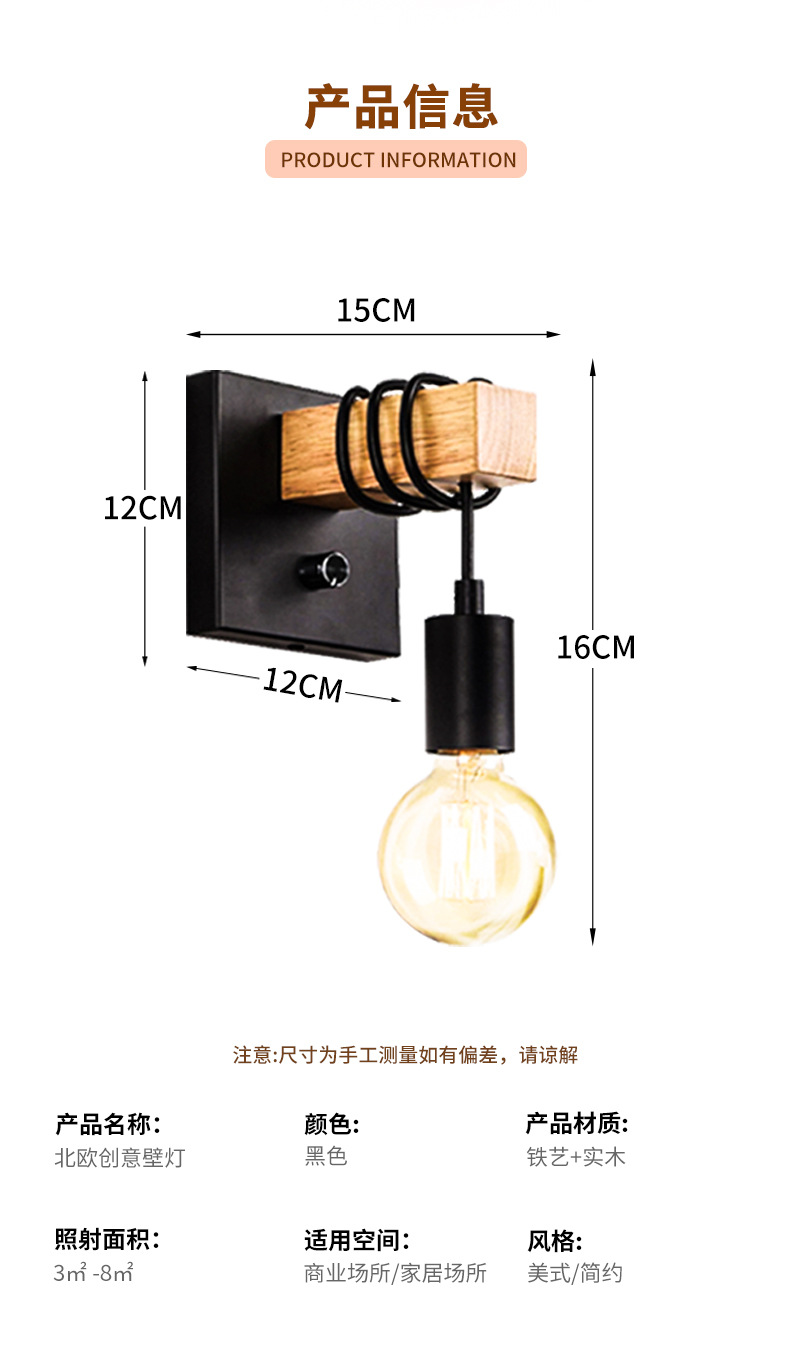 국경 간 복고풍 나무 예술 침실 통로 현관 벽 램프