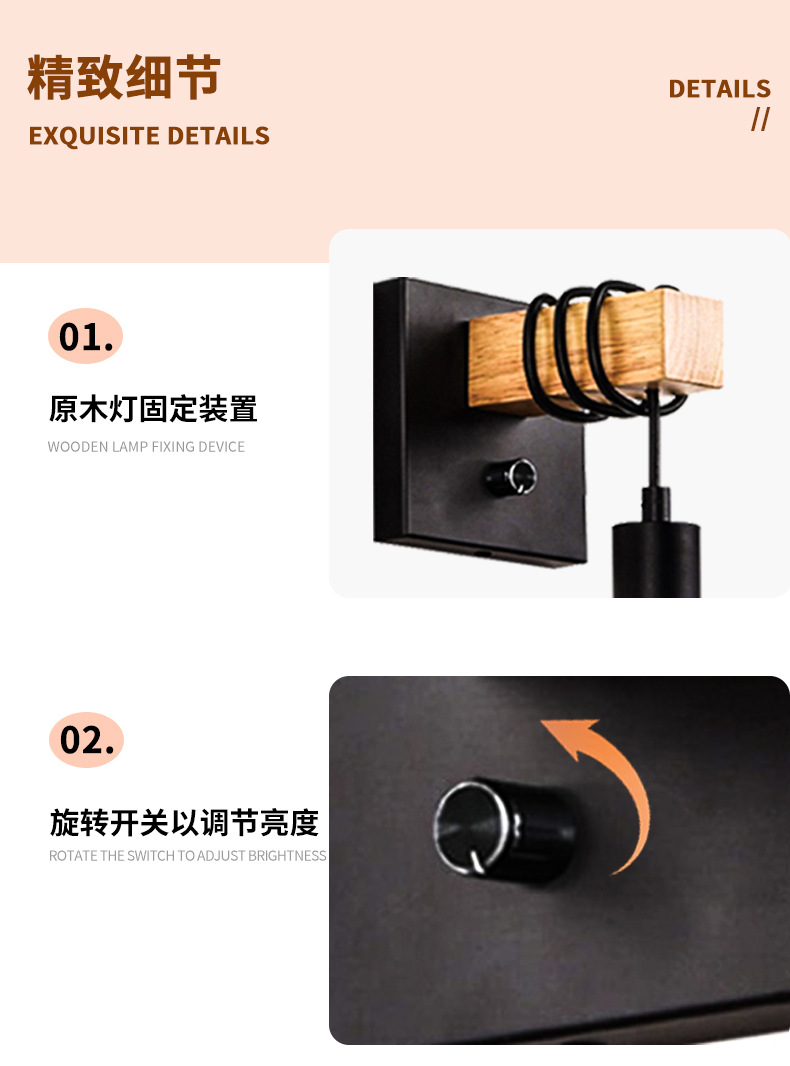 국경 간 복고풍 나무 예술 침실 통로 현관 벽 램프스토어 가기