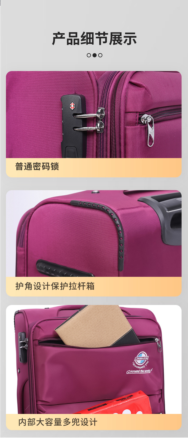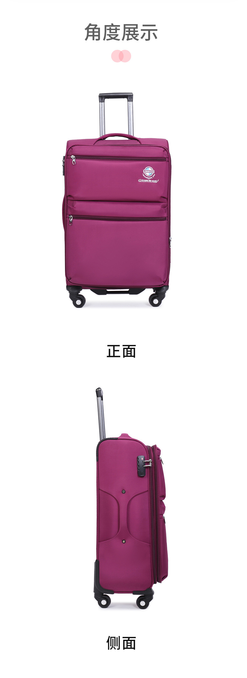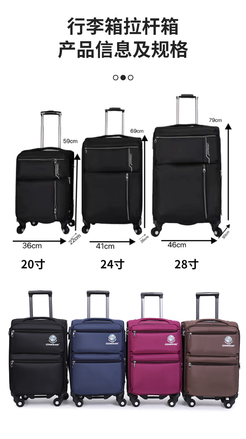 옥스포드 천 비즈니스 트롤리 케이스 대용량 전면 지퍼 업그레이드 여행 가방 국경 범용 휠 수하물 도매스토어 가기
