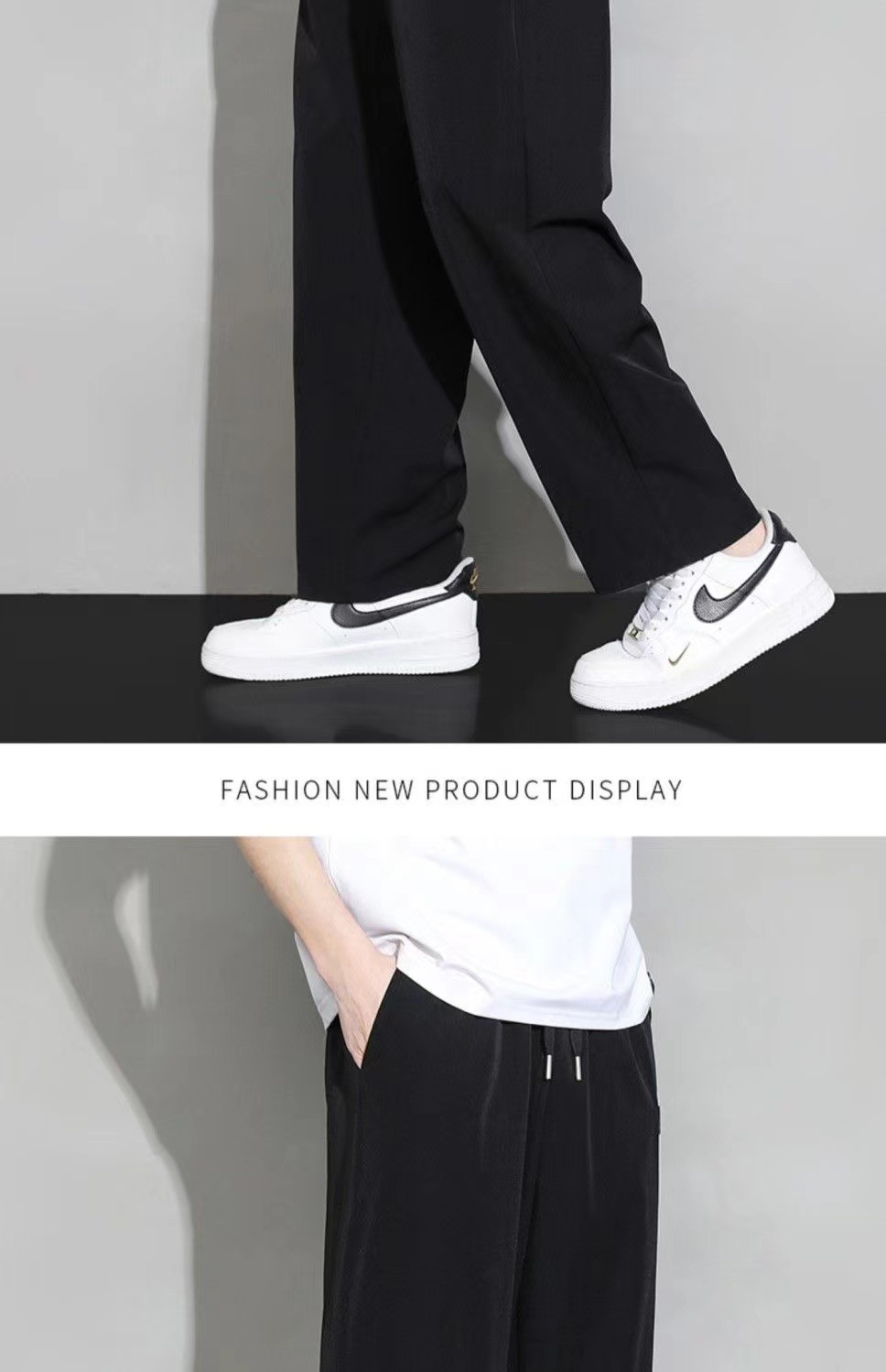여름 아이스 실크 스트레이트 바지 남자의 얇은 유행 브랜드 랩 느슨한 넓은 다리 빠른 건조 스포츠 캐주얼 바지스토어 가기