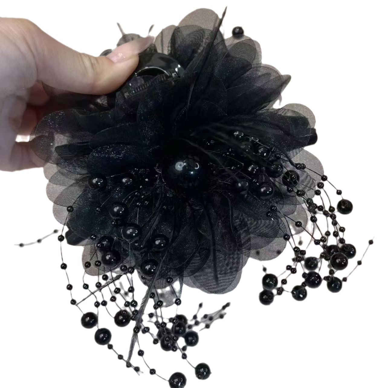 모란꽃 깃털 머리핀, 대형 집게핀, 헤어 볼륨 증대, 넓은 테두리, 높은 두피 라인, 가을 겨울 신상, 우아하고 다재다능한 샤크클립