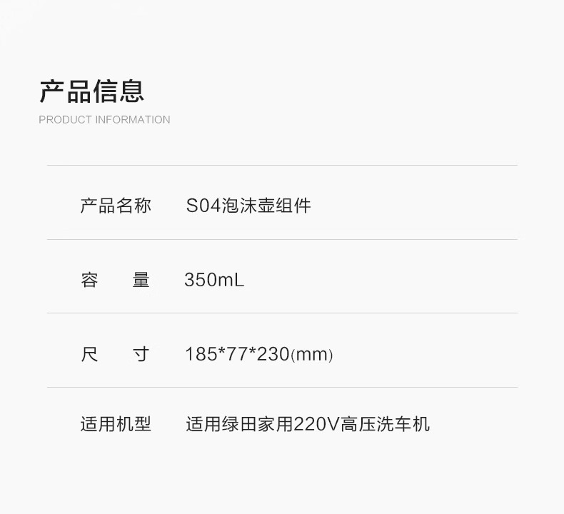 • 가정용 기계 350ml 조정 가능한 고압 폼 포트 S04