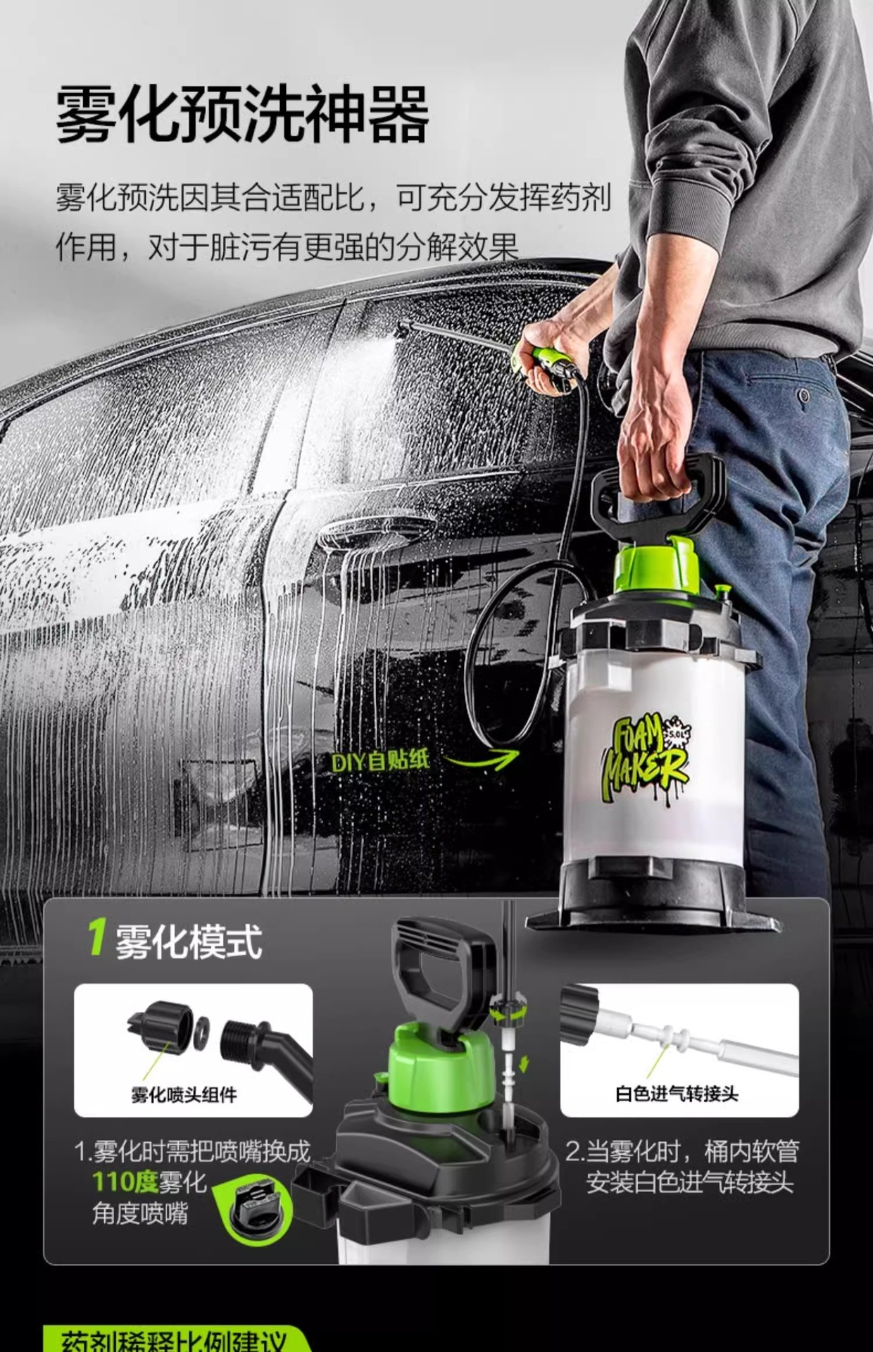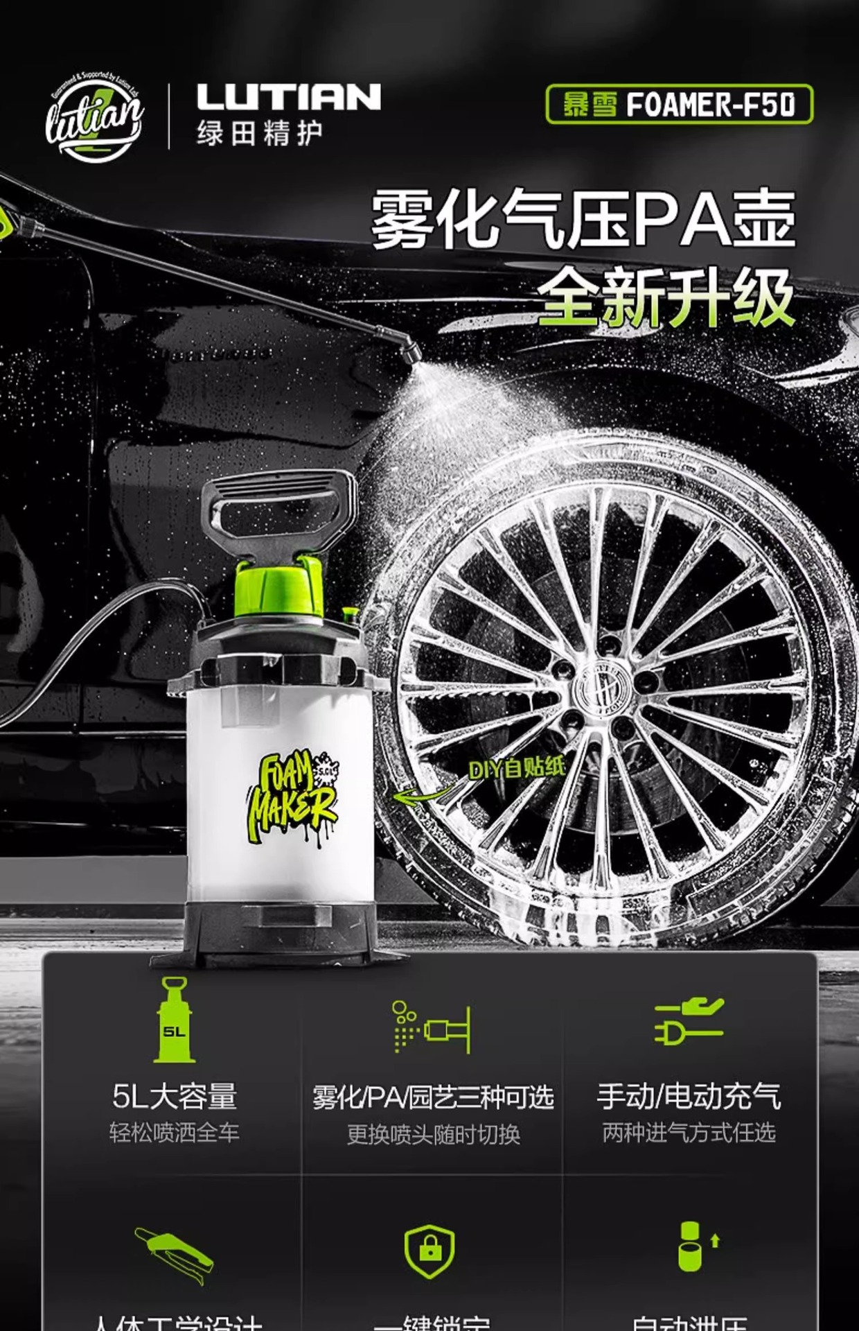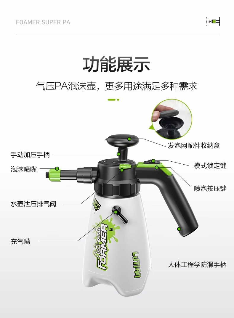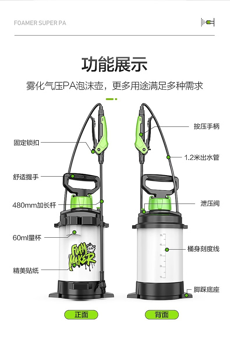 그린필드 pa팟 스노우건팟 스테인리스 스틸 SPA 소형 그린팟 세차기 폼 스프레이팟 분무기 고압 세차용