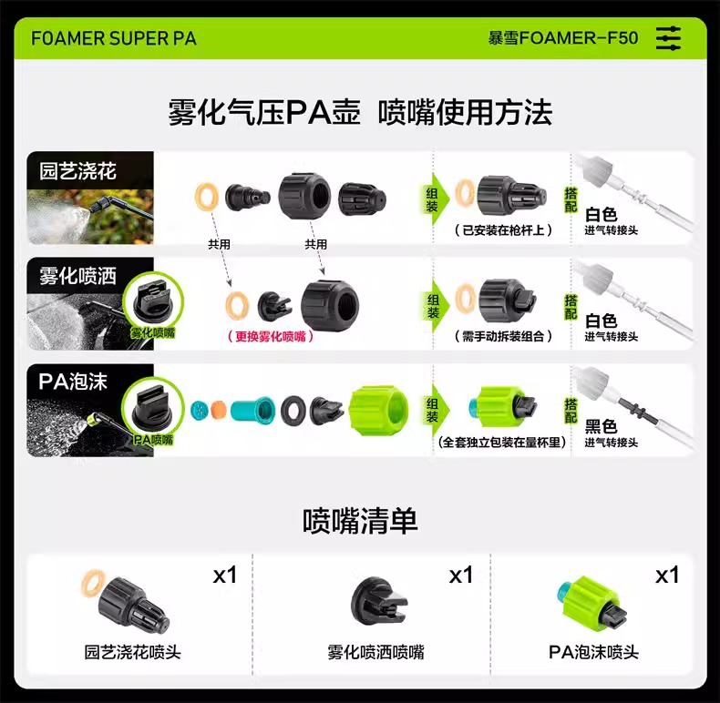 • 눈 내리는 손 압력 주전자 분무 노즐 + 흰색 공기 흡입구 커넥터