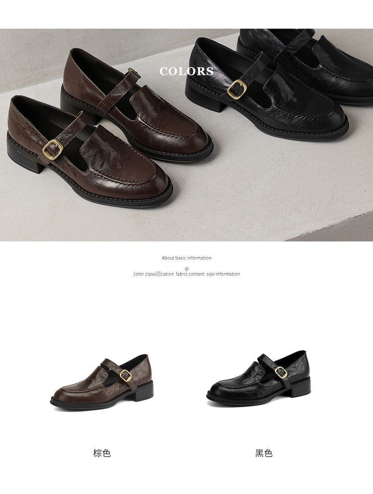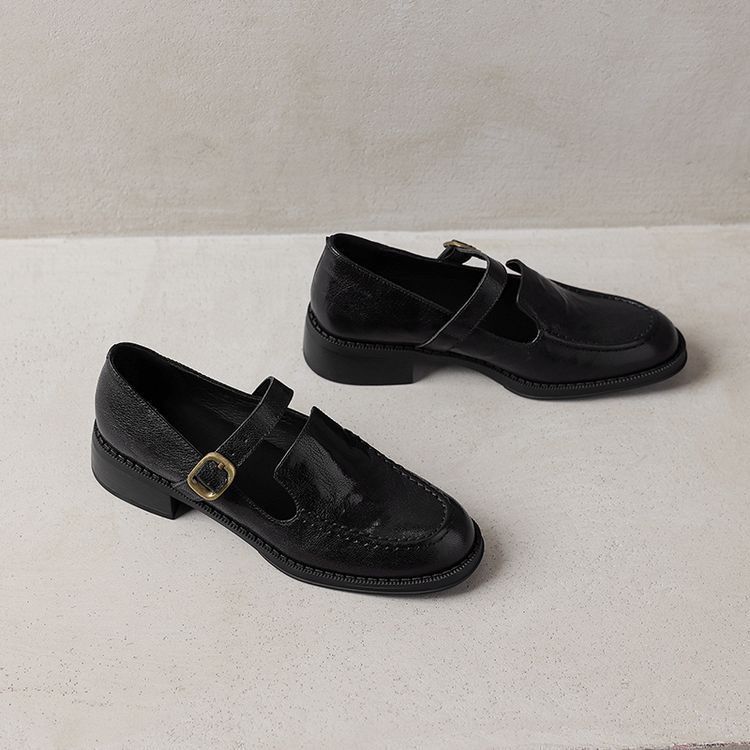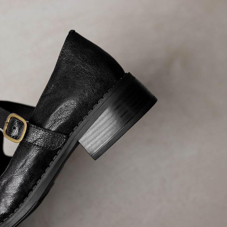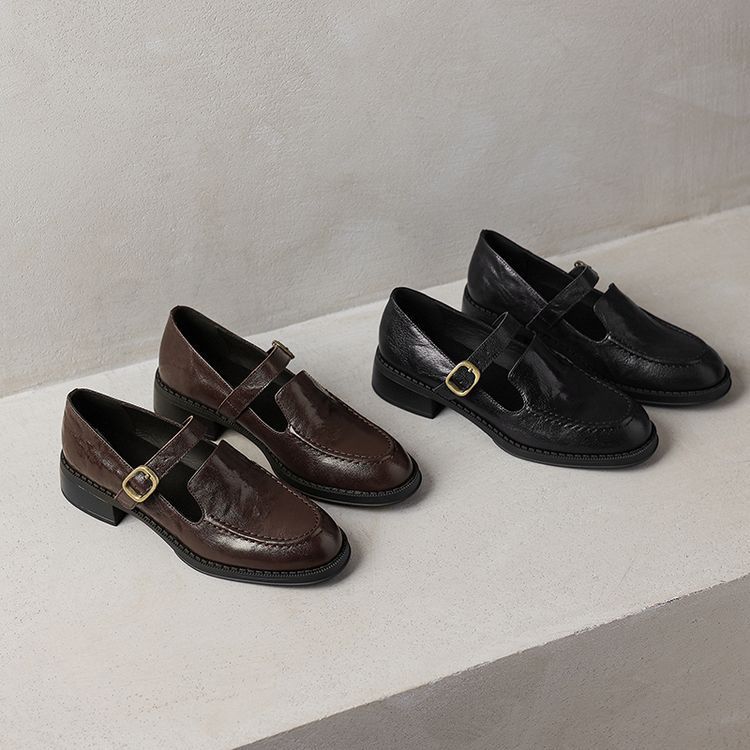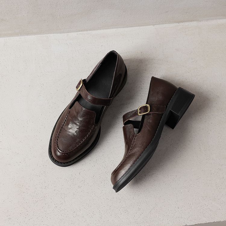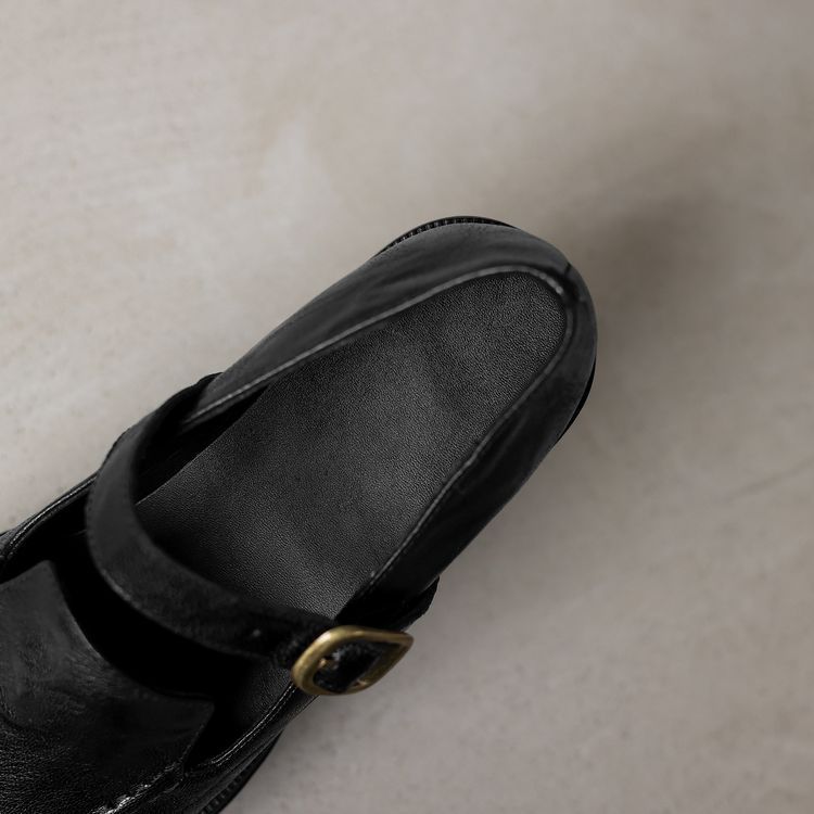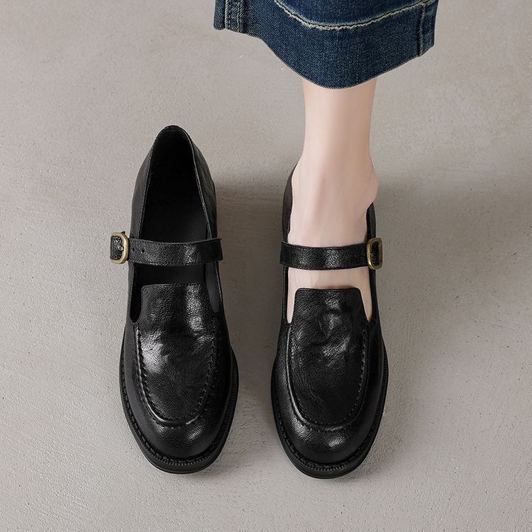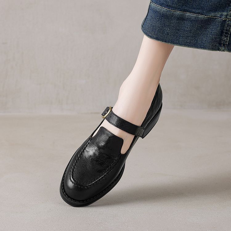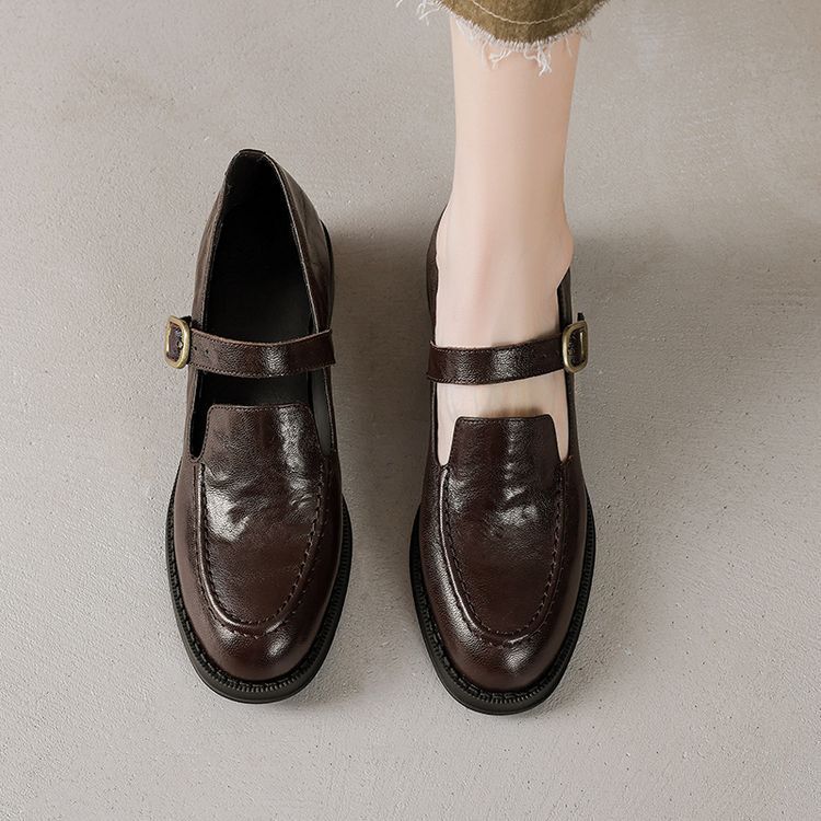 2025 봄 새로운 레트로 양가죽 미들 힐 아카데미 스타일 작은 가죽 신발 한 단어 버클 벨트 두꺼운 힐 싱글 레이어 신발 패션 여성 신발스토어 가기