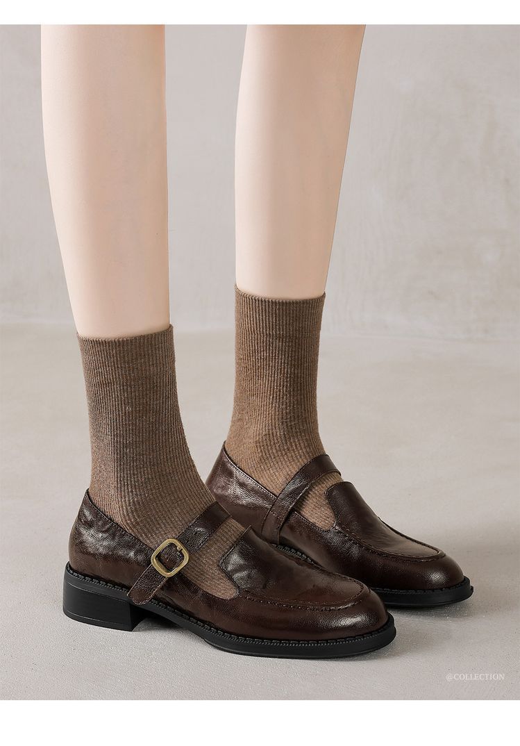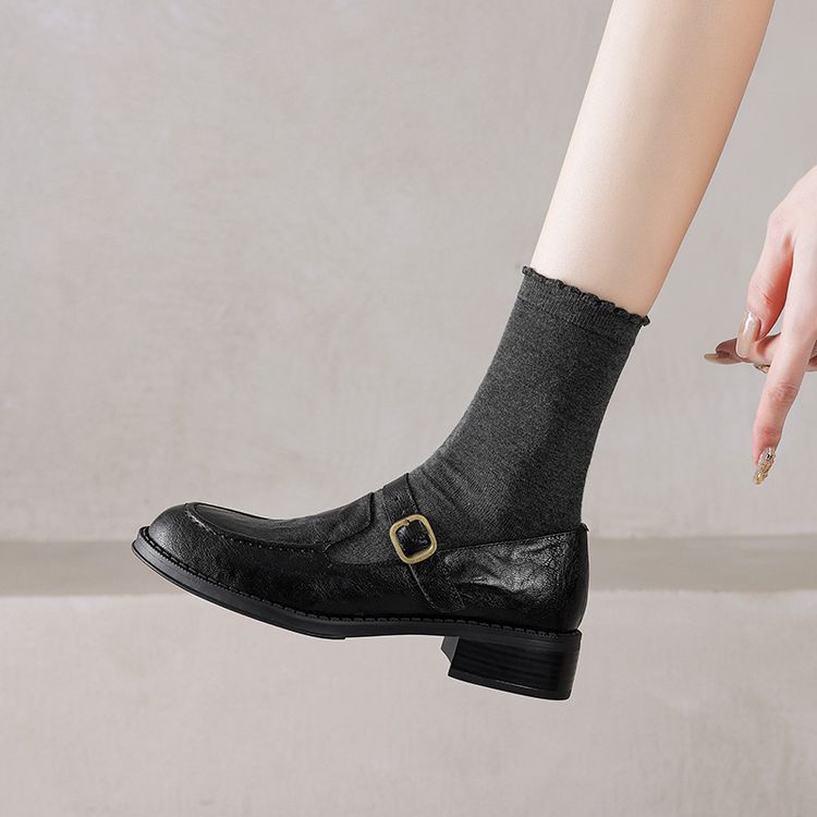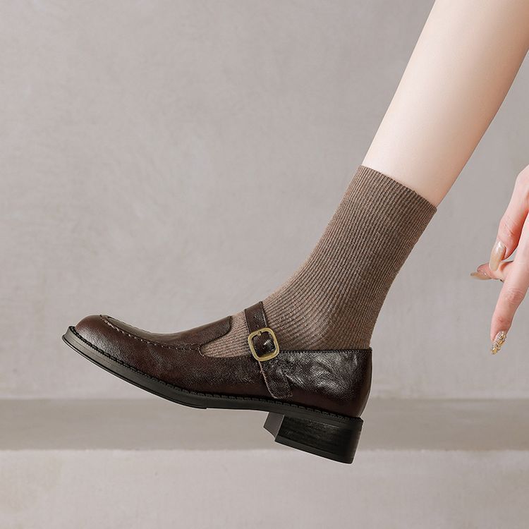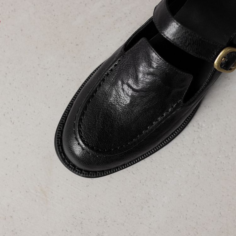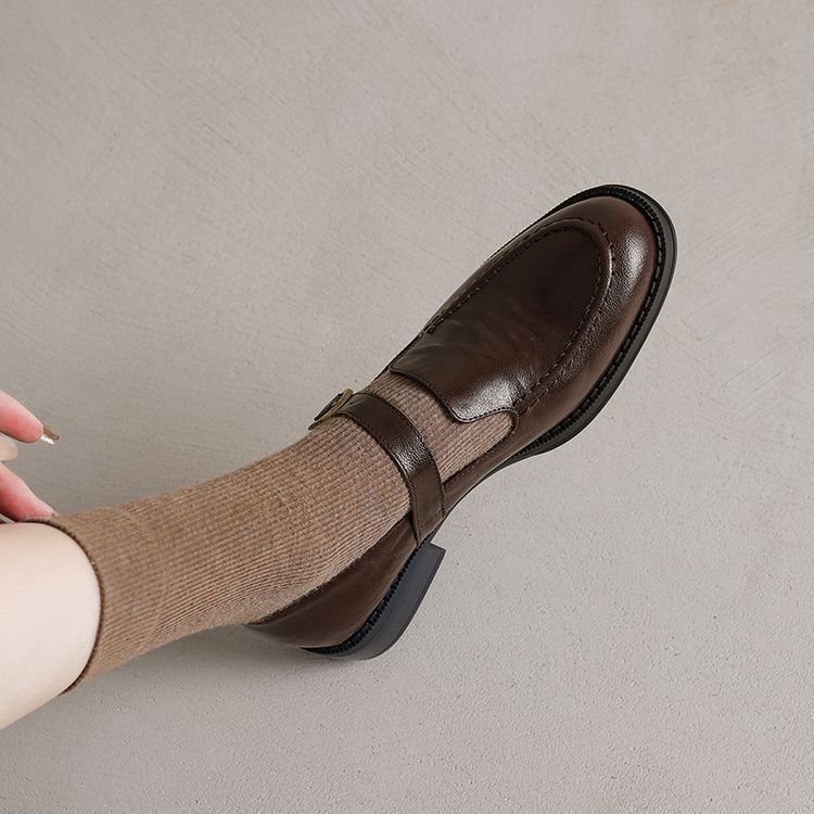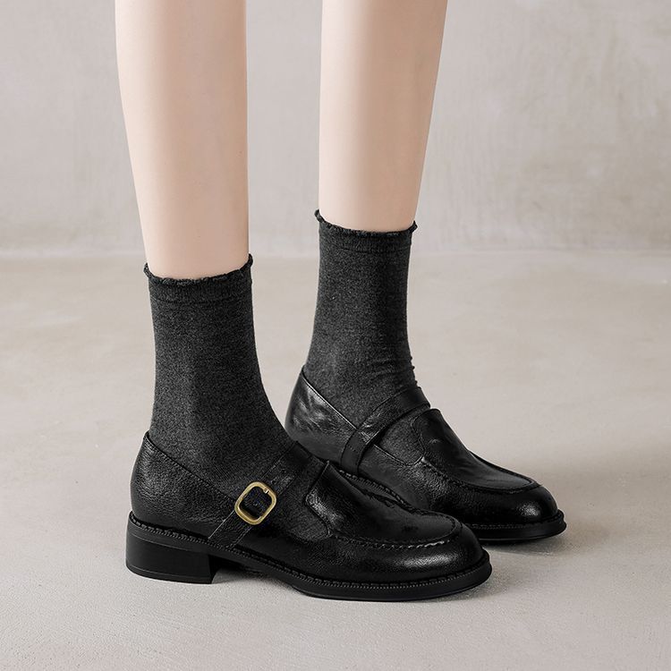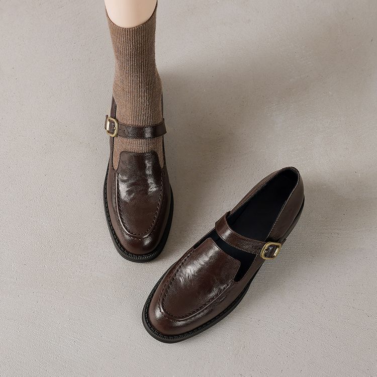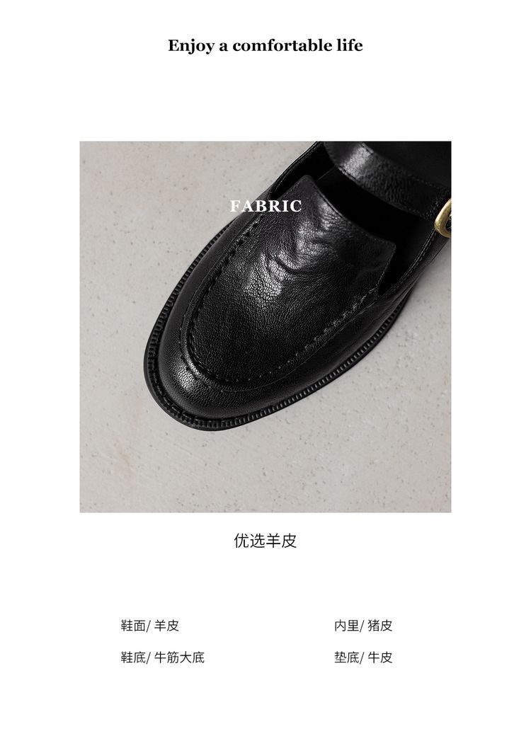 2025 봄 새로운 레트로 양가죽 미들 힐 아카데미 스타일 작은 가죽 신발 한 단어 버클 벨트 두꺼운 힐 싱글 레이어 신발 패션 여성 신발스토어 가기