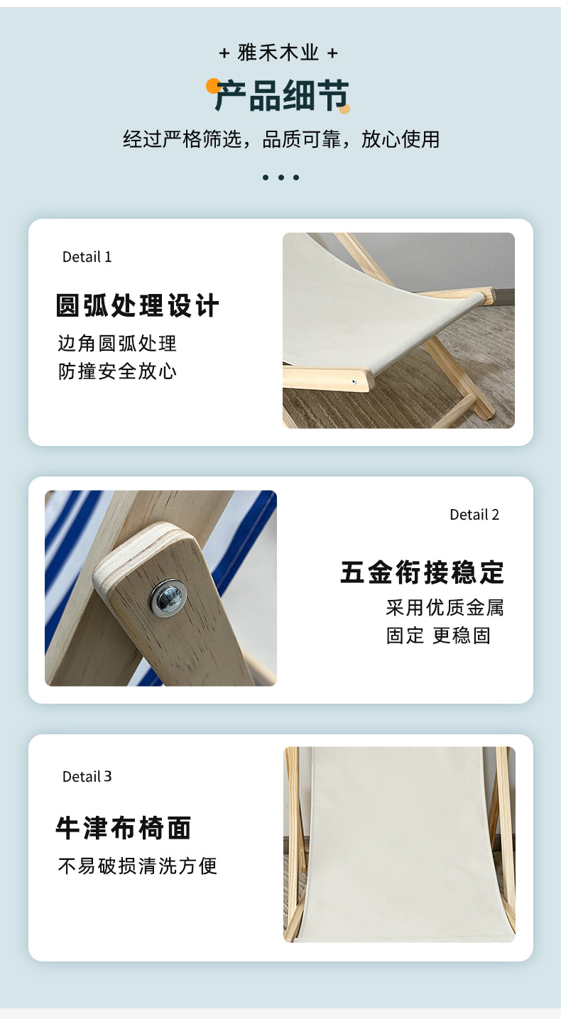 단단한 나무 해변 의자 조정 가능한 접이식 의자 점심 의자 나무 레저 의자 발코니 의자 캠핑