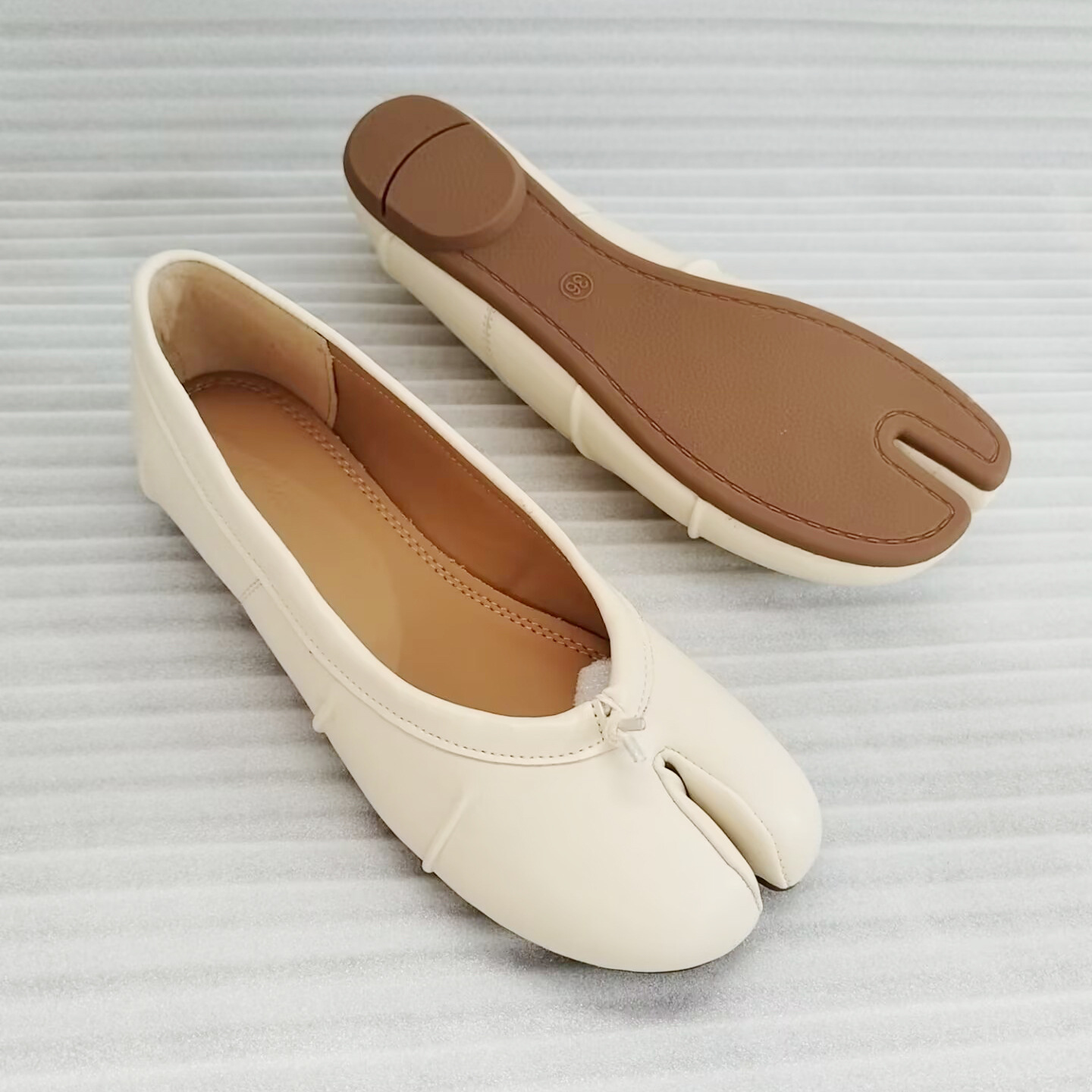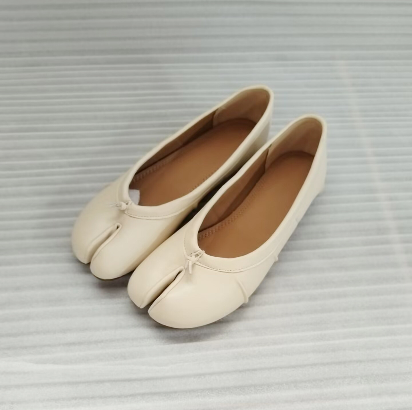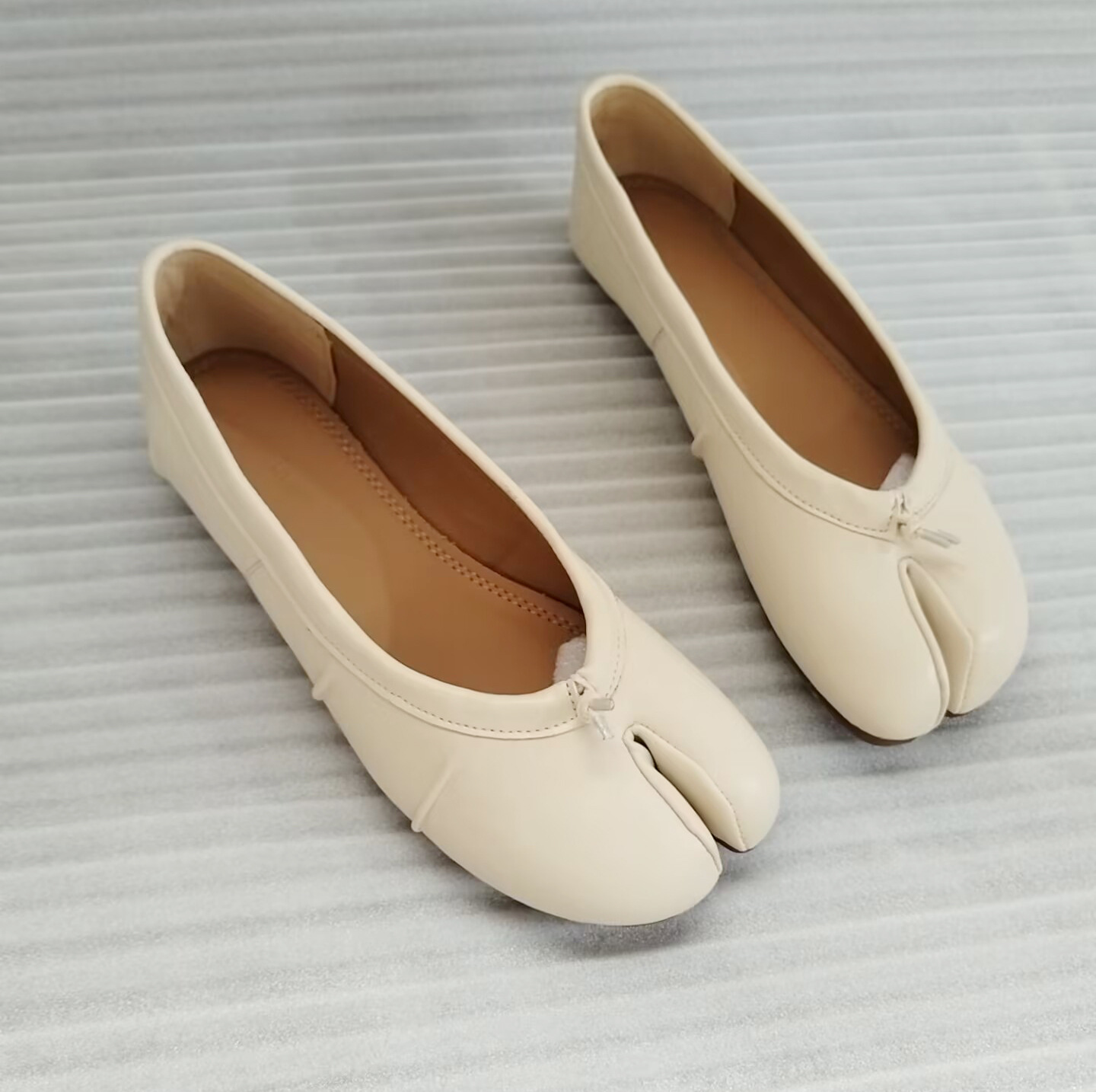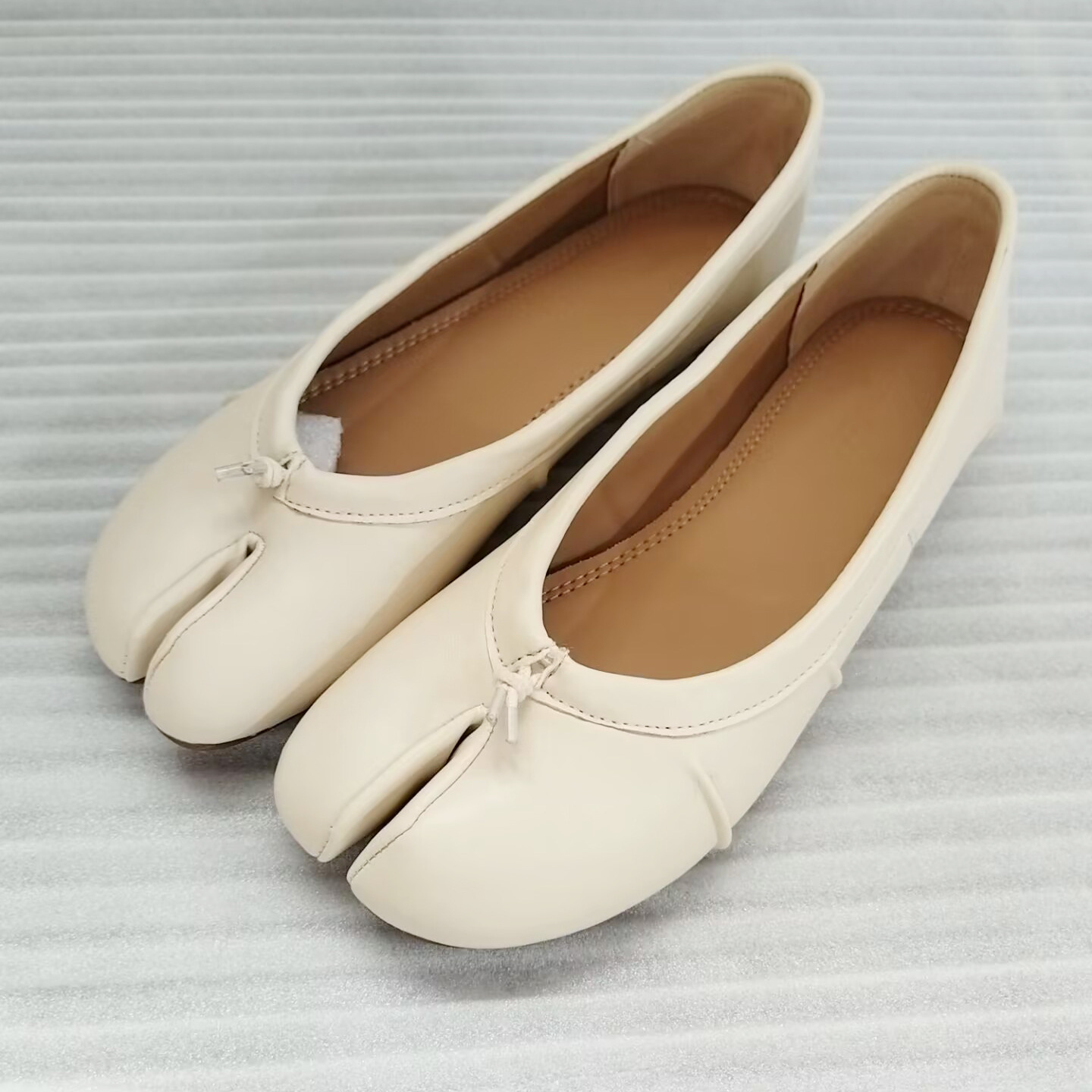 타비 스플릿 발가락 신발 여성 2024 새로운 틈새 주름 플랫 발레 신발 얕은 입 1 페달 신발