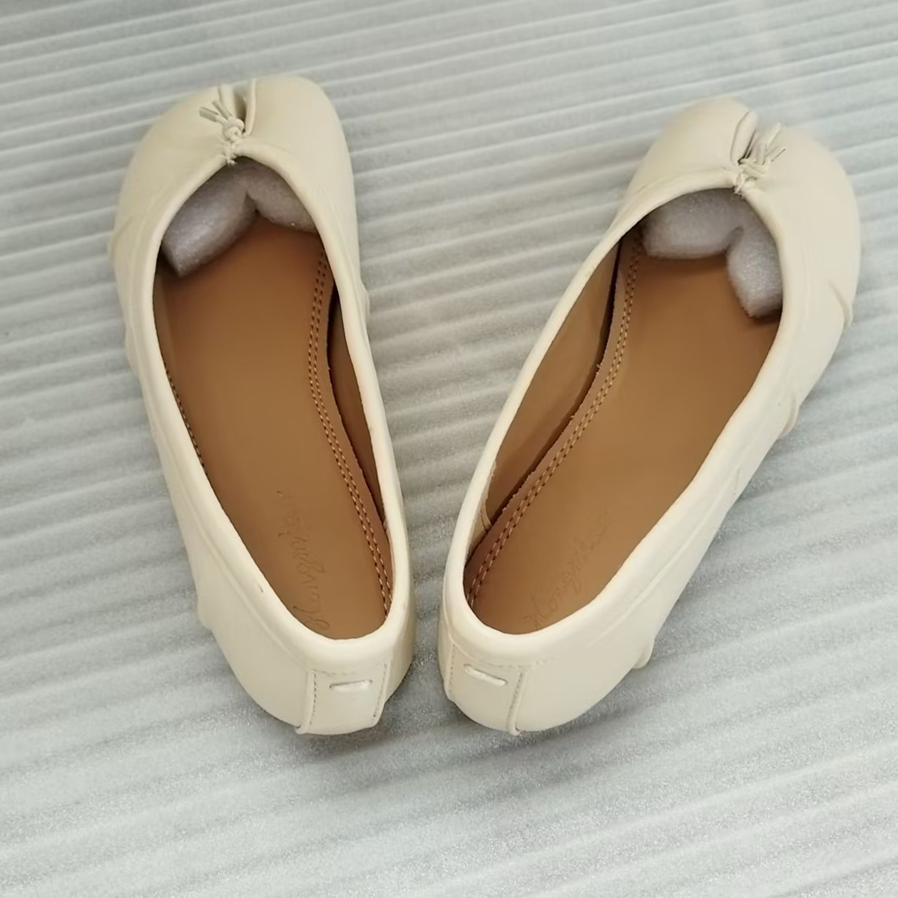 타비 스플릿 발가락 신발 여성 2024 새로운 틈새 주름 플랫 발레 신발 얕은 입 1 페달 신발스토어 가기