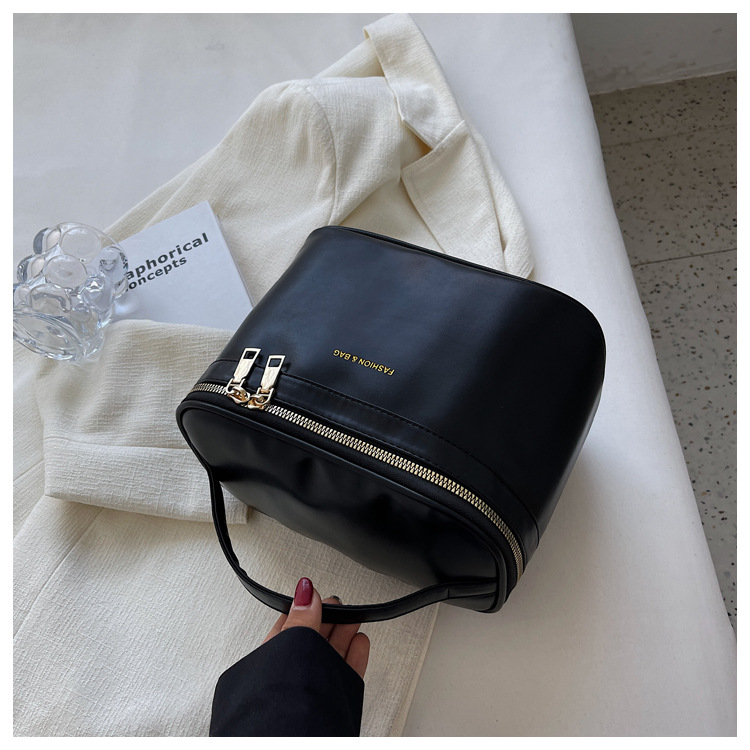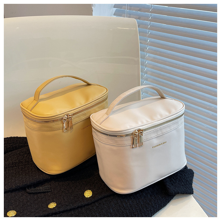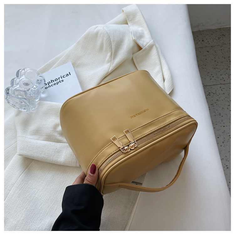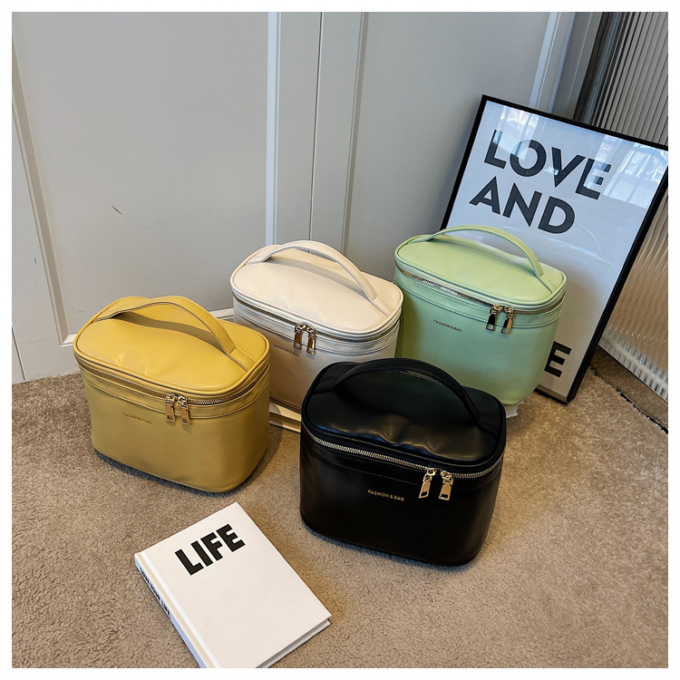 새로운 솔리드 컬러 인쇄 화장품 가방 워시 백 대용량 휴대용 레이어 파티션 여행 화장품 보관 가방
