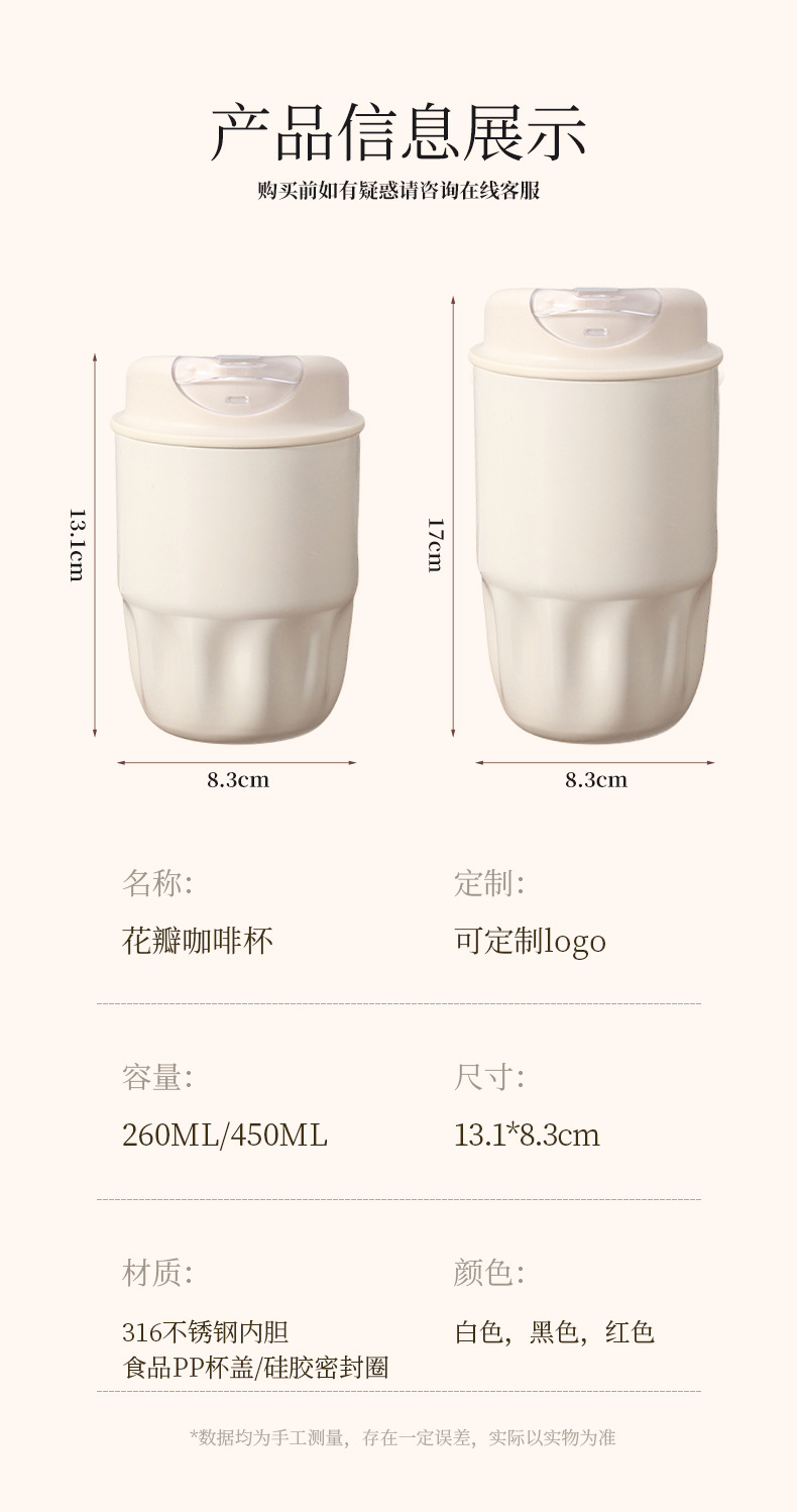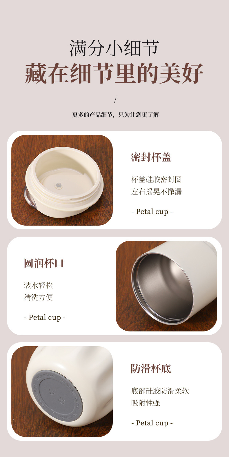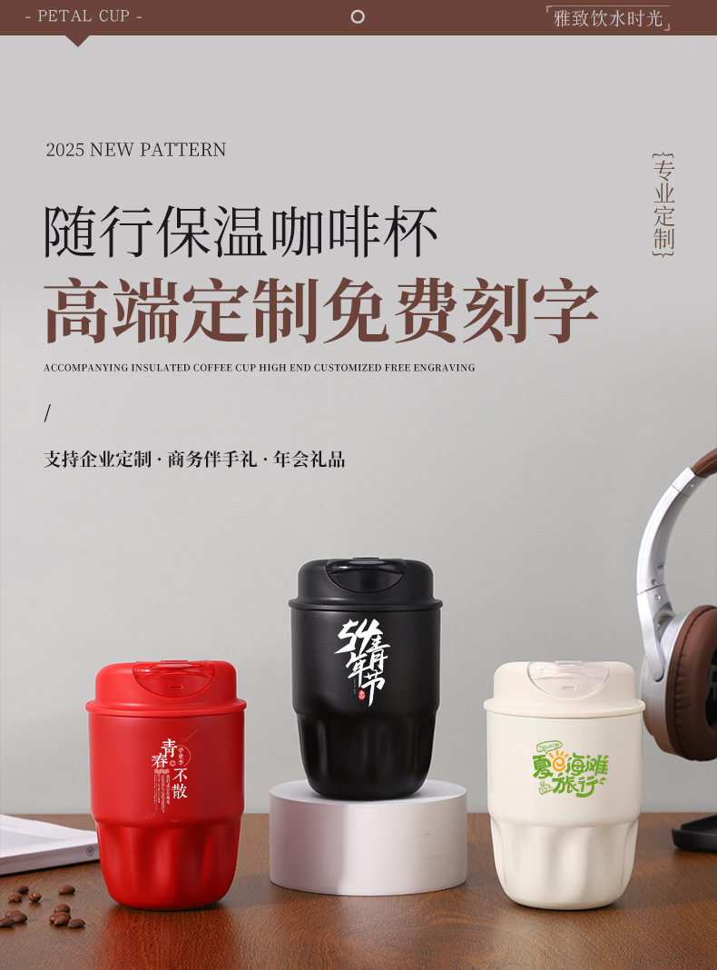 316 스테인리스 꽃잎 커피컵 학생 보온컵 고급스러운 물컵 남녀 공용 차량용 물컵 선물컵