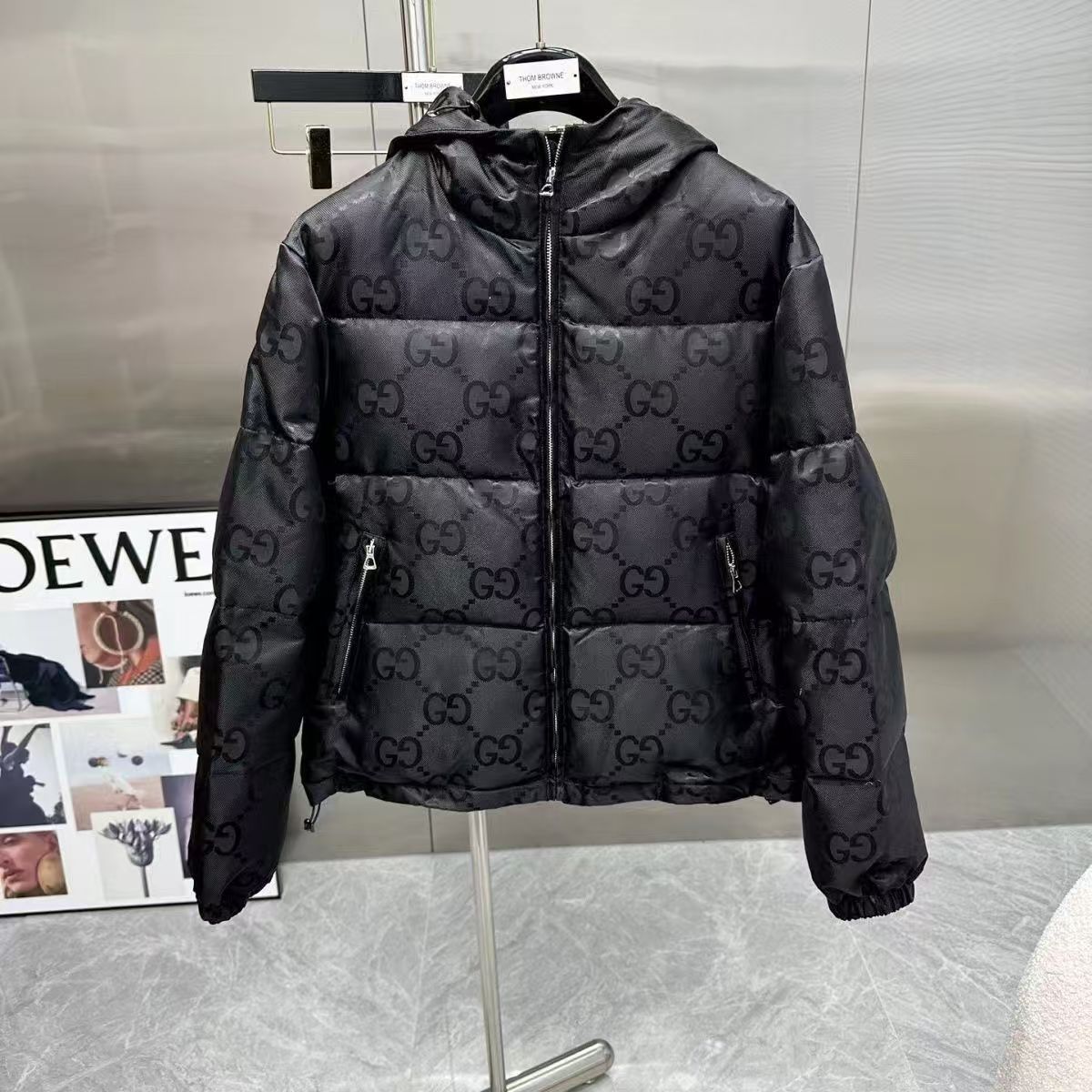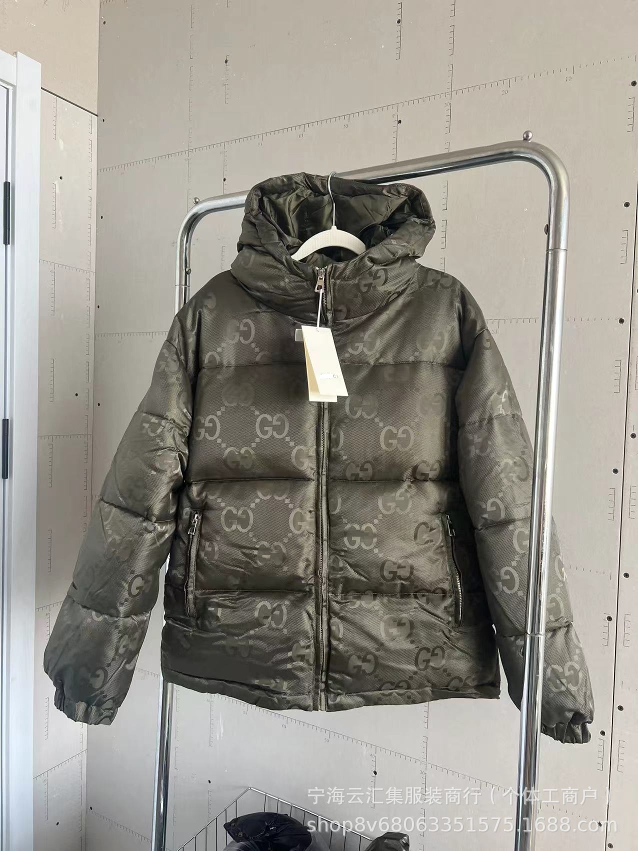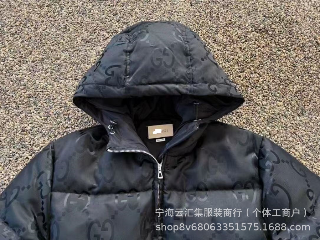 겨울 쿨치 트렌디 브랜드 올오버 다크 패턴 자카드 후드 코튼 재킷, 동일 스타일, 개성 넘치고 다재다능하며 따뜻한 남성용 코튼 재킷, 트렌디스토어 가기