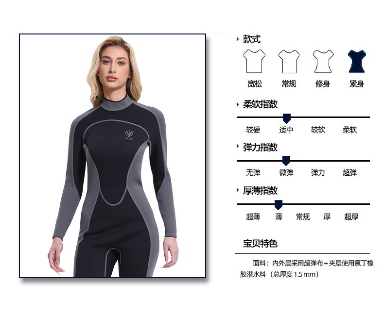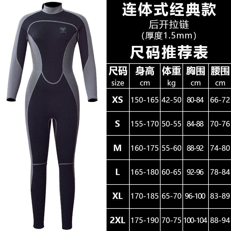 KLEYOU 다이빙 세트 1.5MM 리어 서핑 세트 한 몸 따뜻한 다이빙을 세트 여성의 방한 스노클링 겨울 수영