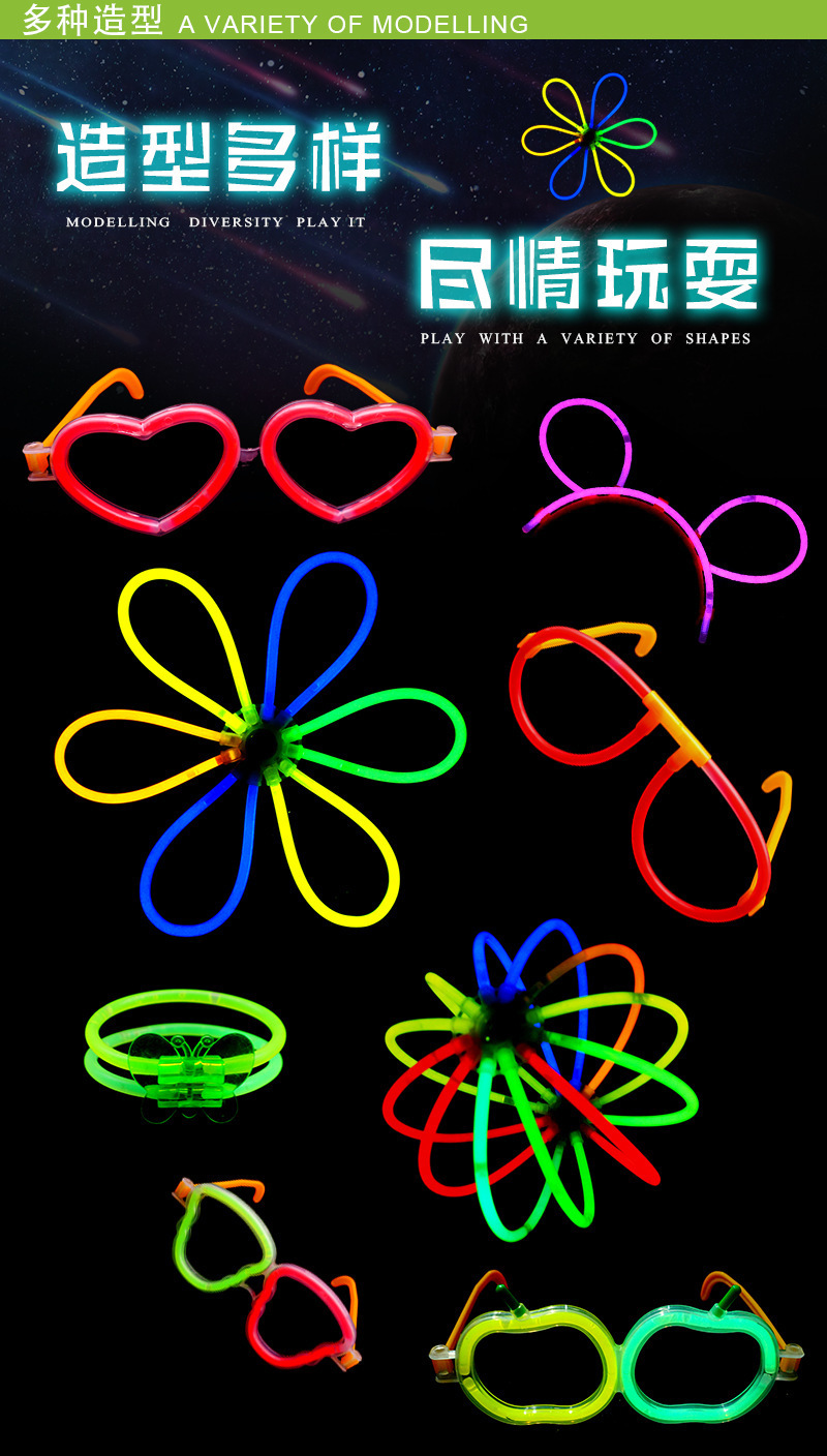 어린이를위한 형광 스틱 빛나는 팔찌 DIY 장난감 Douyin 부모-자식 형광 댄스 축제 파티 파티 야외 캠핑스토어 가기