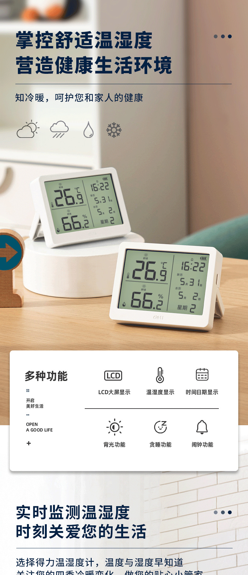델리 LE504-WH 전자 온도 및 습도 측정기 (흰색)(1 세트/상자 데이터 케이블 * 1)스토어 가기