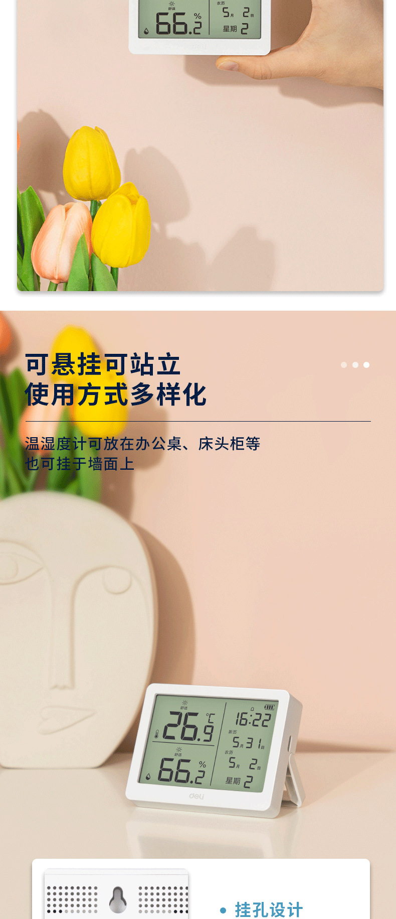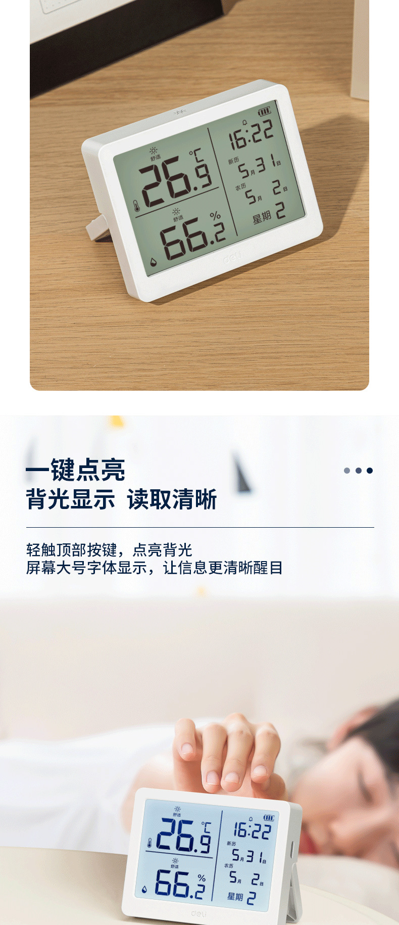 델리 LE504-WH 전자 온도 및 습도 측정기 (흰색)(1 세트/상자 데이터 케이블 * 1)