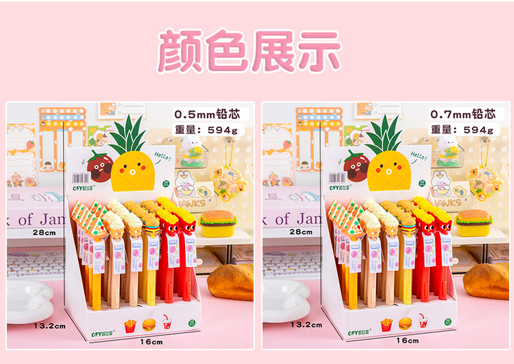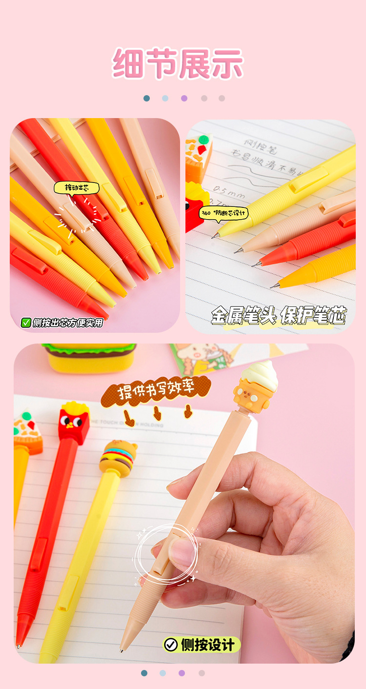 시뮬레이션 버거 자동 연필 연속 코어 귀여운 측면 프레스 연필 초등학생 0.5/0.7mmHB 샤프 펜슬스토어 가기
