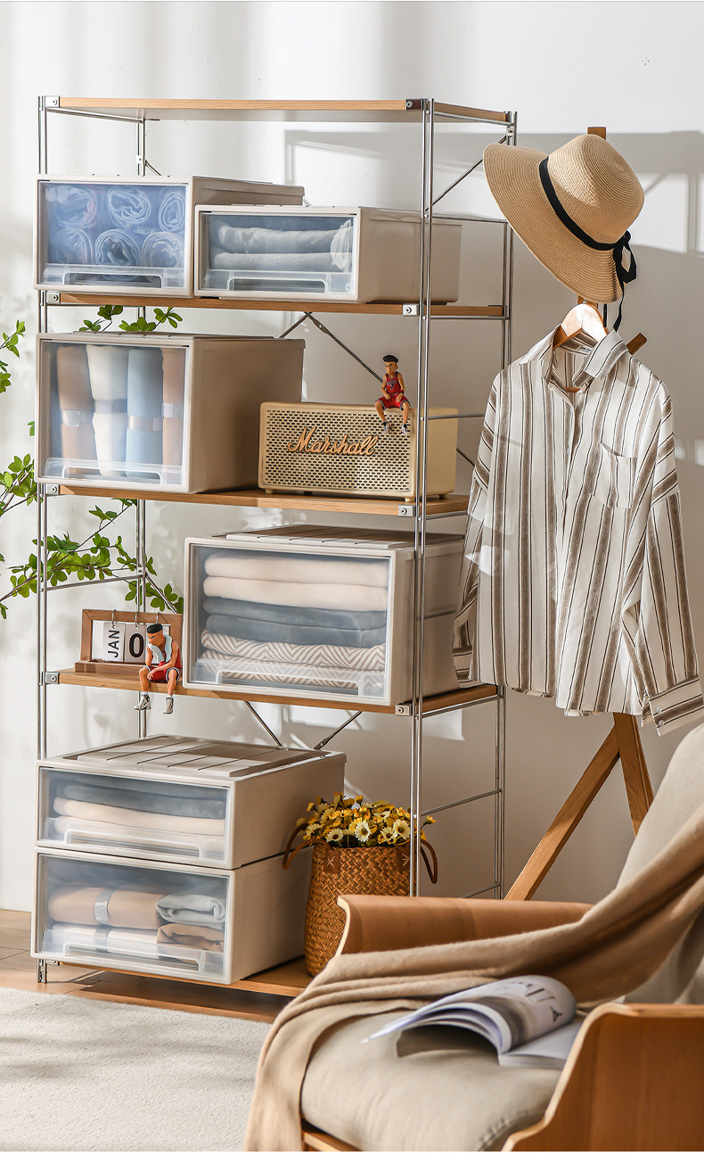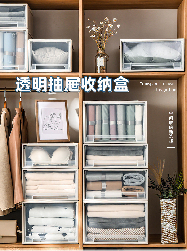 서랍 유형 저장 상자 옷장 의류 주최자 의류 저장 상자 가정용 투명한 플라스틱 저장 캐비닛 저장 상자