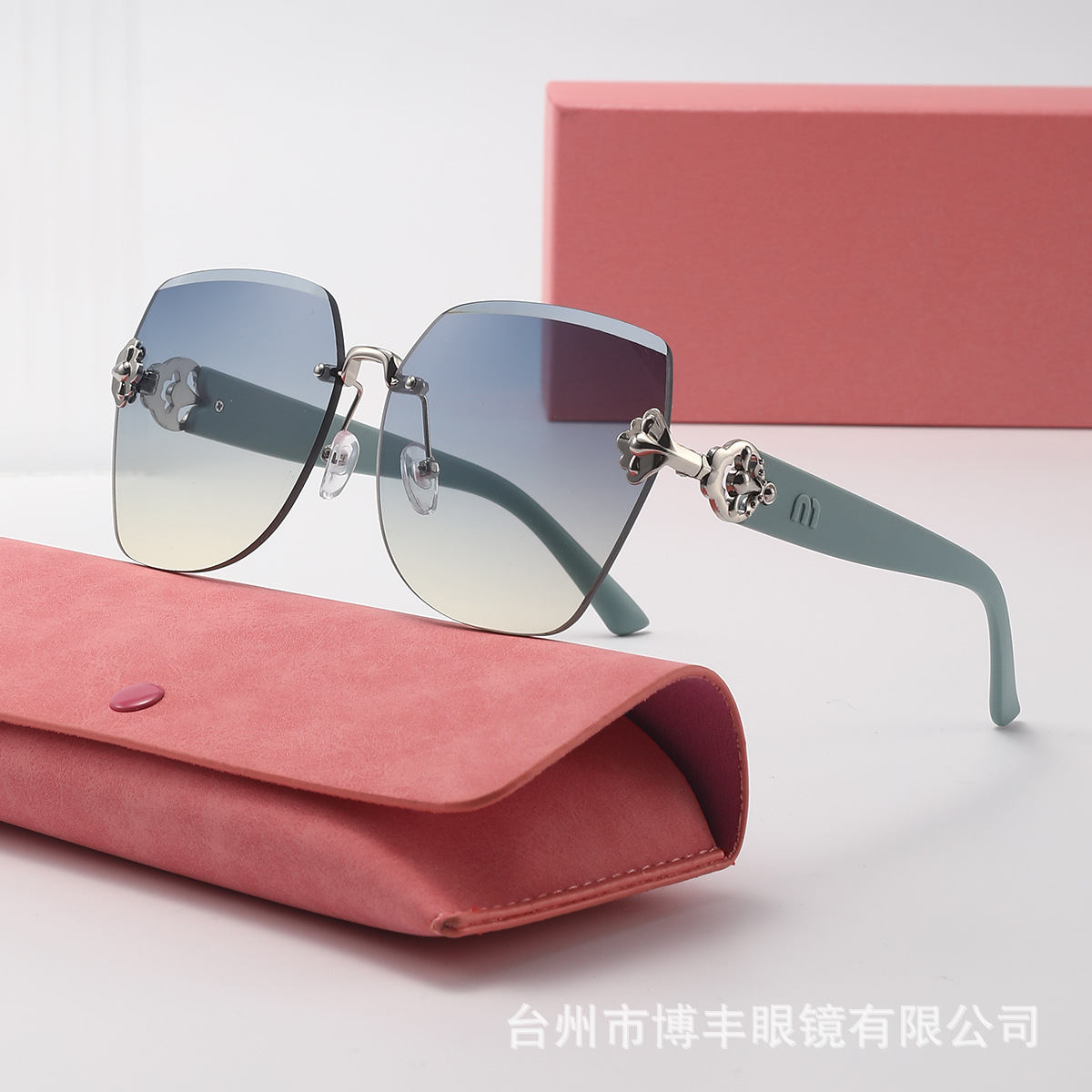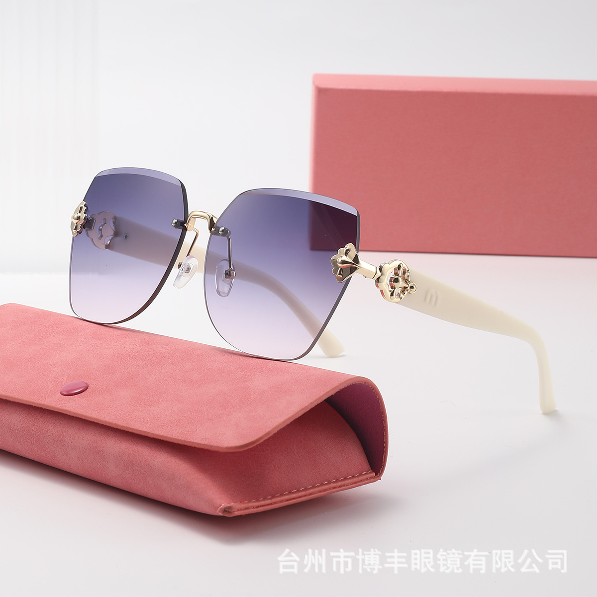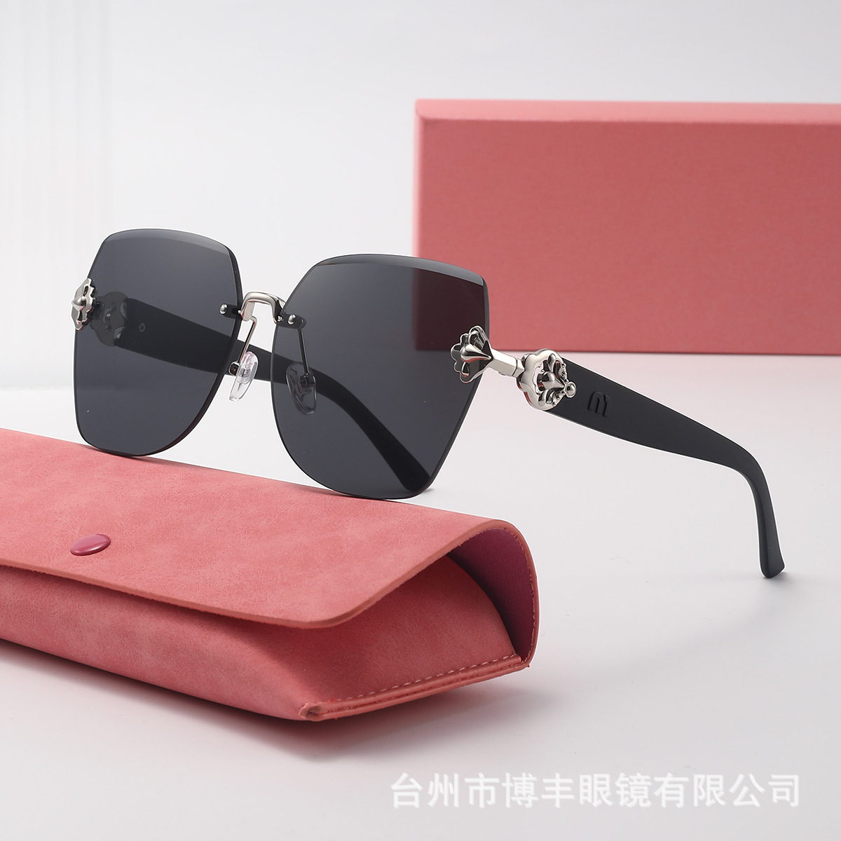 2026년 신형 대형 프레임 라이트 럭셔리 무테 패션 선글라스 여성용 자외선 차단 고급스러운 디자인 얼굴을 작아 보이게 하는 선글라스 도매