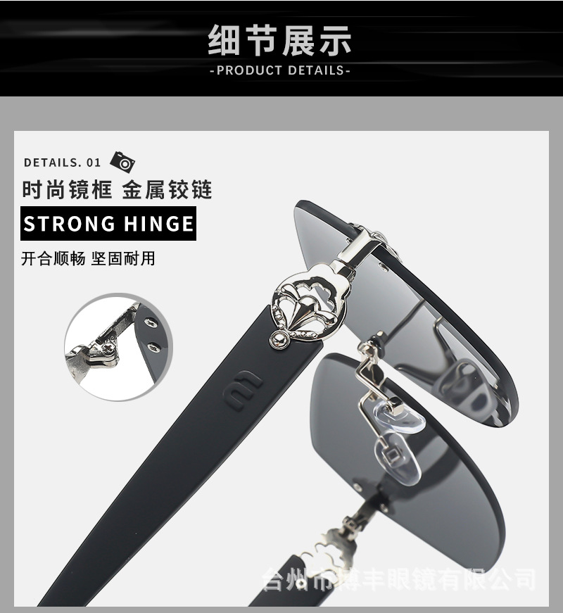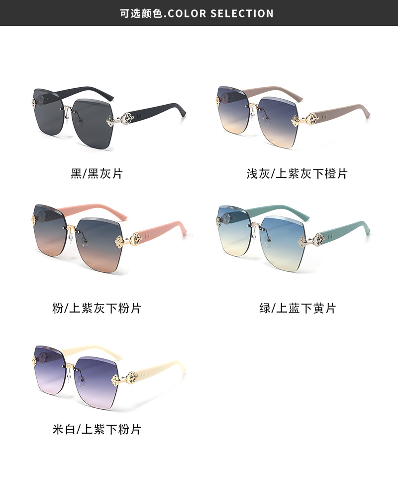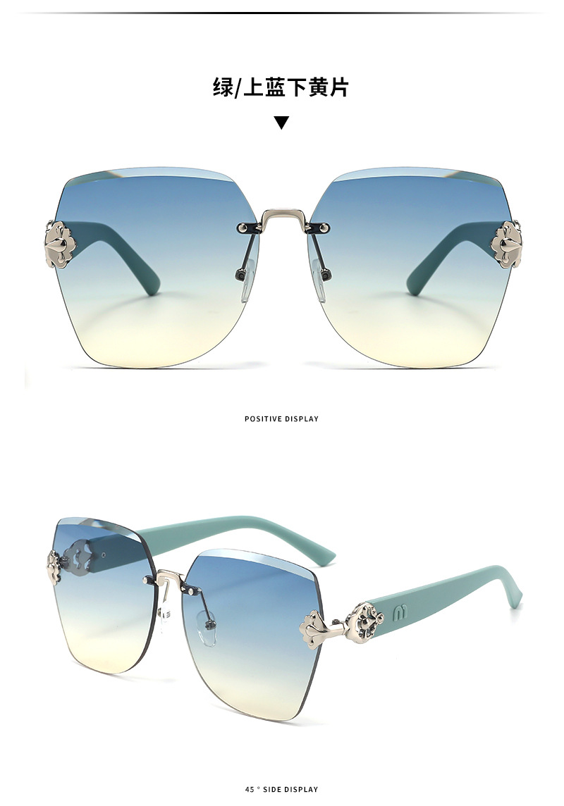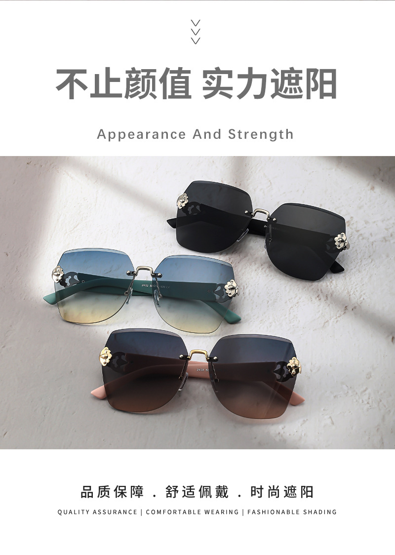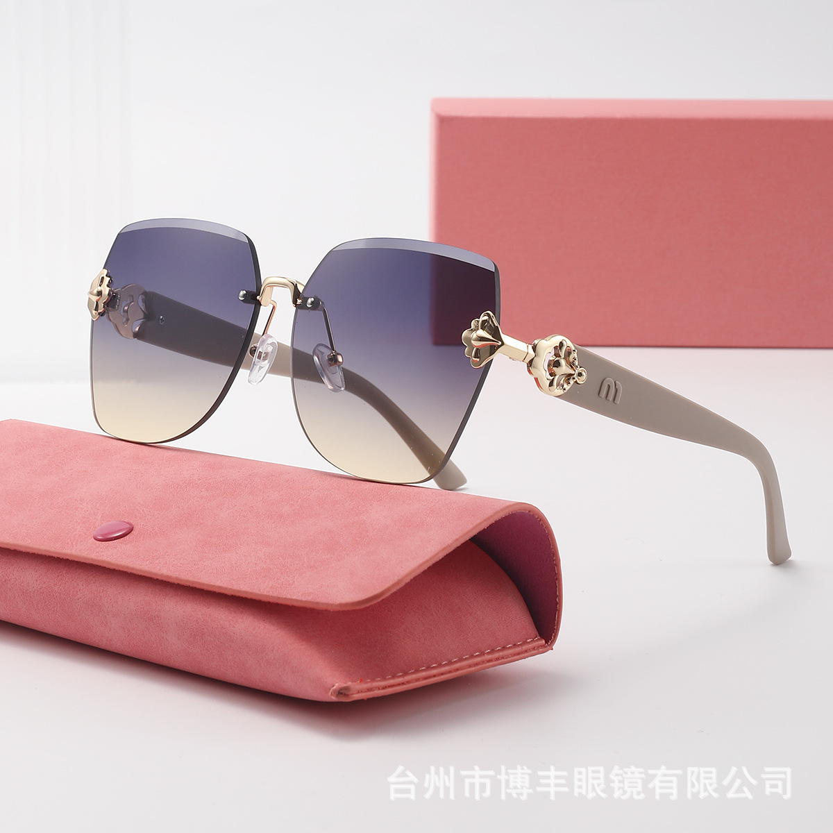 2026년 신형 대형 프레임 라이트 럭셔리 무테 패션 선글라스 여성용 자외선 차단 고급스러운 디자인 얼굴을 작아 보이게 하는 선글라스 도매