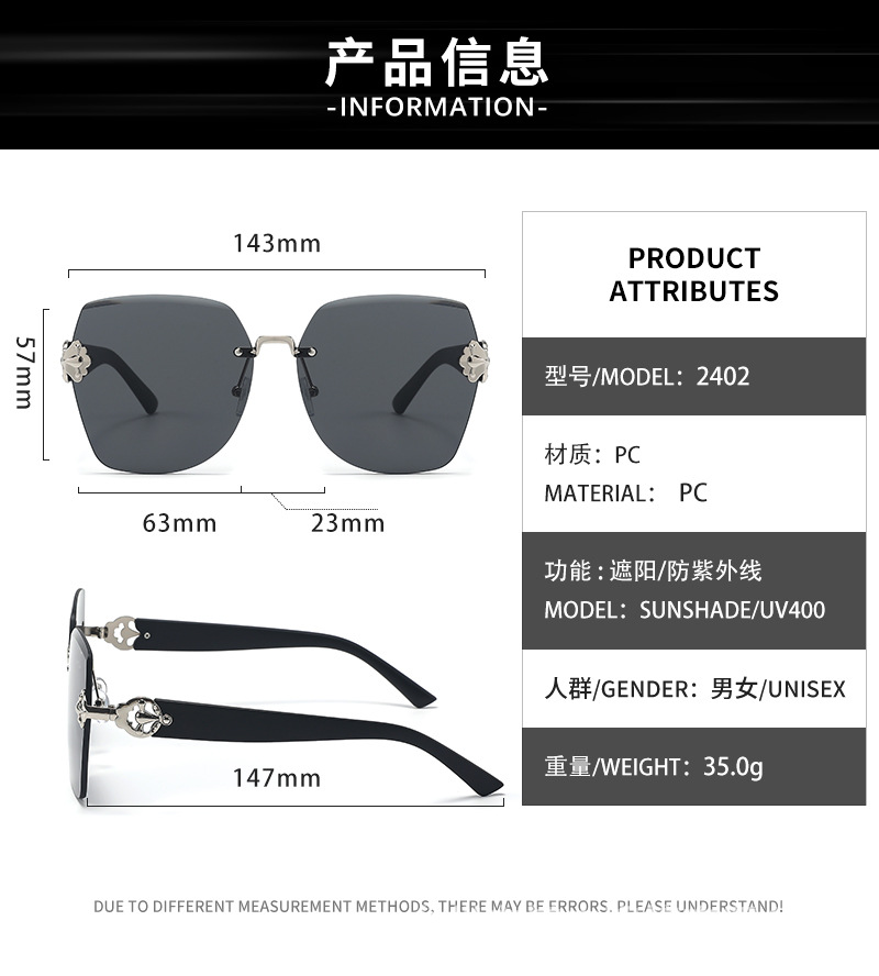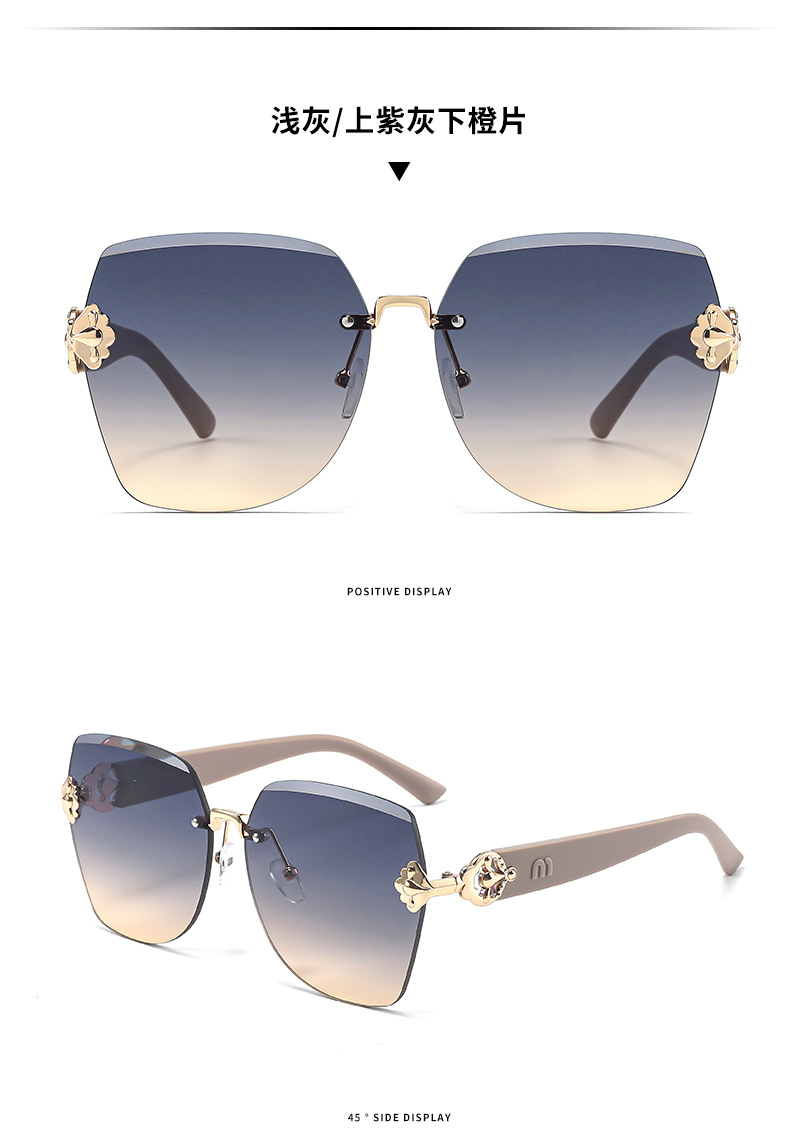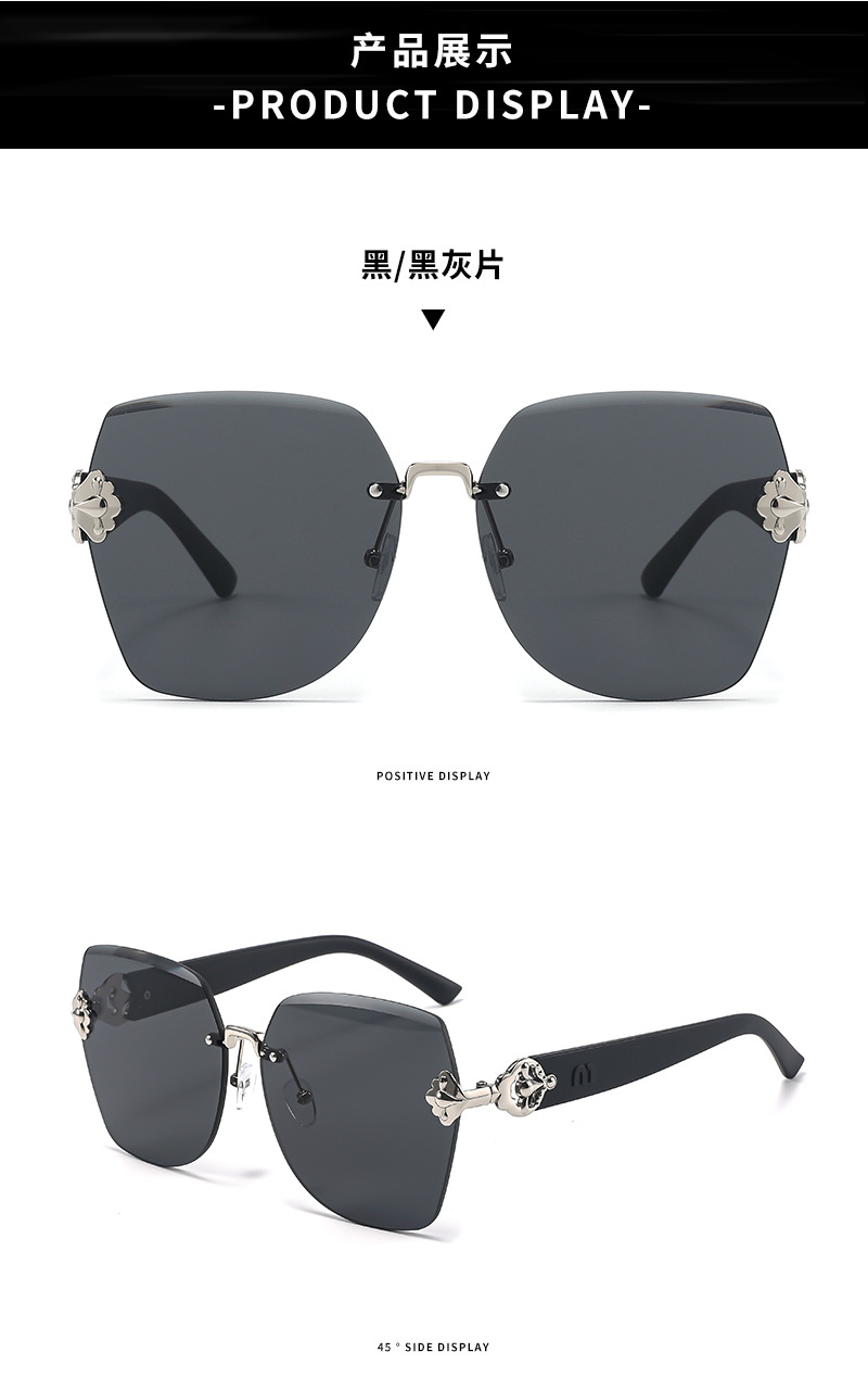 2026년 신형 대형 프레임 라이트 럭셔리 무테 패션 선글라스 여성용 자외선 차단 고급스러운 디자인 얼굴을 작아 보이게 하는 선글라스 도매스토어 가기