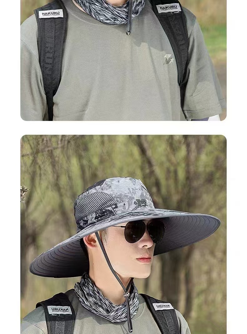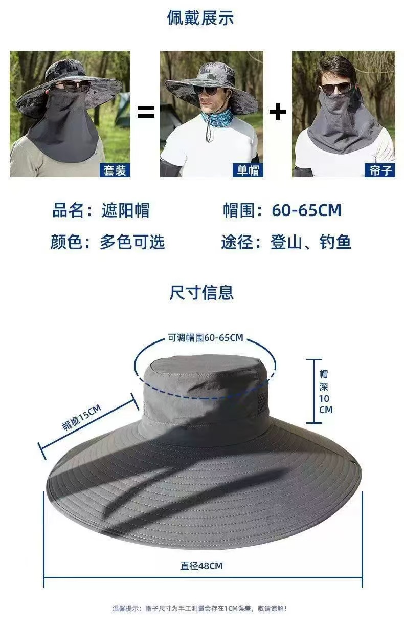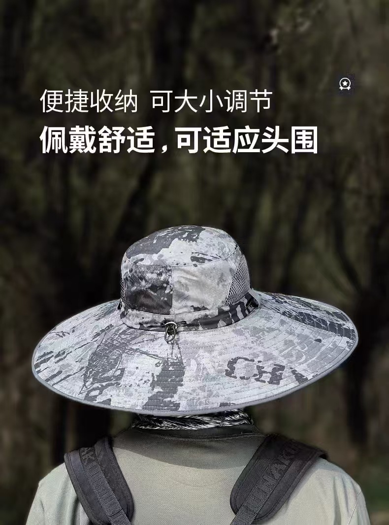 1987 여름 위장 15cm 확대 챙 태양 보호 낚시 등산 태양 모자 접이식 방수 남성과 여성 패션