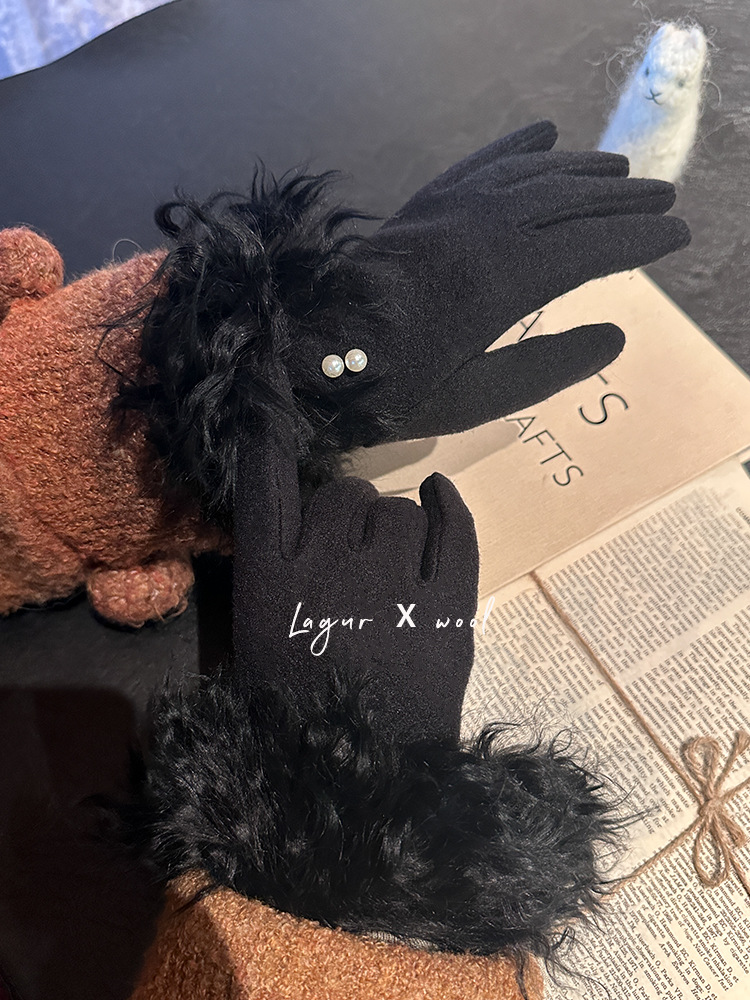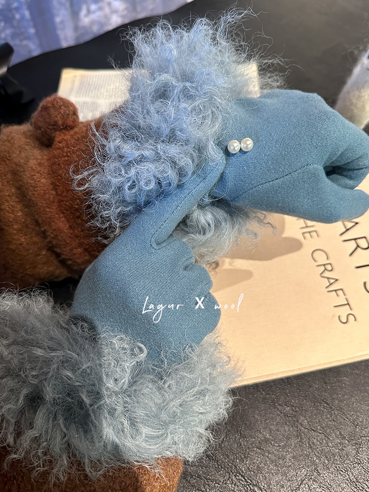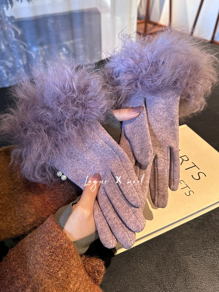 우유 맛 ~ 따뜻한 터치 스크린 여성의 겨울 운전을 기모 두껍게 "울 모피 장갑" 을 돌볼 필요가 없습니다.스토어 가기
