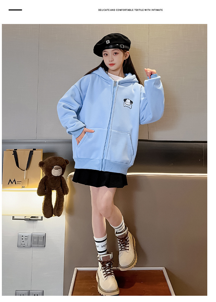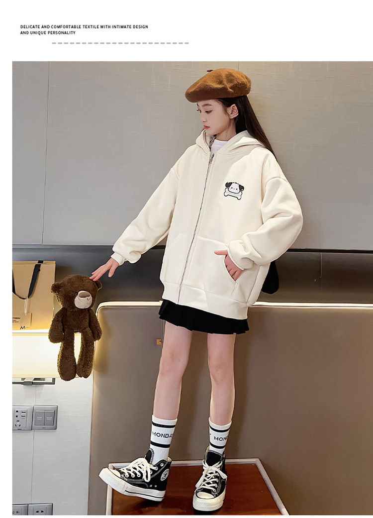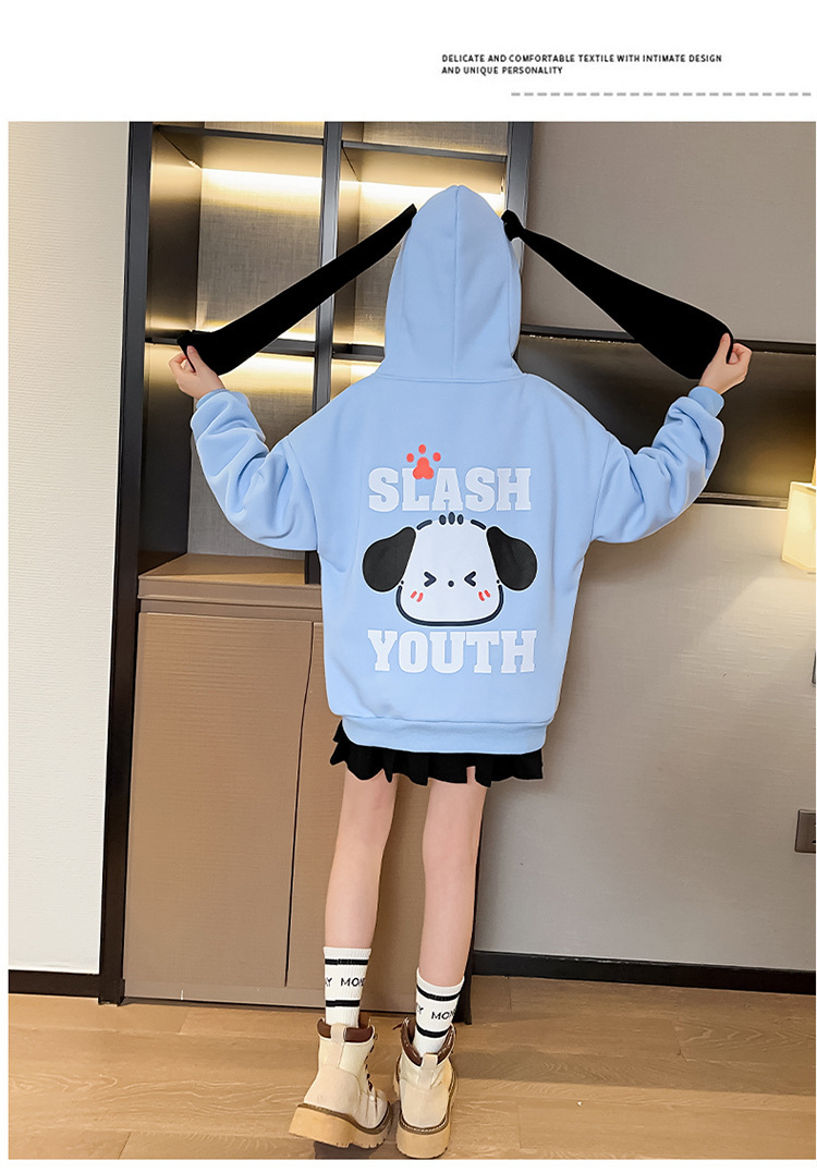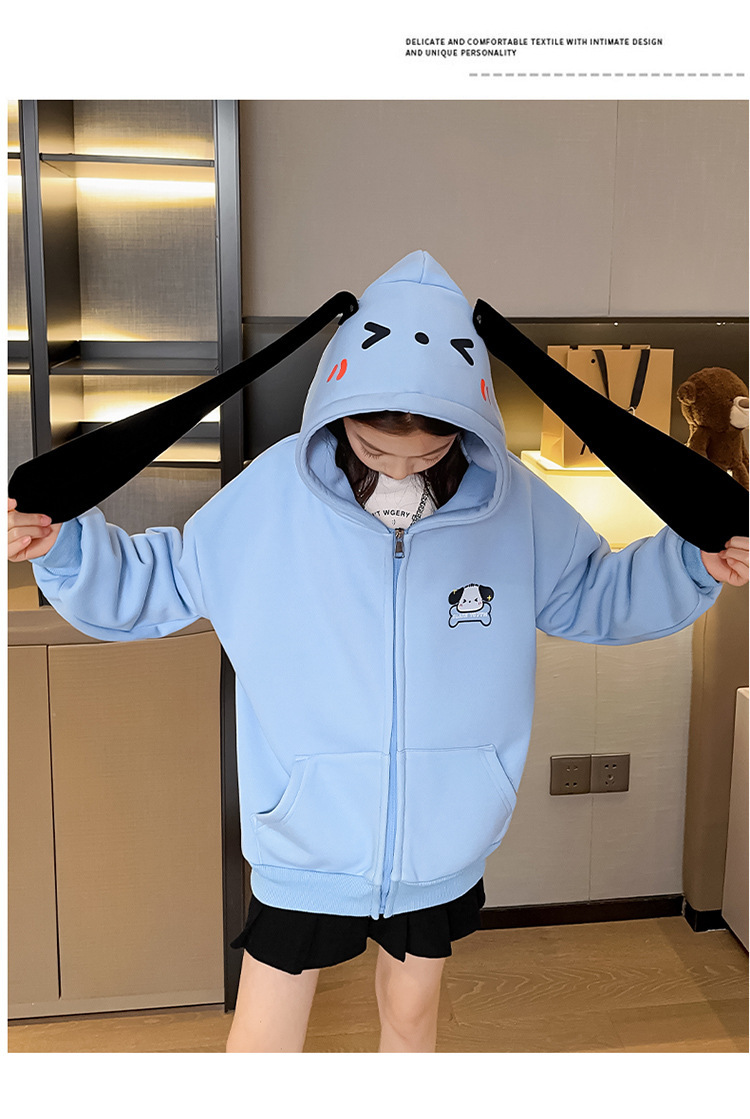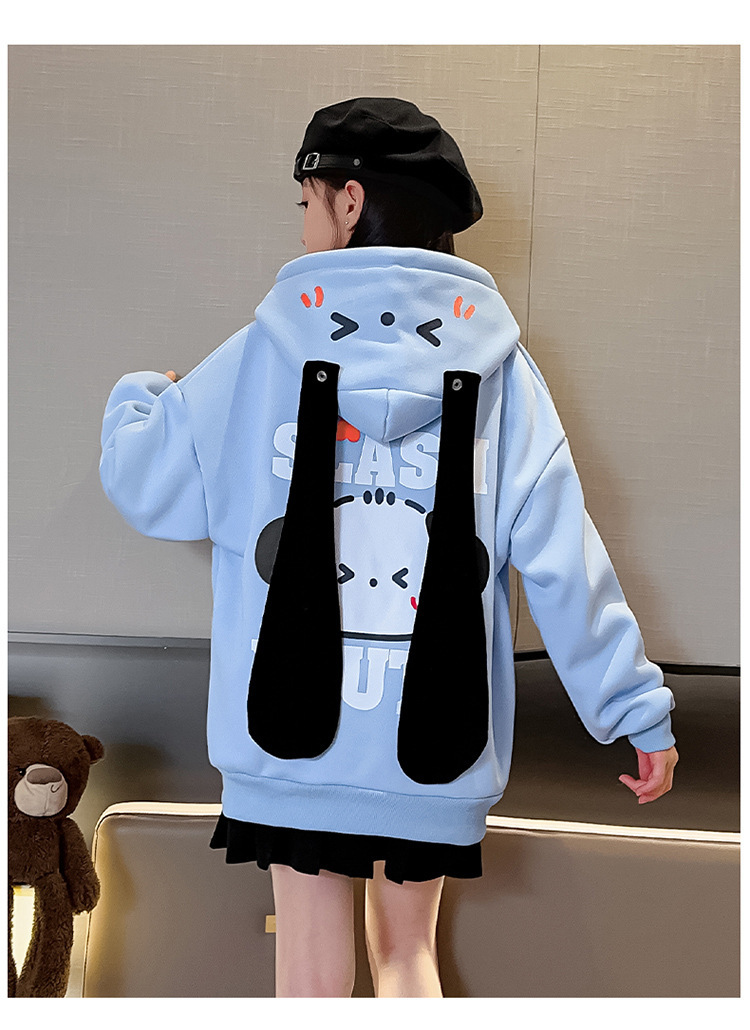 소녀 코트 가을과 겨울 2025 새로운 서양식 기모 두꺼운 후드 어린이 스웨터 긴 귀 카디건 트렌디스토어 가기